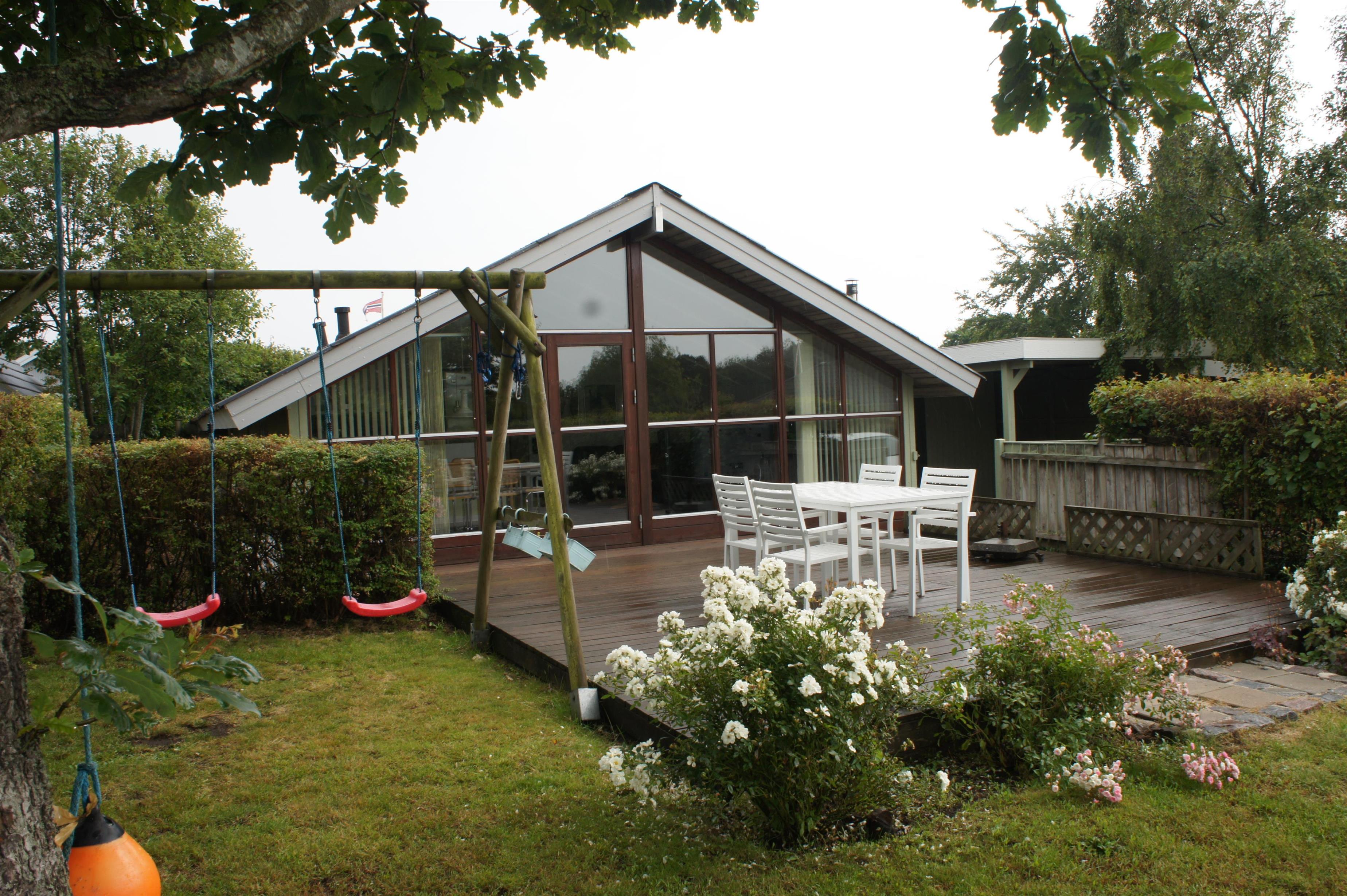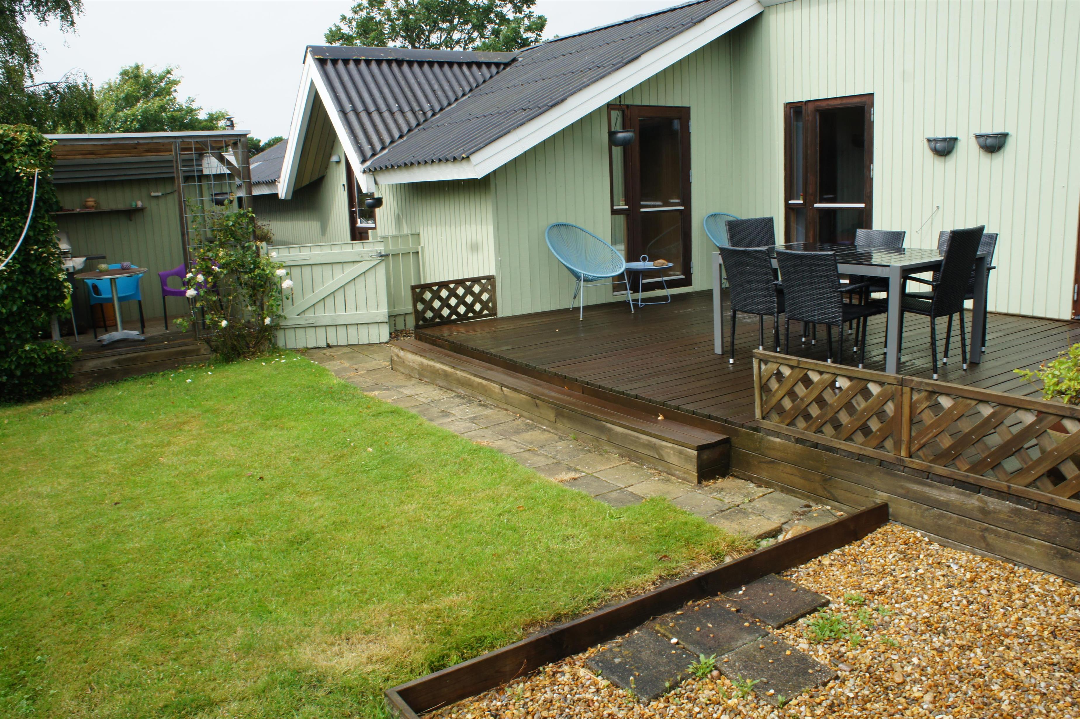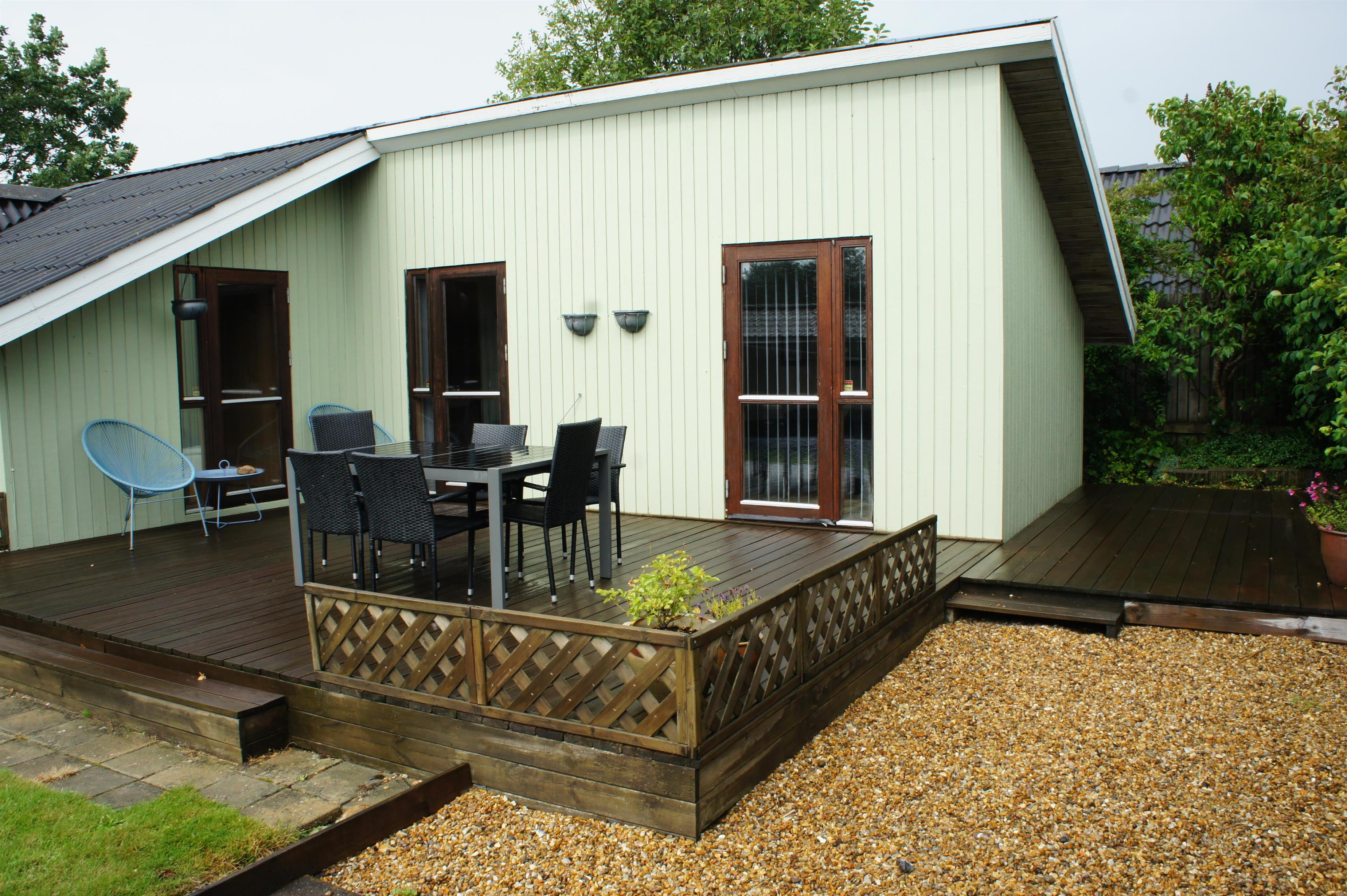 Hyggeligt og børnevenligt feriehus i Esbjerg V med internet, pillefyr og flere terrasser tæt på strand.
