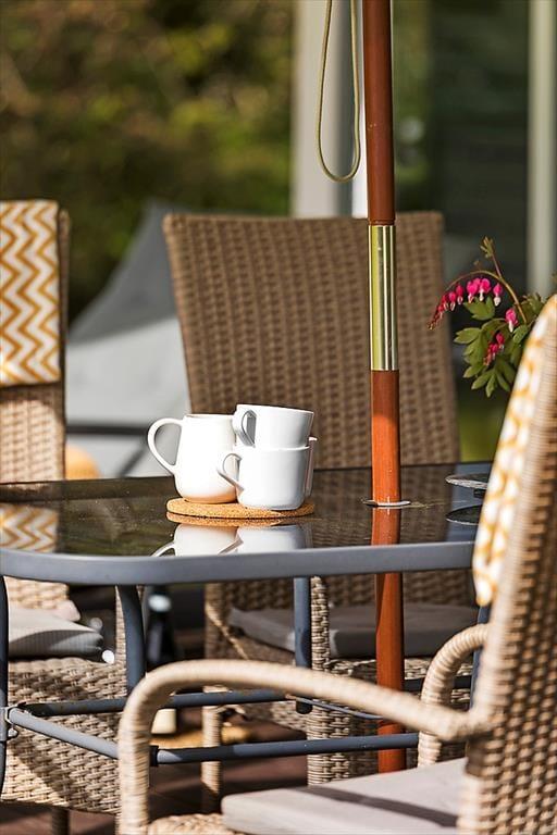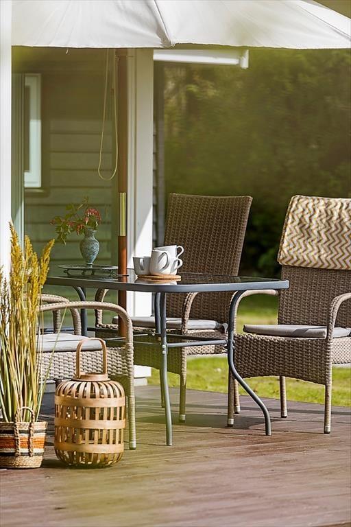 De veludstyrede køkkenfaciliteter gør det let at forberede lækre måltider, som I kan nyde sammen ved spisebordet eller under åben himmel på den overdækkede terrasse, hvor grillen står klar til brug.