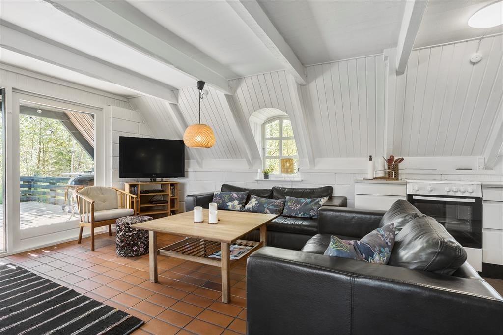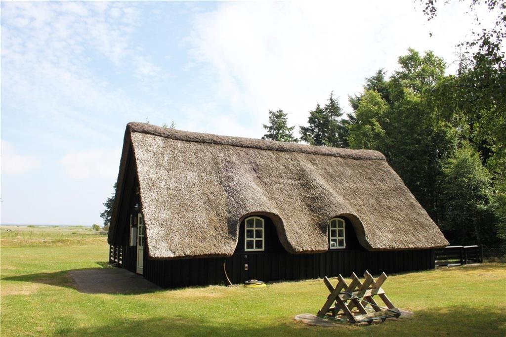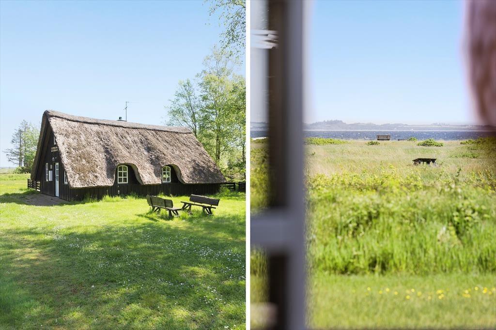 Det stråtækte sommerhus har ligget her på østkysten af den smukke Limfjordsø siden 1974, og det er sidenhen blevet renoveret, så det fungerer som en fin feriebolig for op til seks personer. Blandt andet er køkkenet moderniseret, og der er fladskærms-tv med dvd-afspiller i huset – men der er dog ingen wi-fi, så I har mulighed for at tage en pause fra de sociale medier, hvis I trænger til det. I stuen kan I tænde op i brændeovnen, inden I kryber sammen i sofaen med varm te og krydsogtværser eller samles til brætspilshygge omkring spisebordet. Et brusebadeværelse og et soveværelse ligger også her i stueplan, mens førstesalen byder på to værelser med ekstra sengepladser. Bemærk, at det ene værelse er et gennemgangsrum, og herfra har I også adgang til en overdækket altan.