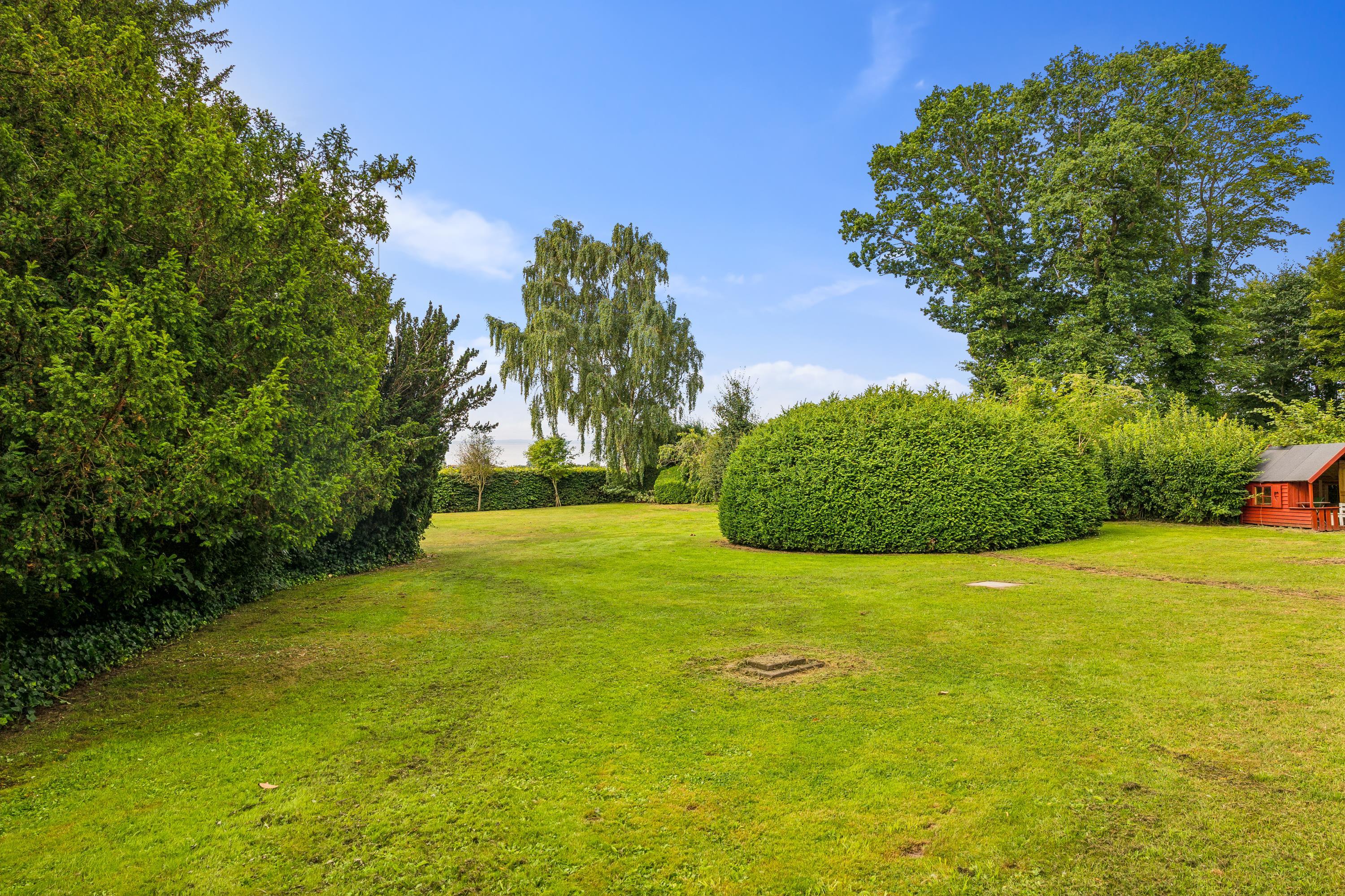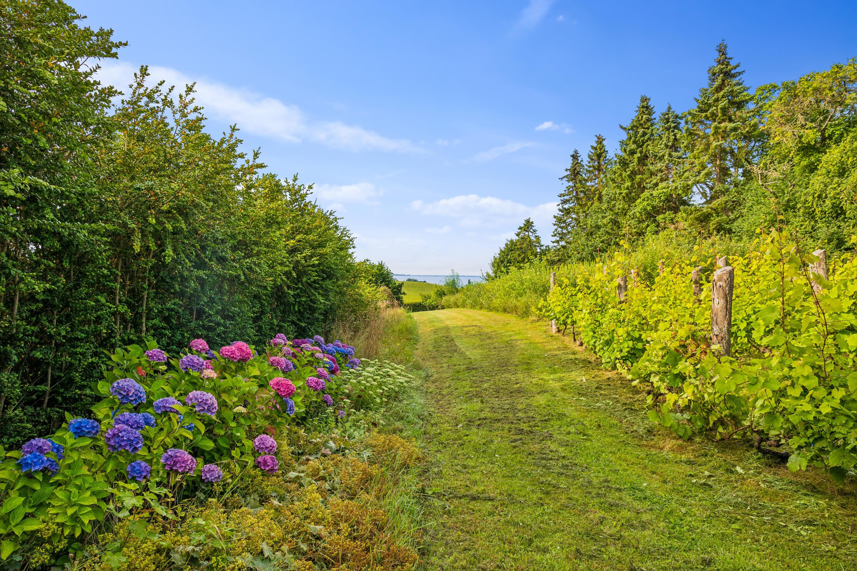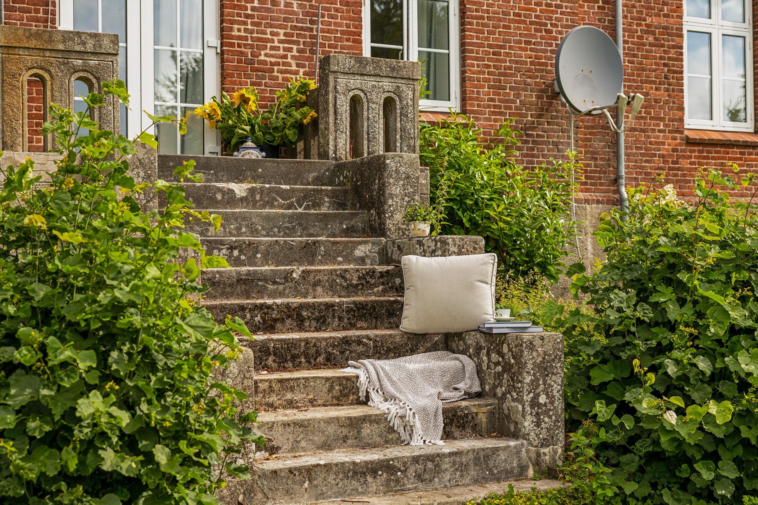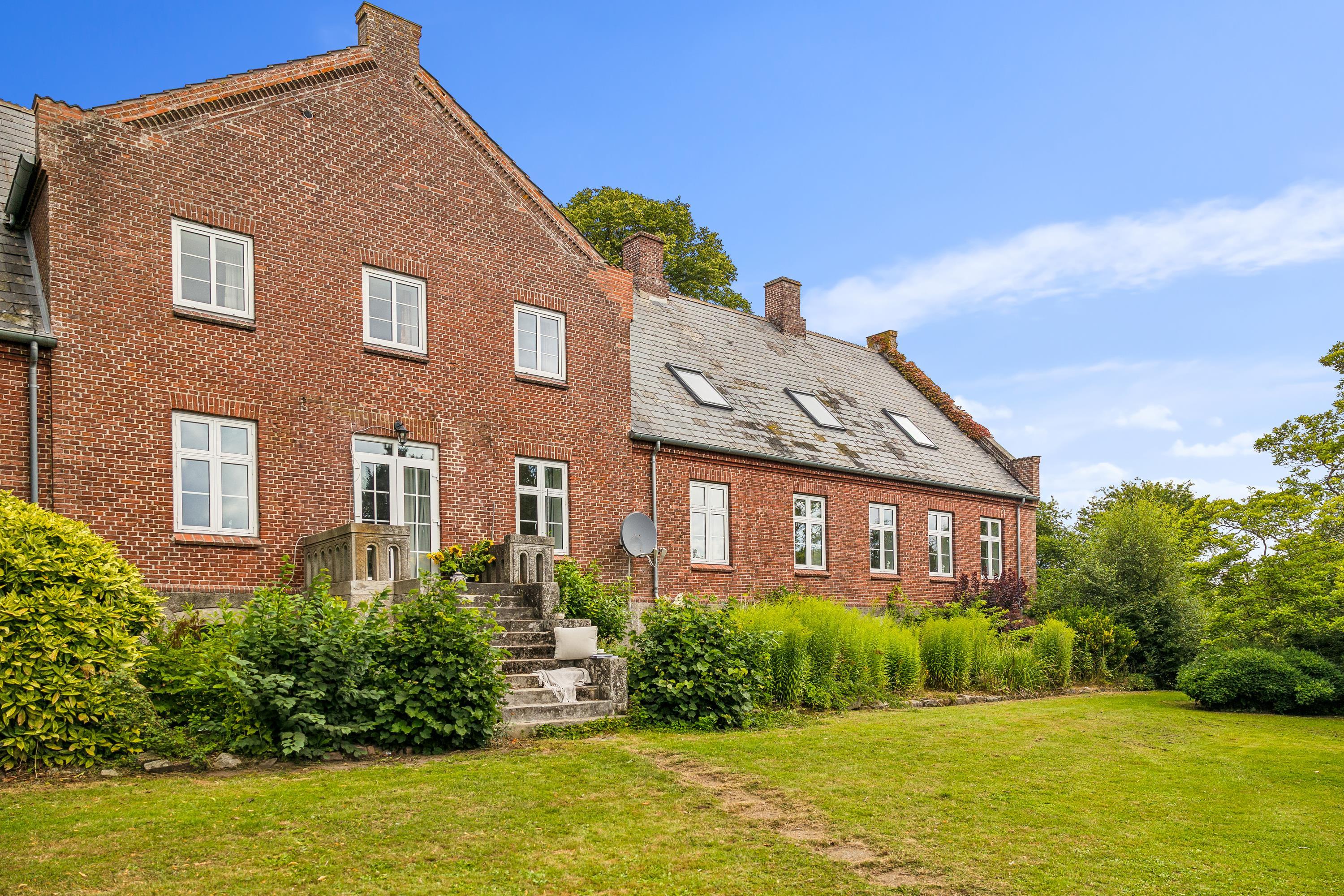 I Hovedbygningen er der plads til 26 personer, og så er der en dejlig, stor terrasse med udsigt ud over Kaløvig. Her er der desuden petanquebane, gynger, legehus og sandkasse samt adgang til fodboldbane og frugthave, og der er altså altid noget at give sig til – uanset om man er voksen eller barn.
