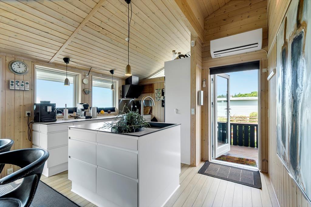 Du træder ind i et lyst og indbydende sommerhus med en afslappet feriestemning og panorama udsigt til havet. Her er plads til nærvær og ro med åbent køkken-alrum, hyggelig stue og god komfort i soveværelserne. Brændeovnen sørger for varme på kølige aftener, mens de store vinduer lader lyset og naturen strømme ind. Det perfekte sted at vågne langsomt med kaffe i hånden og lyden af havet i baggrunden.