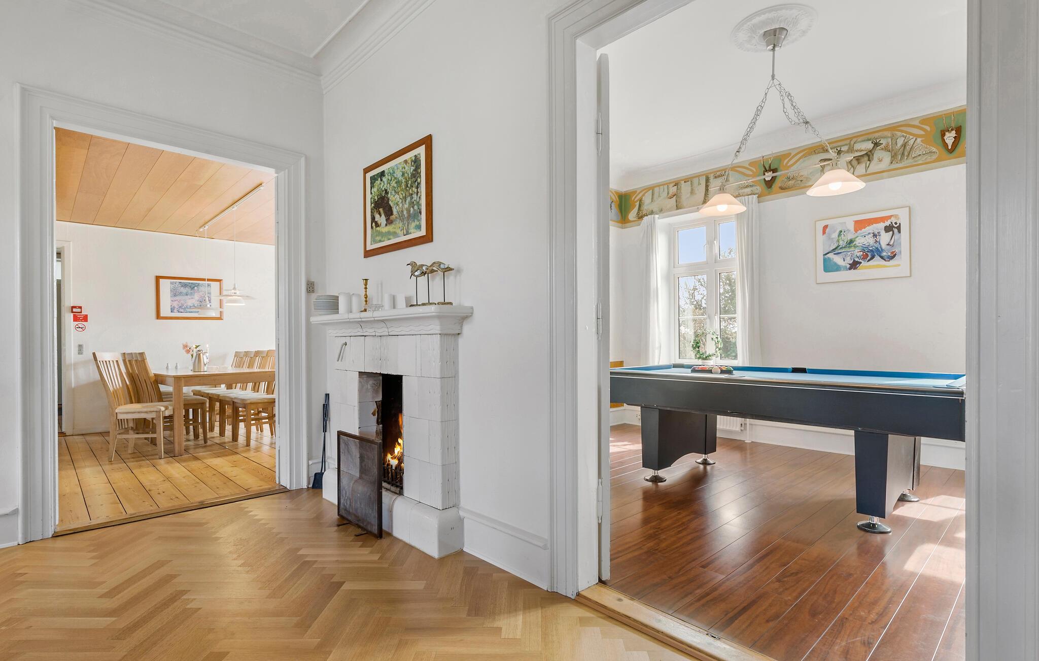 Hvis I er på udkig efter en bolig med plads til hele den udvidede familie eller flere vennefamilier, er I kommet til det helt rette sted. Denne tidligere gård byder nemlig på masser af plads, masser af sovemuligheder og virkelig gode faciliteter, der gør det nemt at fejre de store mærkedage med alle dem, I holder af. Der er masser af sjov for hele familien her. Der er spiseplads til alle, store sofaområder og et aktivitetsrum, hvor I kan udfordre hinanden til et slag billard. Her er også masser af godt legetøj til børnene, så ingen kommer til at kede sig. Efter en festlig dag er der mulighed for at hvile musklerne i spabadet eller svede helt igennem i saunaen.