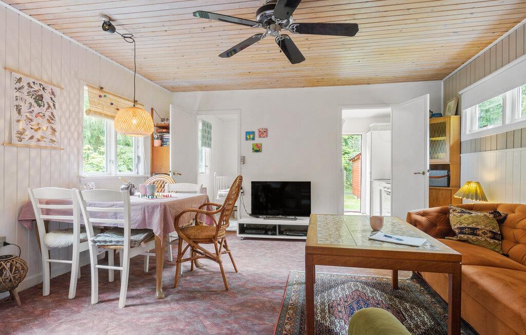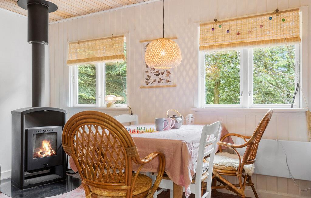 Glæd jer til dette charmerende feriehus i en idyllisk beliggenhed, hvor I kan tilbringe en afslappende ferie. Vågn op midt i den smukke natur, og start dagen med en hyggelig morgenmad sammen med familien. Det kærligt indrettede feriehus byder på alt, hvad I har brug for til et dejligt ophold. Tilbered jeres måltider i det praktisk indrettede køkken, og nyd dem i den hyggelige spisestue ved brændeovnen. Den varme atmosfære i huset indbyder til afslappende timer. Hyg jer i sofaen, og nyd ferietiden i fulde drag.