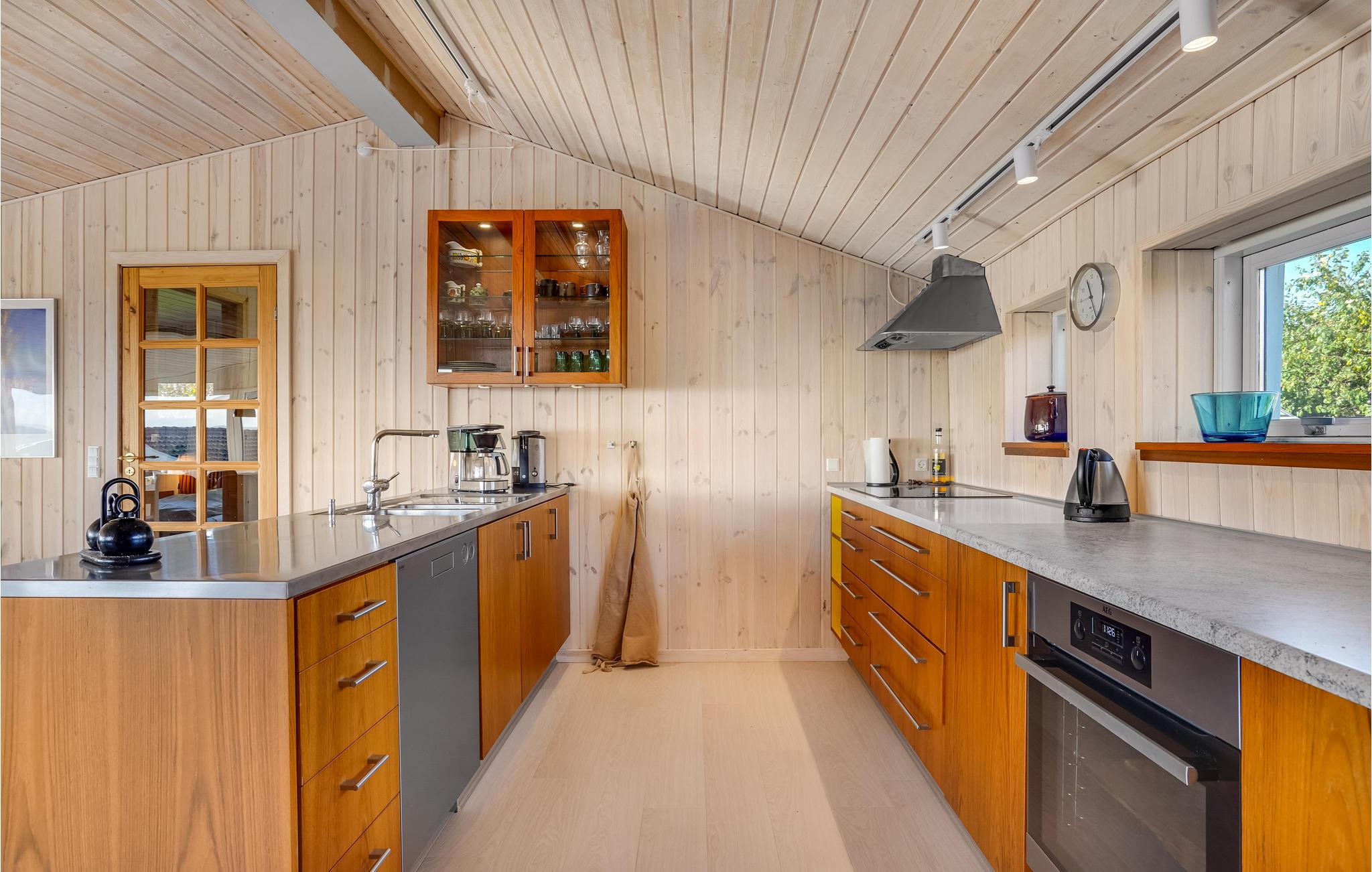 Tilbring en dejlig ferie i dette indbydende sommerhus, der er komfortabelt indrettet og skaber ideelle rammer for et ophold, som I vil huske med glæde i lang tid. Lad blikket vandre over havet til Mols Bjerge. Om aftenen kan I hygge jer foran brændeovnen og lytte til flammernes knitren.