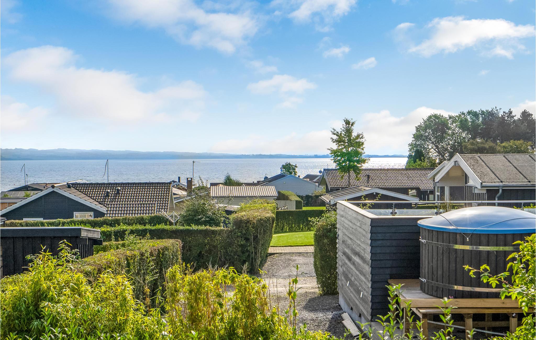 Smukt sommerhus med panoramaudsigt over havet og Mols Bjerge, tæt på strand og natur.