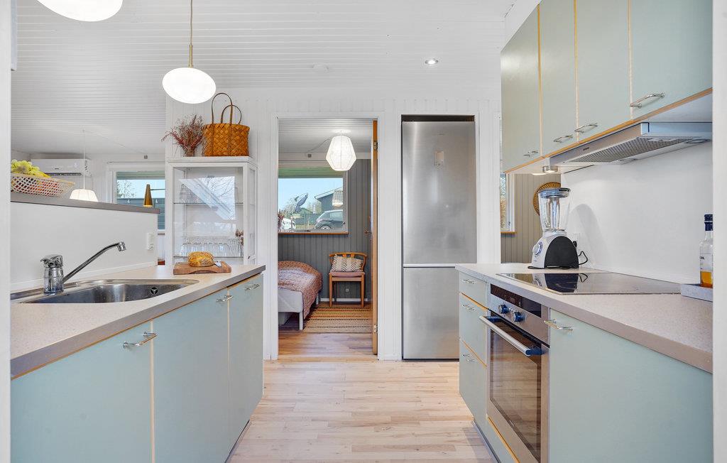 Dette indbydende feriehus tilbyder alt hvad du behøver for en vellykket ferie med familie eller venner. Inde kan du forvente et moderne og lyst hus med smukke detaljer og velvalgte dekorationer. Stuen med spiseplads og åbent køkken er mødestedet for alle husets gæster, og her kan I samles til lækre måltider eller tv-aftener.