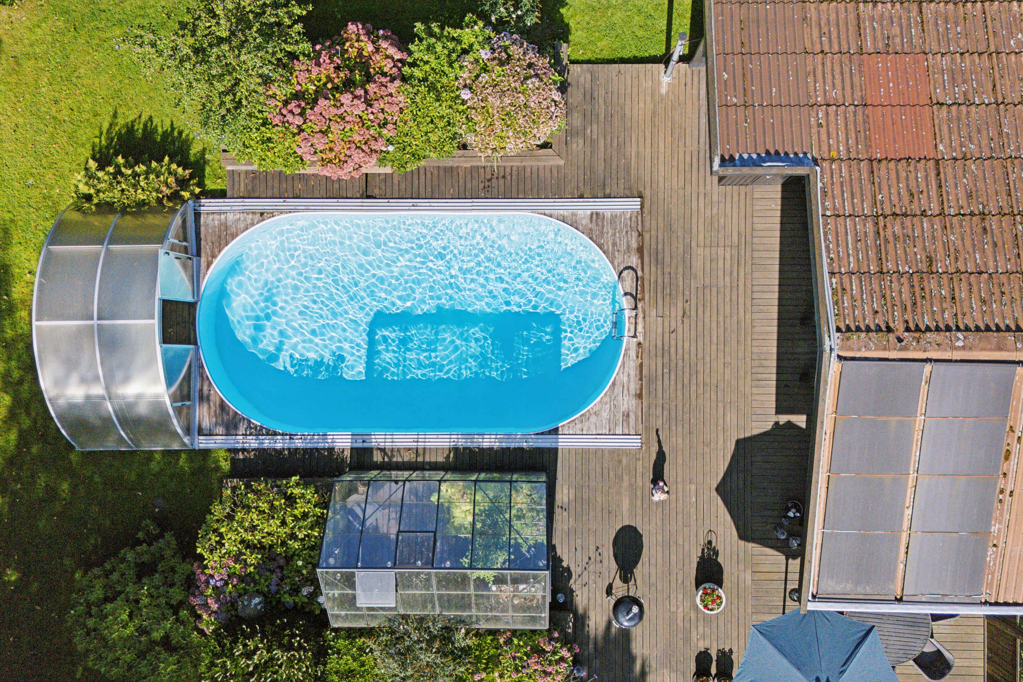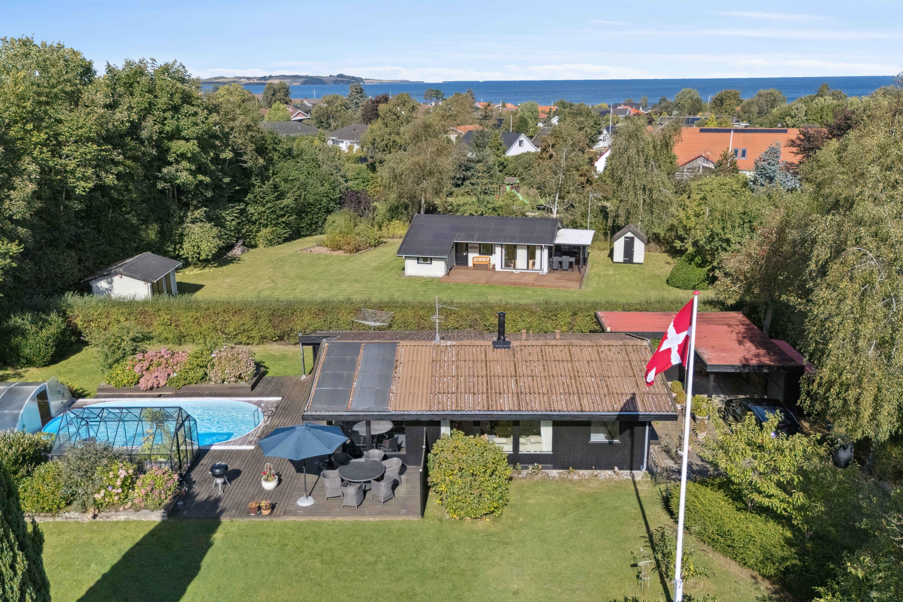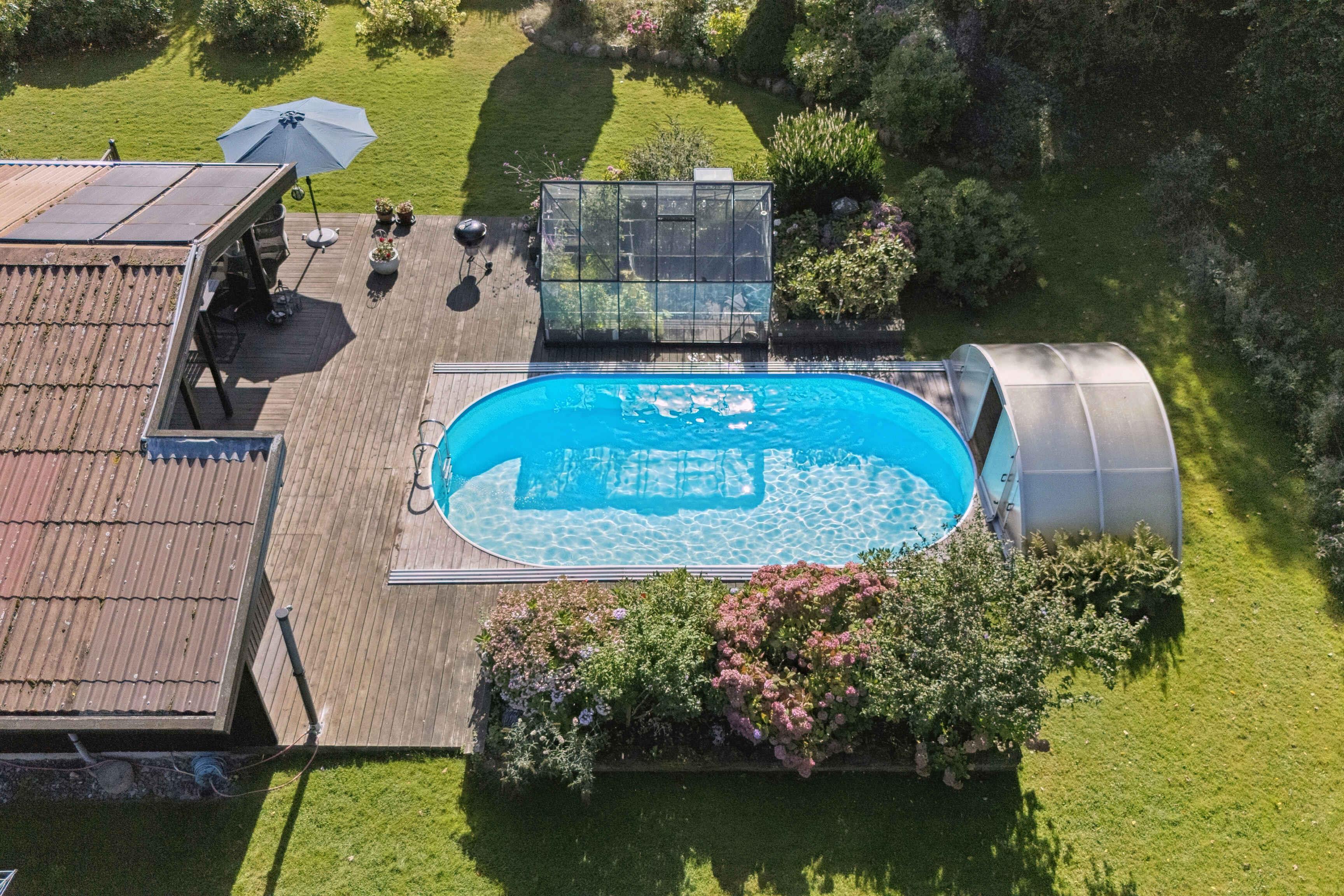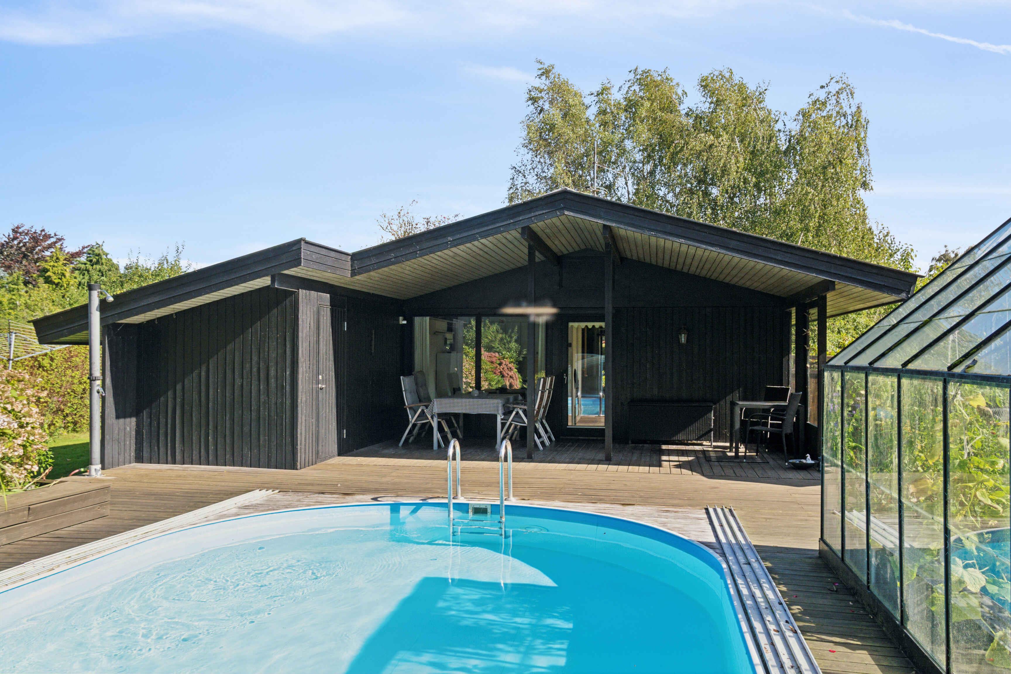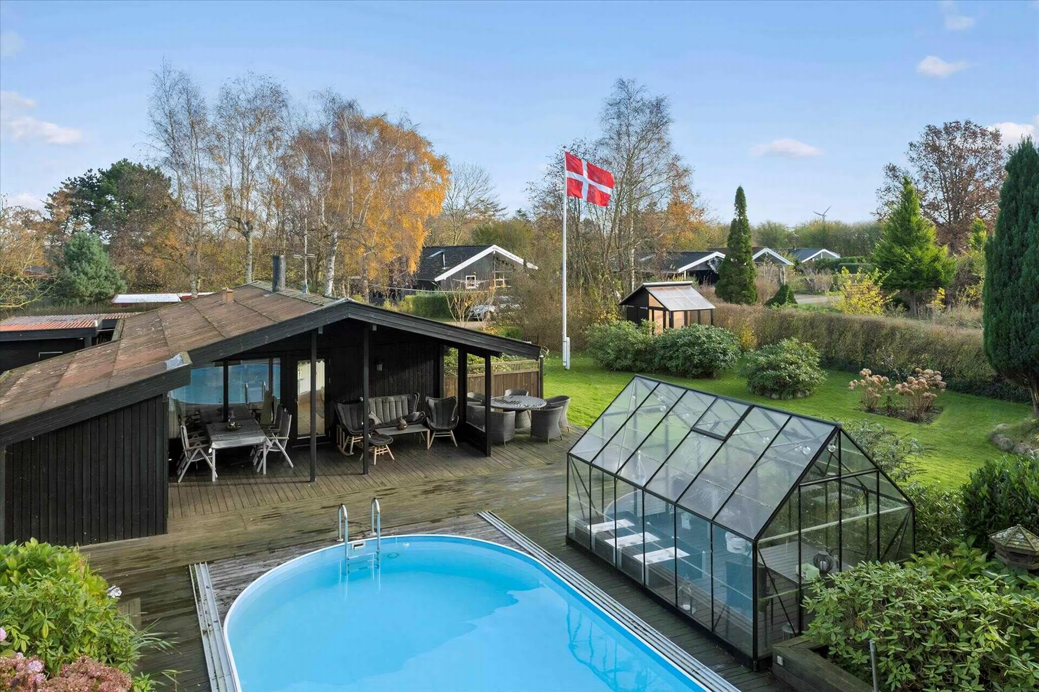 Hyggeligt sommerhus med privat opvarmet pool tæt på Havnsø Strand og havn for afslapning og aktiviteter.