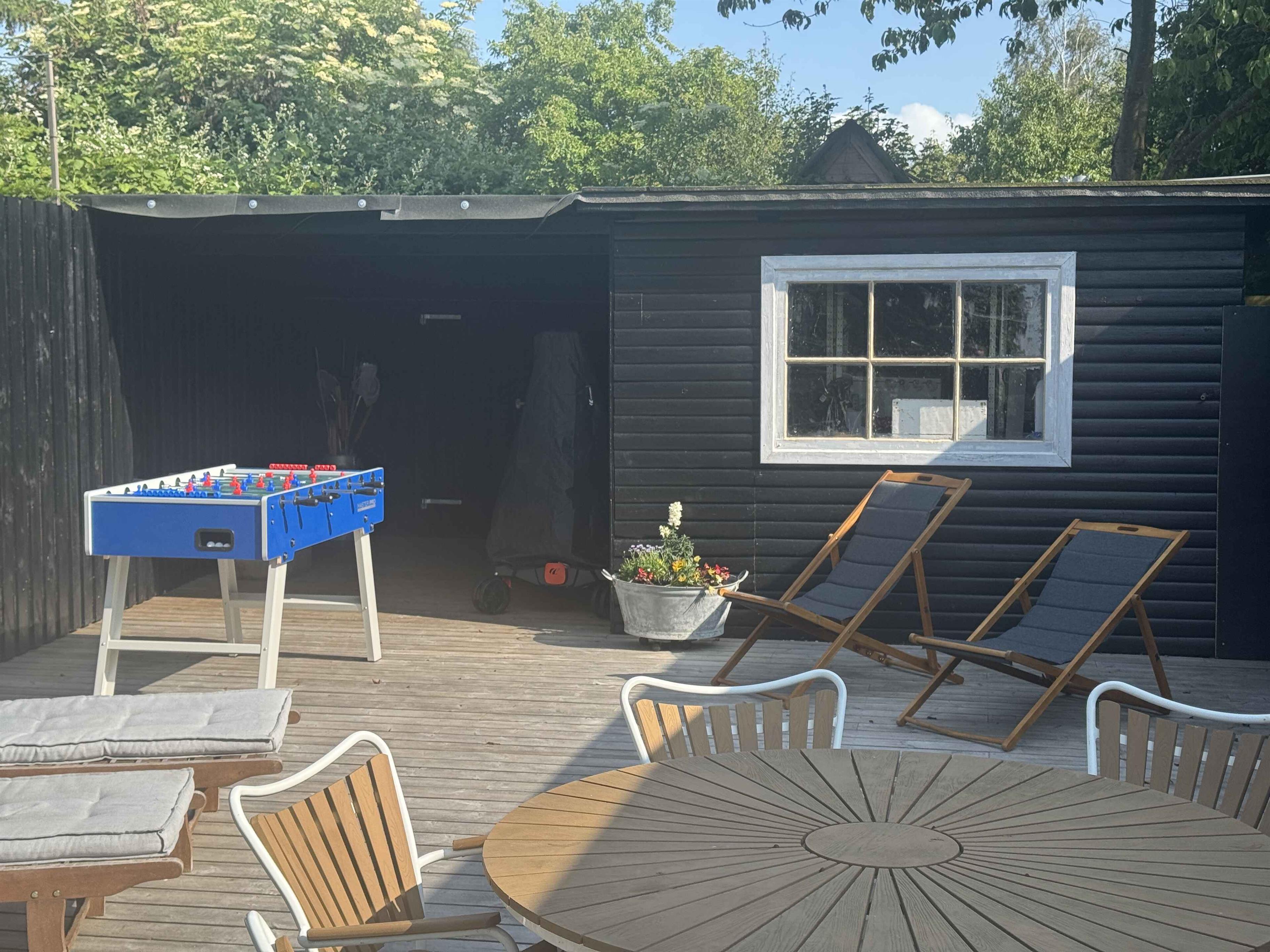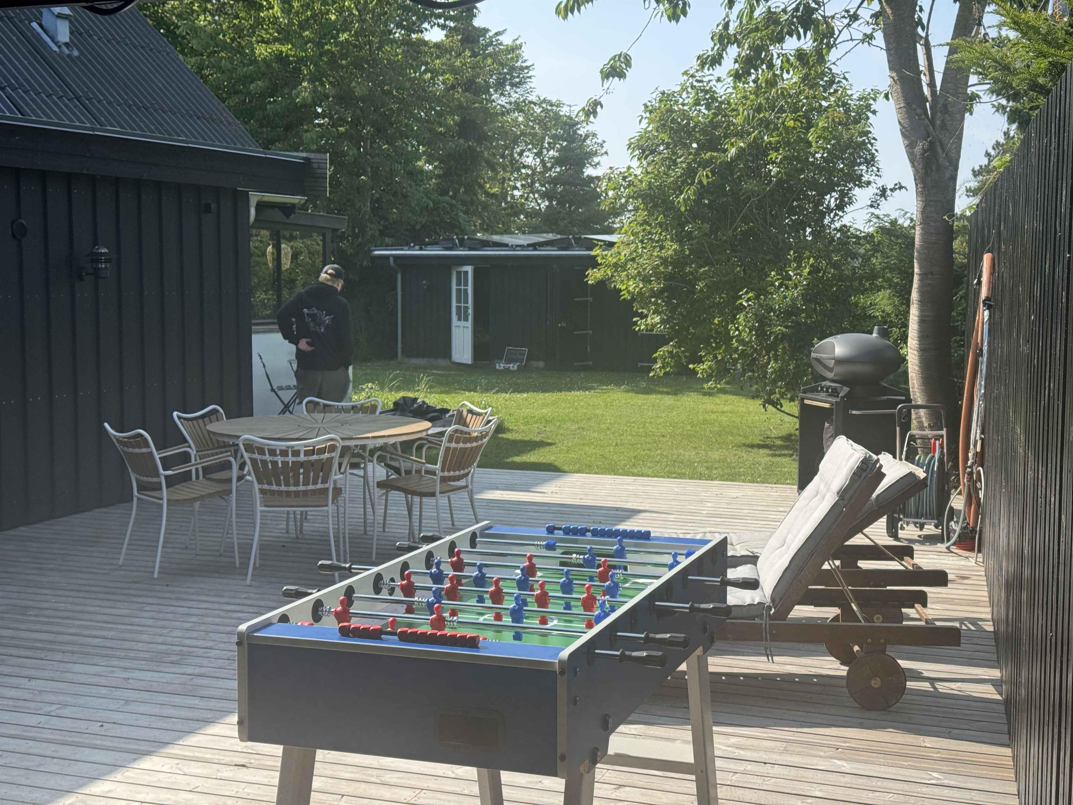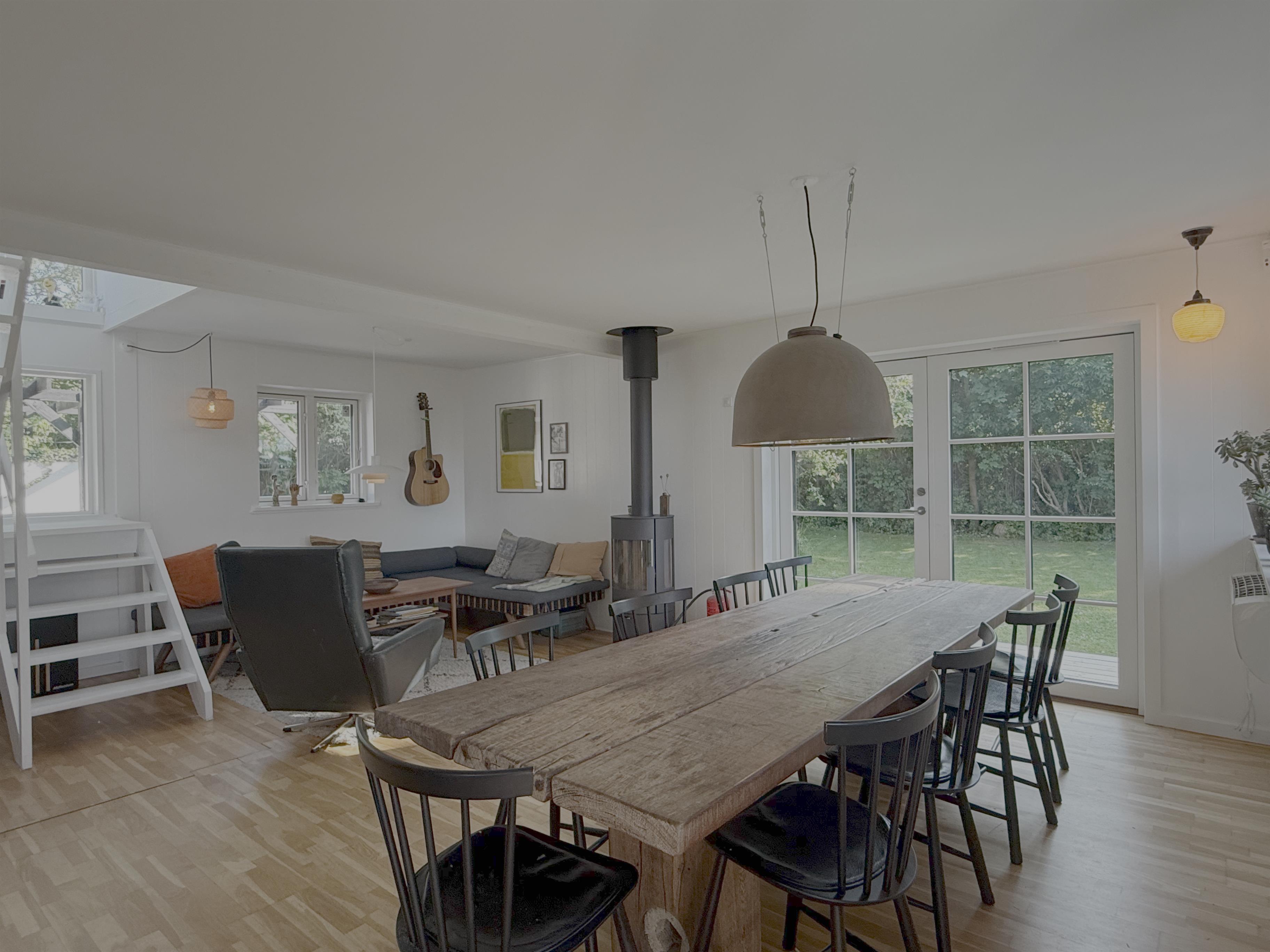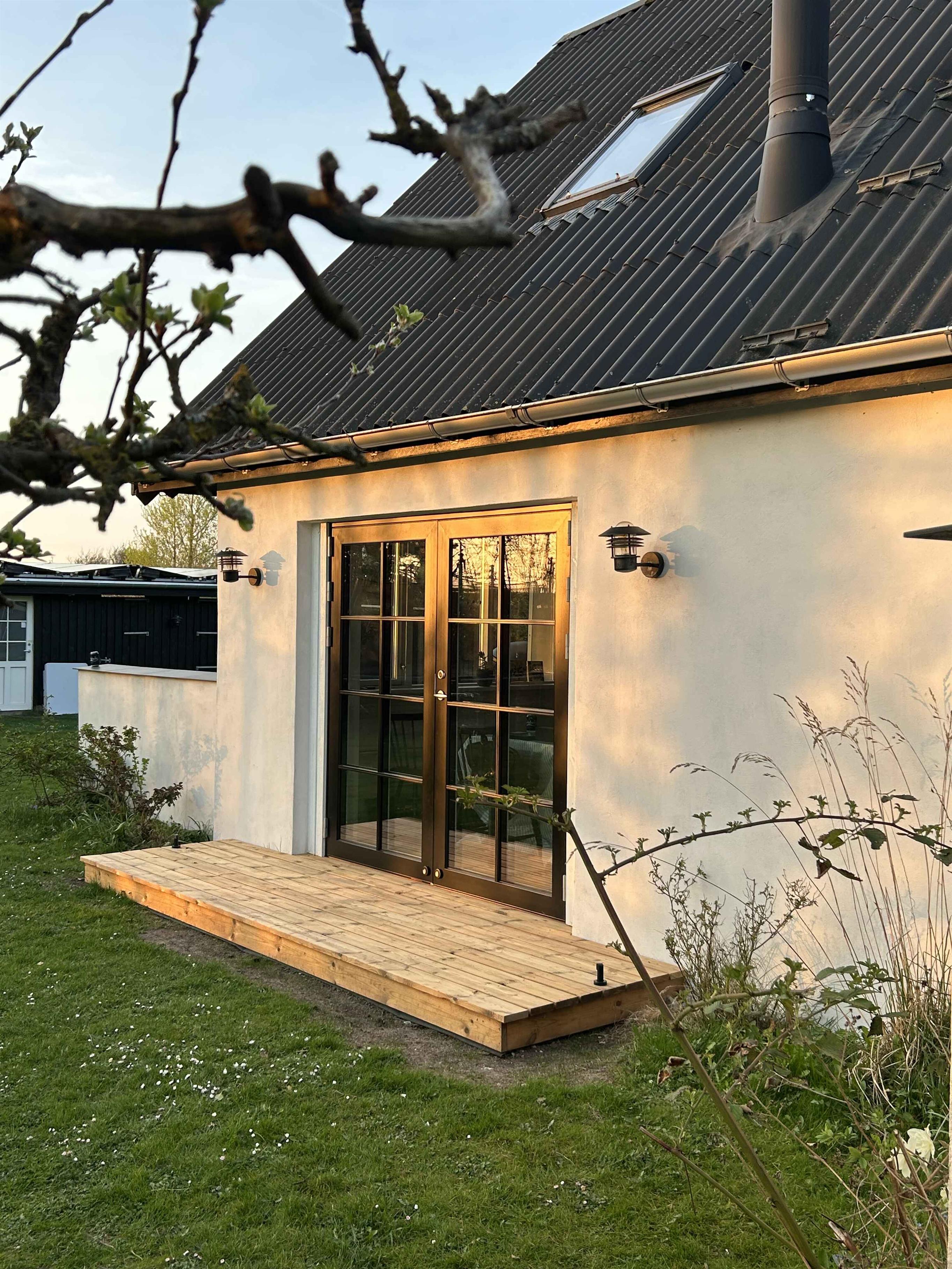 Dette moderne og lækre sommerhus på 106 m² giver plads til otte personer fordelt på tre soveværelser og en hems. Beliggenheden tæt ved kysten gør det oplagt til familier og grupper, der ønsker at kombinere strandliv, fælles aktiviteter og afslapning. Indendørs er huset indrettet til ophold året rundt. Varmepumpe og brændeovn sikrer behagelig temperatur, og internet giver mulighed for både arbejde og streaming. På første sal finder du en hyggelig TV-stue med balkon og udsigt til havet. Den store have indbyder til udeliv med trampolin, bålplads og god plads til leg. Flere terrasser giver mulighed for at finde både sol og skygge i løbet af dagen. I forbindelse med køkkenet har du adgang til vores store udendørskøkken, udstyret med både vask, ovn og kogeplader, så det giver mulighed for madlavning og hygge også udendørs. Når vejret kalder på indendørsaktiviteter, er der både bordfodbold og bordtennis, som gør huset velegnet til aktivt samvær. Her er gode rammer til at være sammen, men også til at trække sig tilbage. Kun 150 meter fra stranden kan I starte dagen med en dukkert eller en rolig gåtur langs vandet. Fra huset er der havudsigt, så naturen altid er en del af opholdet. Området byder på brede sandstrande, der egner sig til både badning og lange gåture. Kysten er kendt for sit rolige miljø, og de omkringliggende stier inviterer til cykelture og vandring. I nærområdet finder I små havnebyer med spisesteder, isboder og lokalt liv. Der er kort afstand til kultur- og naturoplevelser, hvilket gør det muligt at kombinere stille dage ved stranden med udflugter. Her er det let at mærke den særlige stemning, hvor natur, hav og nærhed til småbyer tilsammen skaber en ferieramme, som tiltaler både børn og voksne. Sommerhuset samler komfort, plads og en attraktiv beliggenhed tæt ved havet. Det er en base, hvor familier og venner kan nyde ferien sammen på tværs af årstider.