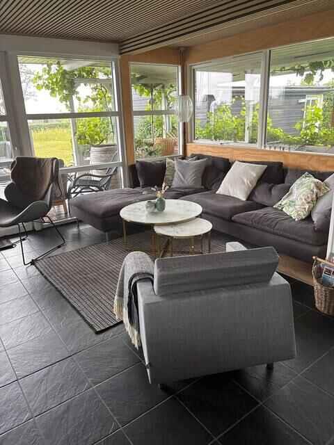 Hyggeligt sommerhus med fantastisk havudsigt, tre soveværelser og seks sovepladser. Det lyse, åbne køkken-alrum skaber en enkel og indbydende ramme om ferien. Huset ligger i et roligt sommerhusområde med kort gåafstand til kysten, hvilket gør udelivet nemt og nærværende. Indendørs finder du en infrarød sauna til ekstra velvære og en brændeovn, som giver hygge i den kolde tid. Indretningen er enkel og funktionel, så dagene kan bruges på afslapning frem for praktiske gøremål. Et tilhørende anneks rummer fire sovepladser og giver fleksibilitet for både familie og venner. Haven er stor med flere terrasser og god plads til leg, ophold og måltider. Der er få minutters gang til stranden og en badebro i sæsonen, så vandet bliver en naturlig del af ferien. Området byder på ro, natur og gode muligheder for gå- og cykelture. Kyststier, små skovstrækninger og udsigtspunkter gør det let at opleve det sydfynske øhav på nært hold. Her finder man både stilhed og åbne landskaber, der indbyder til pauser og udflugter. Faaborg ligger tæt på og tilbyder strande, indkøbsmuligheder, spisesteder og et charmerende havnemiljø. Byen har kulturtilbud, museer og små butikker, og færgerne giver mulighed for nemme ture til øerne. Svendborg ligger cirka en halv time væk og giver adgang til flere aktiviteter, maritime miljøer og oplevelser. Kombinationen af hav, natur, ro og nærliggende byliv gør området ideelt for gæster, der ønsker både afslapning og variation. Huset bliver et trygt og indbydende udgangspunkt for ferien. Obs, udlejes ikke til erhversmæssigt brug.