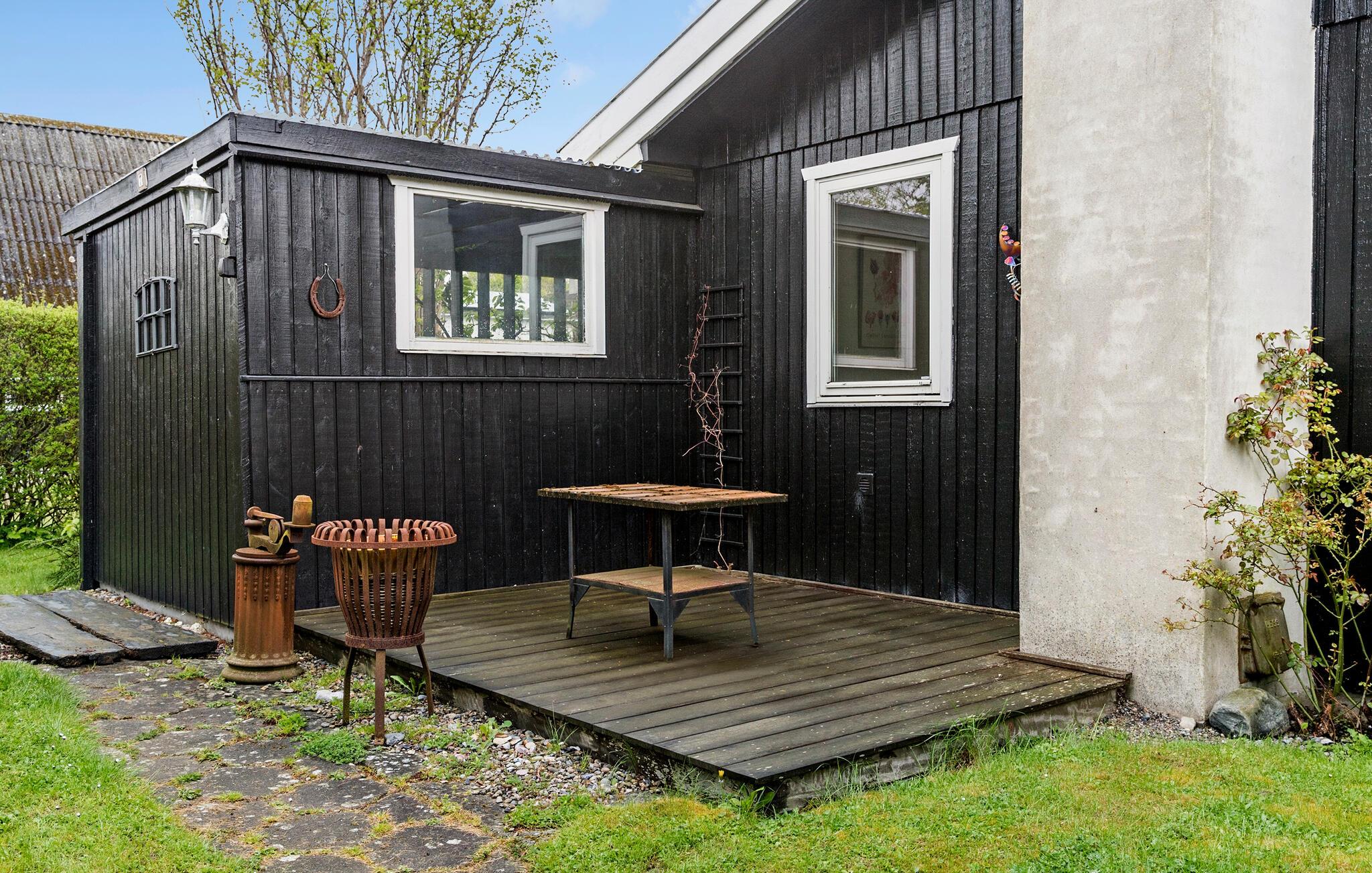 Når solen skinner, kan I nyde den lige fra morgenstunden på terrassen med en god kop kaffe. Dele af terrassen er overdækket, så I også kan finde skygge til at læse en god bog, mens børnene løber rundt og leger i haven. Holder vejret hele dagen, kan I lade en smuk aften gå på hæld med saftige bøffer fra grillen og et godt glas vin, mens I lægger planer for de kommende dage.