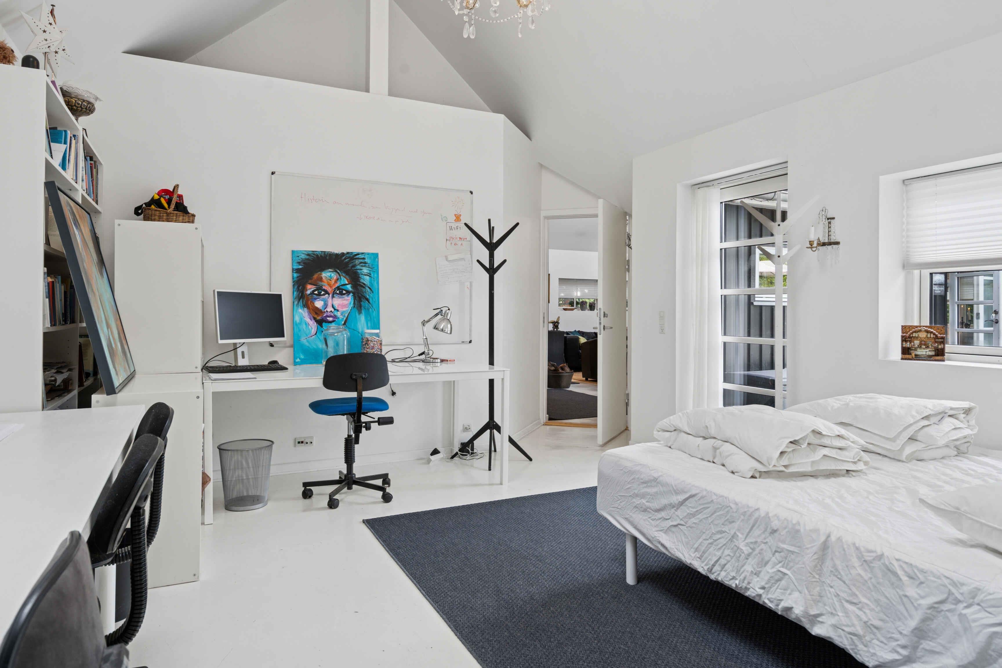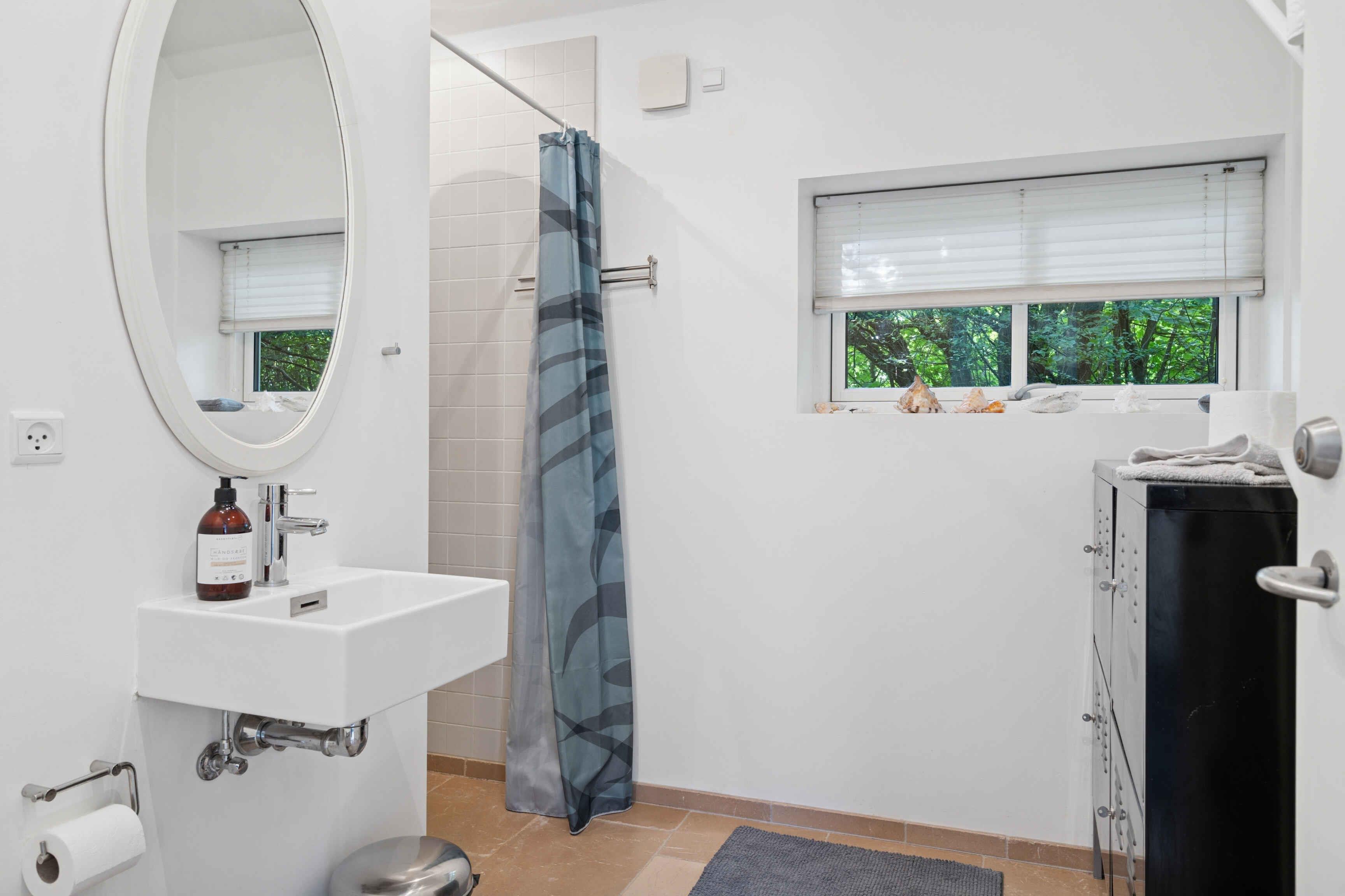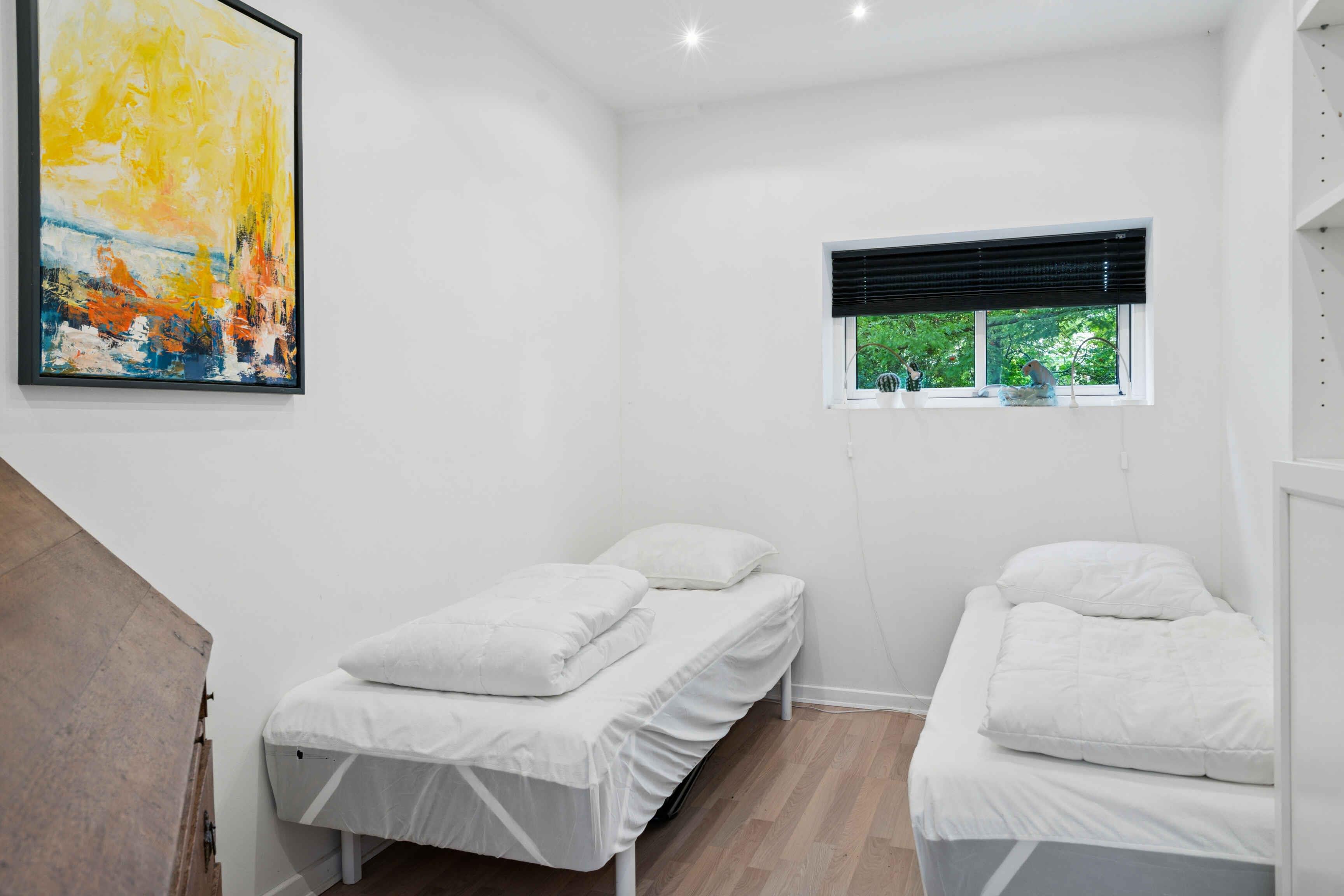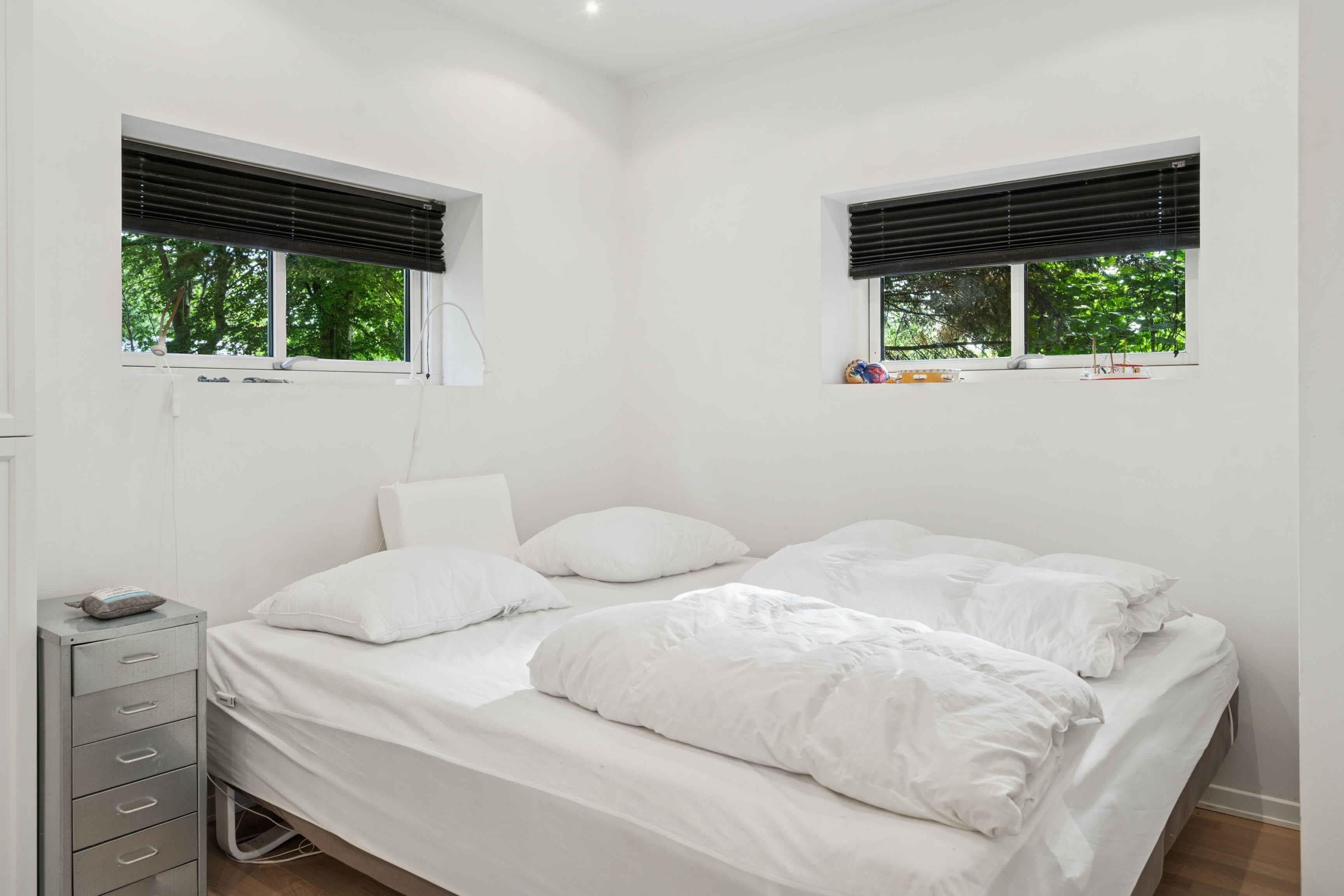 Velkommen i mit skønne og hyggelige arkitekttegnede sommerhus med højt til loftet, ild i brændeovnen, hyggekroge, udespa, bålplads og sauna. På terassen er der 2 baljer, der kan fyldes med koldt vand, hvis man lige skal køle lidt af efter sauna. Du kommer til at bo i et fantastisk naturskønt område med små stier mellem sommerhusene, badestrand, badebro, bistro, ishus, Troldhøje Skov, Vemmetofte Skov, Feddet, Faxe Kalkbrud, aktiviteter, vandreruter, mountainbike, havkajak og meget mere. Der kan tændes hyggelige lyskæder på terassen om aftenen, og der står en Weber-grill samt en tom gasbeholder til ombytning. Huset har en stor åben stue med køkken, spiseplads og sofaområde med læsehjørne. Der er et stort soveværelse kombineret med skriveborde/hobbyplads. Derudover 2 mindre soveværelser. 6 sovepladser i alt. Hemsen er lukket af og kan ikke benyttes. Badeværelset er med marmorfliser på gulvet og bruseniche med rainshower. Der er mulighed for gulvvarme i badeværelset. Der er dæmpbare spots og lysekroner samt opvaskemaskine, køle-fryseskab, ovn og induktionskogeø. Der er ikke vaskemaskine. Der er 2 varmepumper i huset. Du skal selv have brænde og pindebrænde med. Du kan købe brænde ved at kontakte ejer. Ejer kan også kontaktes, hvis du ønsker en fantastisk saunagusoplevelse. Ejer er gusmester i DGI Byen og Helgoland på Amager samt laver retreats og saunagus-events - når sommerhuset altså ikke er udlejet til dig.
