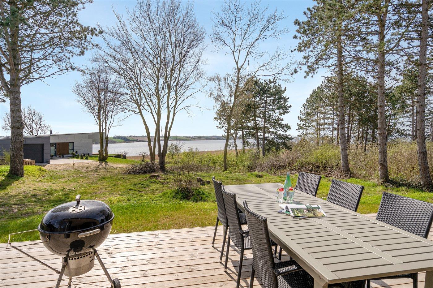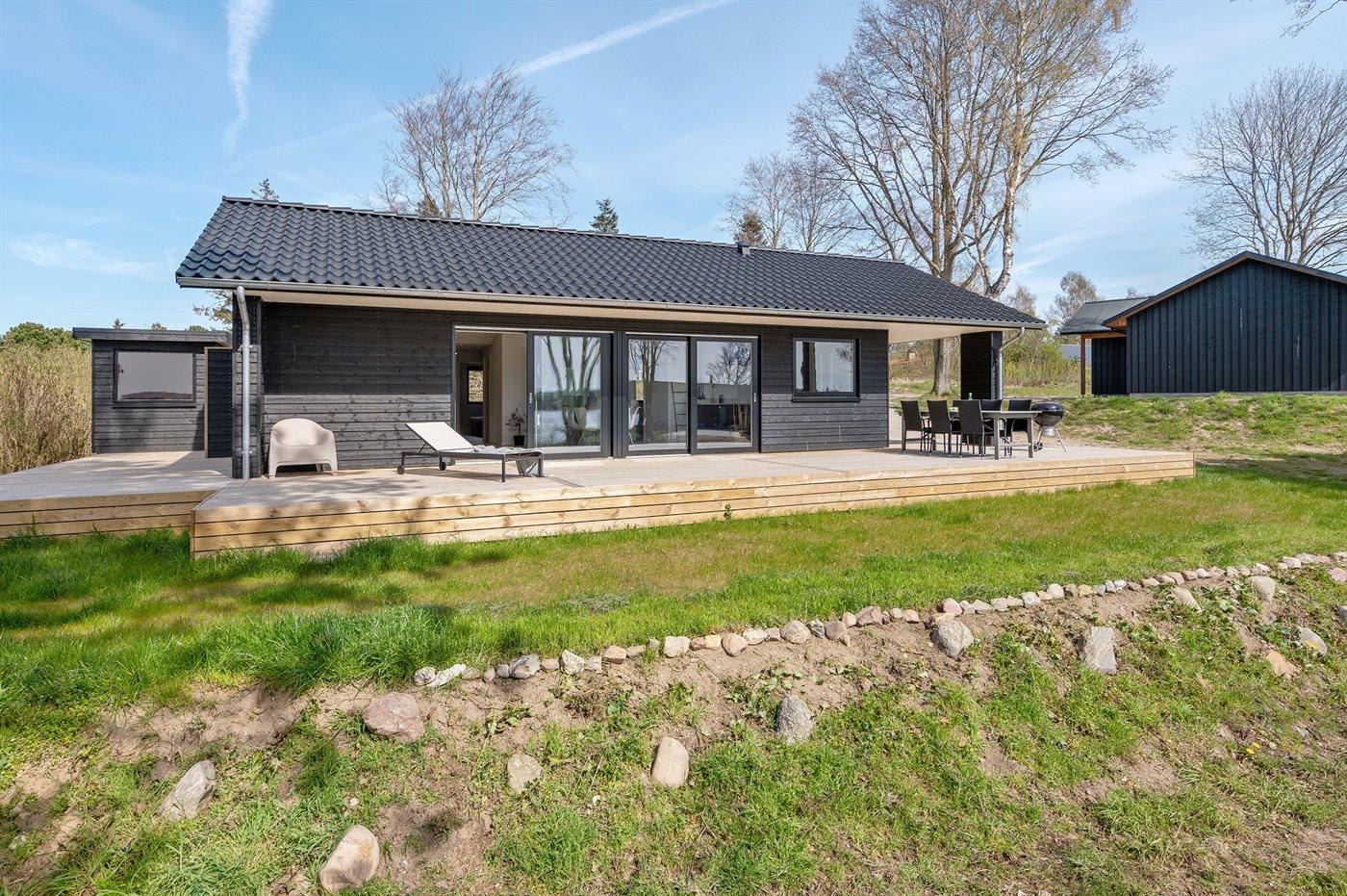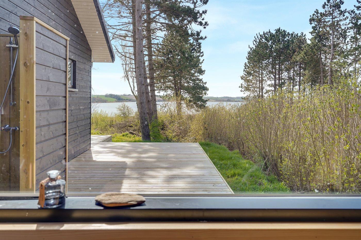 Nyt sommerhus med spa, sauna og havudsigt ved Helnæsbugten, perfekt til afslapning og familieferie.