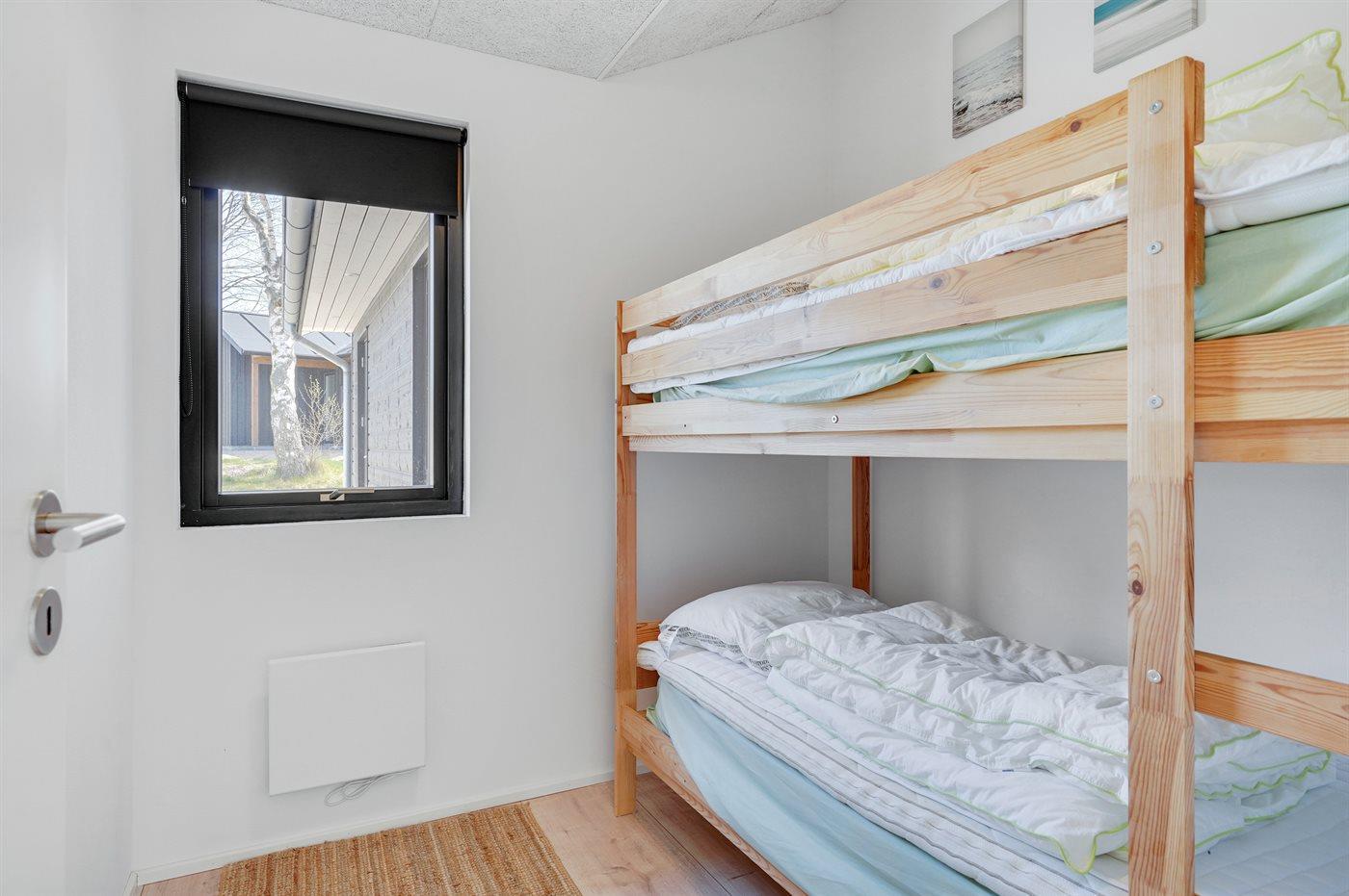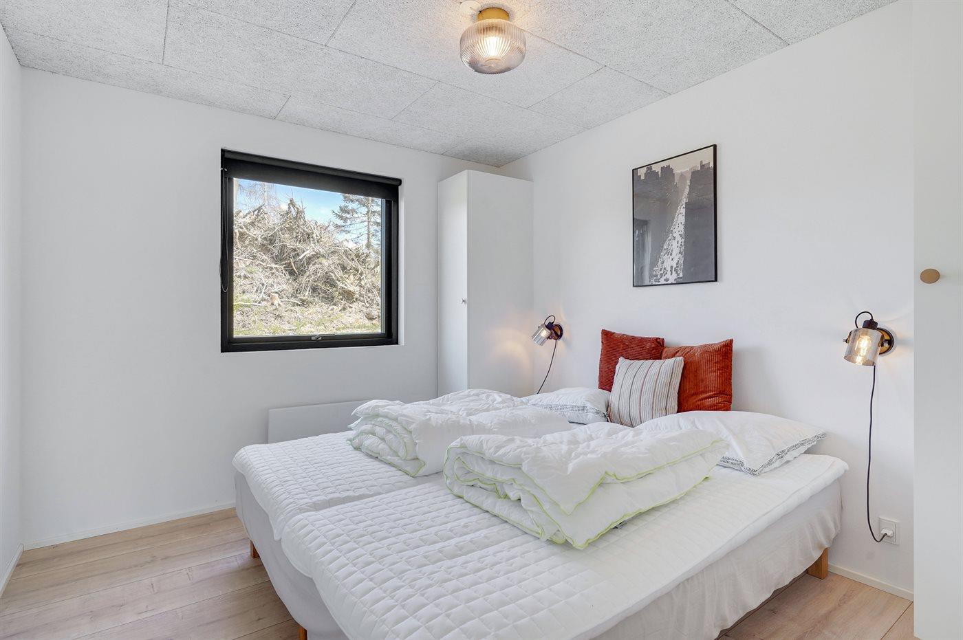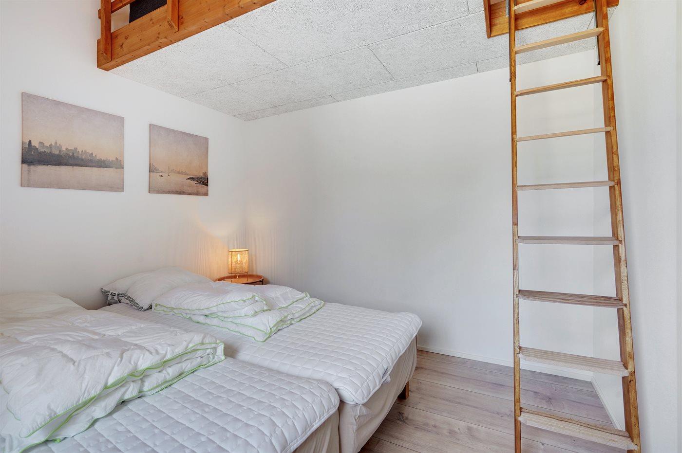 Der er i alt 4 soveværelser. Sovepladserne fordeler sig på: 4 sovepladser i dobbeltsenge. 2 sovepladser i enkeltsenge. 2 sovepladser i køjeseng. 2 sovepladser på madrasser. 2 af disse sovepladser befinder sig på husets hems. Derudover er der 1 stk. barneseng.