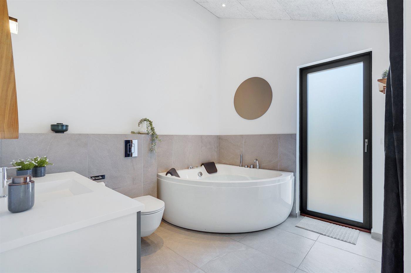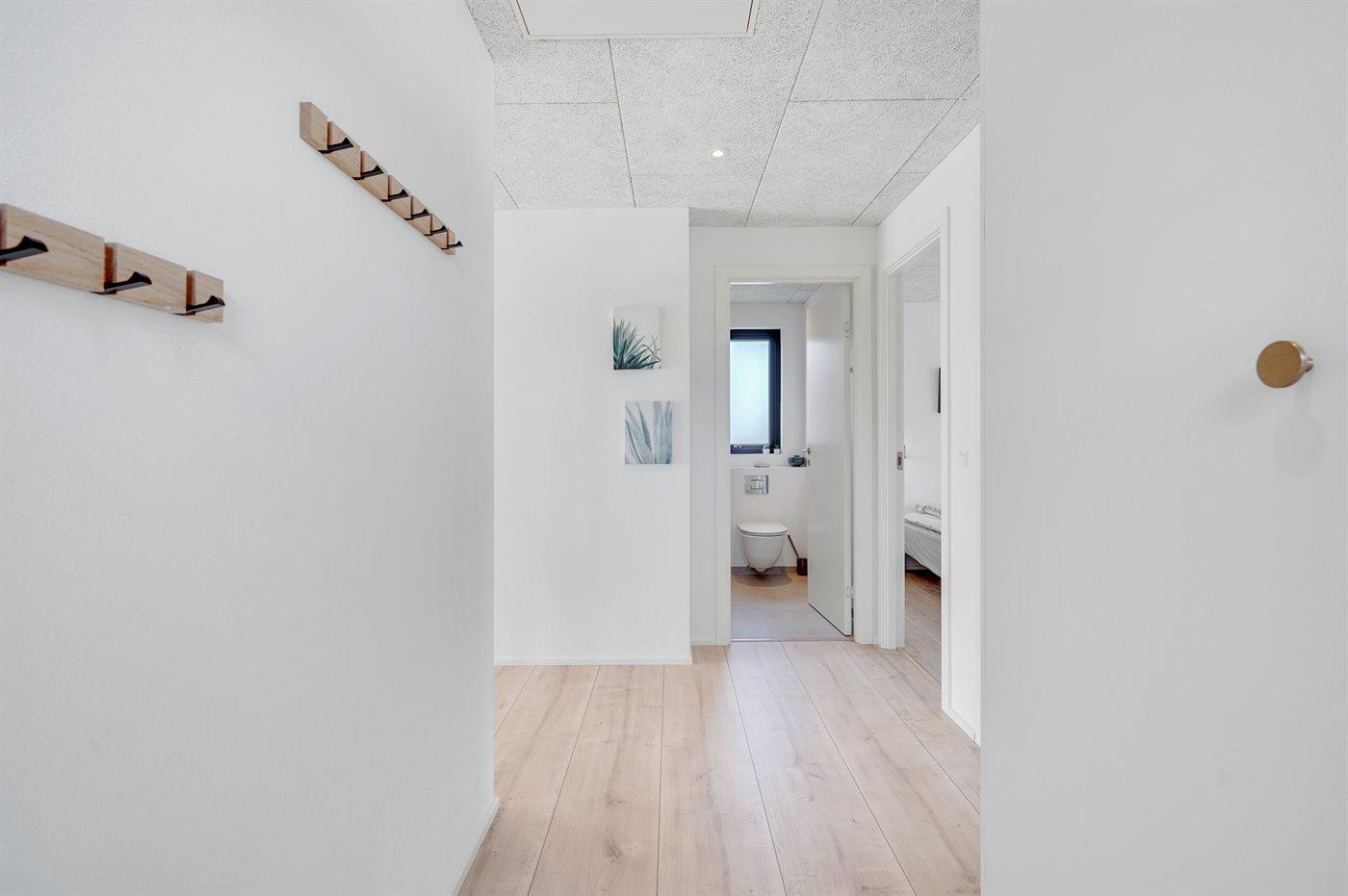 Der er 2 badeværelser med bruseniche og 2 toiletter. Der er gulvvarme på 2 badeværelser.