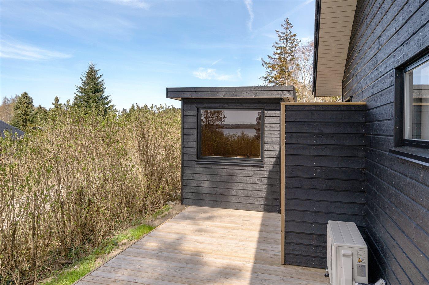 Med udsigt ud over den sydlige del af Helnæsbugten finder I dette nye, flotte og lyst indrettede sommerhus. Huset er bl.a. indrettet med badeværelse med spa, hvorfra der er direkte udgang til terrassearealet, hvor I finder udebruser og udendørs sauna, hvorfra udsigten over Helnæsbugten også kan nydes. Bemærk at 2 af de i alt 10 sovepladser befinder sig på hemsen (madrasser), hvorfor disse egner sig bedst til unge mennesker. På hemsen er der ligeledes opsat TV med spillekonsol.