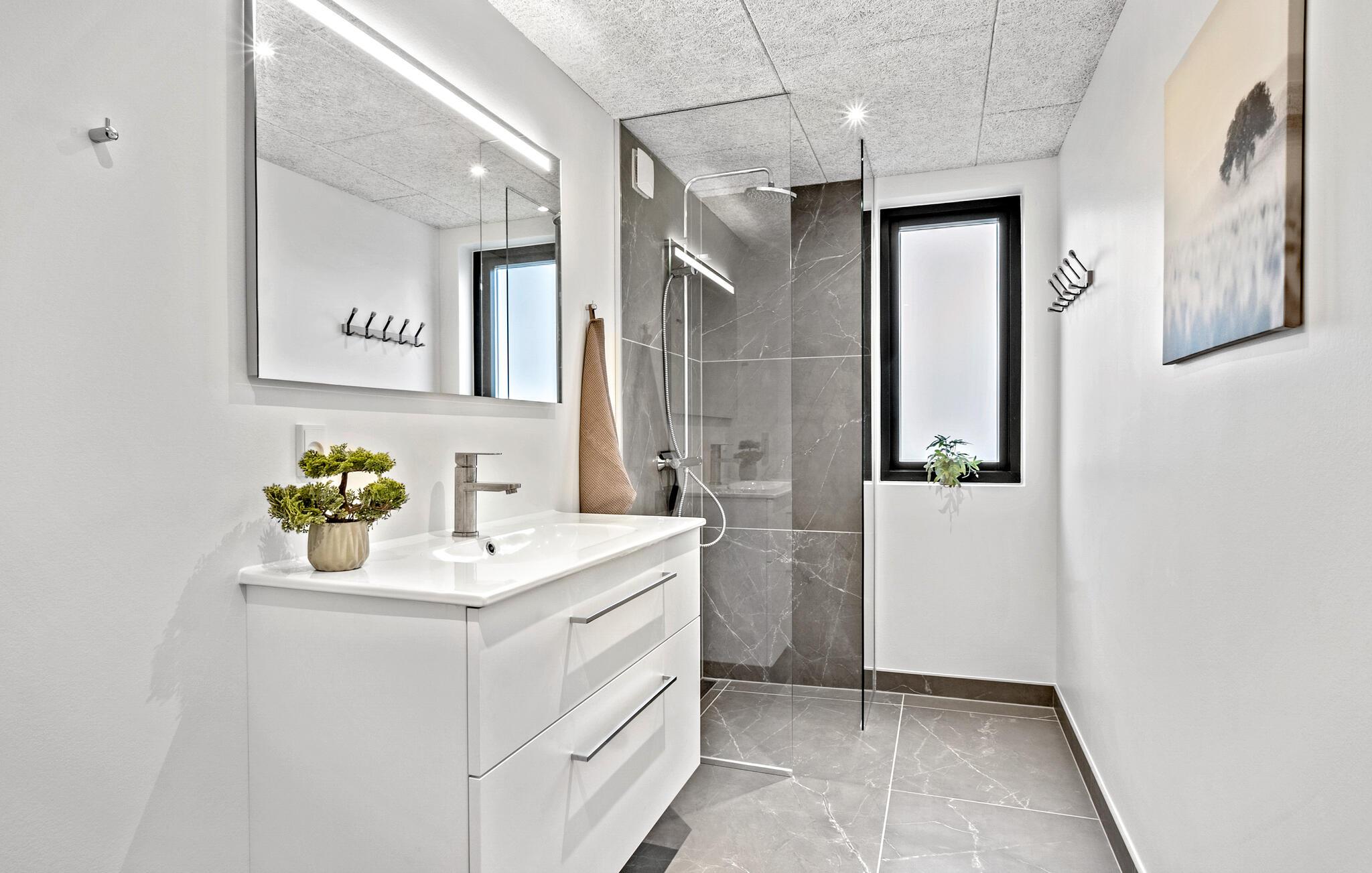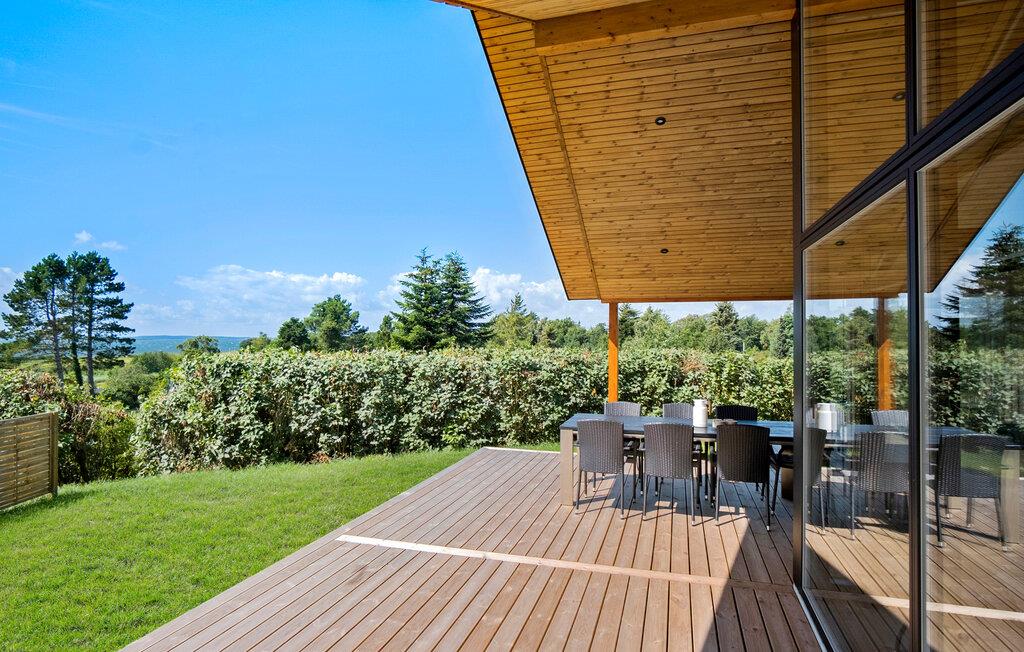 I dette lækre hus ved Falsled får I den perfekte base for årets ferie med den store familie. Huset byder på mange kvadratmeter og er virkelig flot indrettet med sans for detaljen og den gode stil. Nyd nattesøvnen i de komfortable soveværelser, hvoraf nogen har udsigt over havet. Husets hjerte er det åbne køkken-alrum, der har højt til loftet, flot udsigt og lysindfald gennem vinduespartierne og mange moderne faciliteter, så madlavningen, fællesmåltiderne og aftenhyggen bliver til en ren leg. Hvis I skal forkæle jer selv lidt ekstra, kan I svede godt igennem i saunaen eller sætte jer længe i spabadet og nyde, at I ikke skal tidligt op dagen efter.