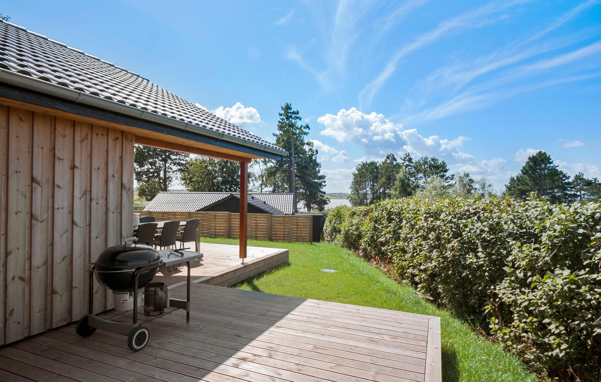 På de varme dage kan I trække ud på den store træterrasse, der er delvist overdækket, så I kan finde sol, skygge og læ efter behov i løbet af dagen. Nyd udsigten over vandet og skibene, mens børnene løber rundt og leger i den store have. Senere kan I tænde op i grillen og servere saftige bøffer og en god salat under aftensolen, mens I lægger planer for de kommende dage.