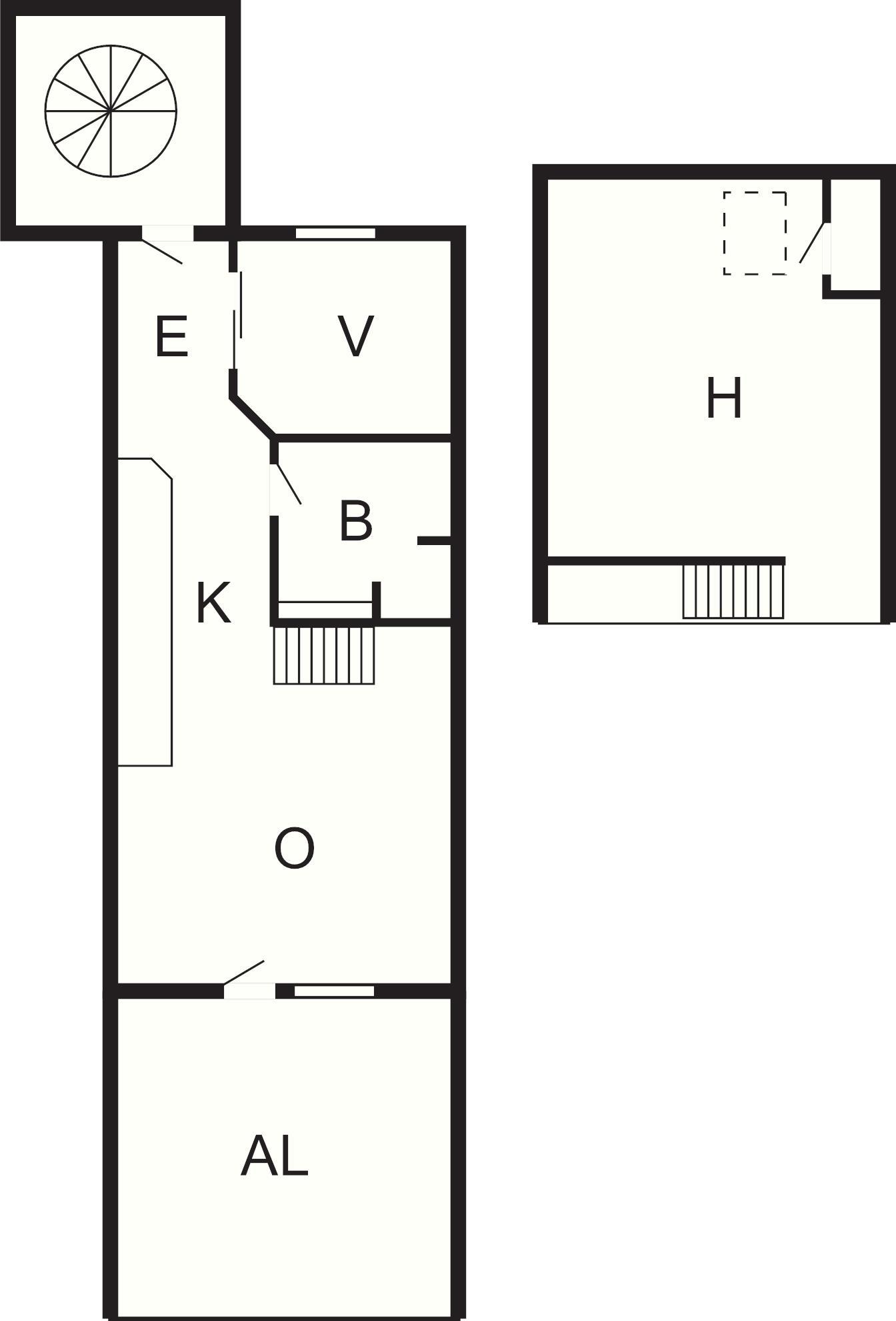 Køkkenafd.: El-komfur, køleskab m/frostboks, emhætte, kaffemaskine