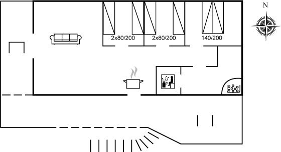 Der er i alt 3 soveværelser. Sovepladserne fordeler sig på: 2 sovepladser i dobbeltseng. 4 sovepladser i enkeltsenge.