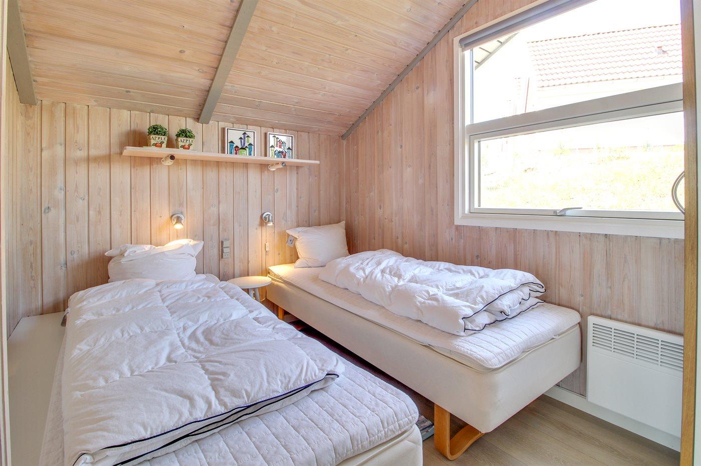 Der er i alt 3 soveværelser. Sovepladserne fordeler sig på: 2 sovepladser i dobbeltseng. 4 sovepladser i enkeltsenge. Derudover er der 1 stk. barneseng.