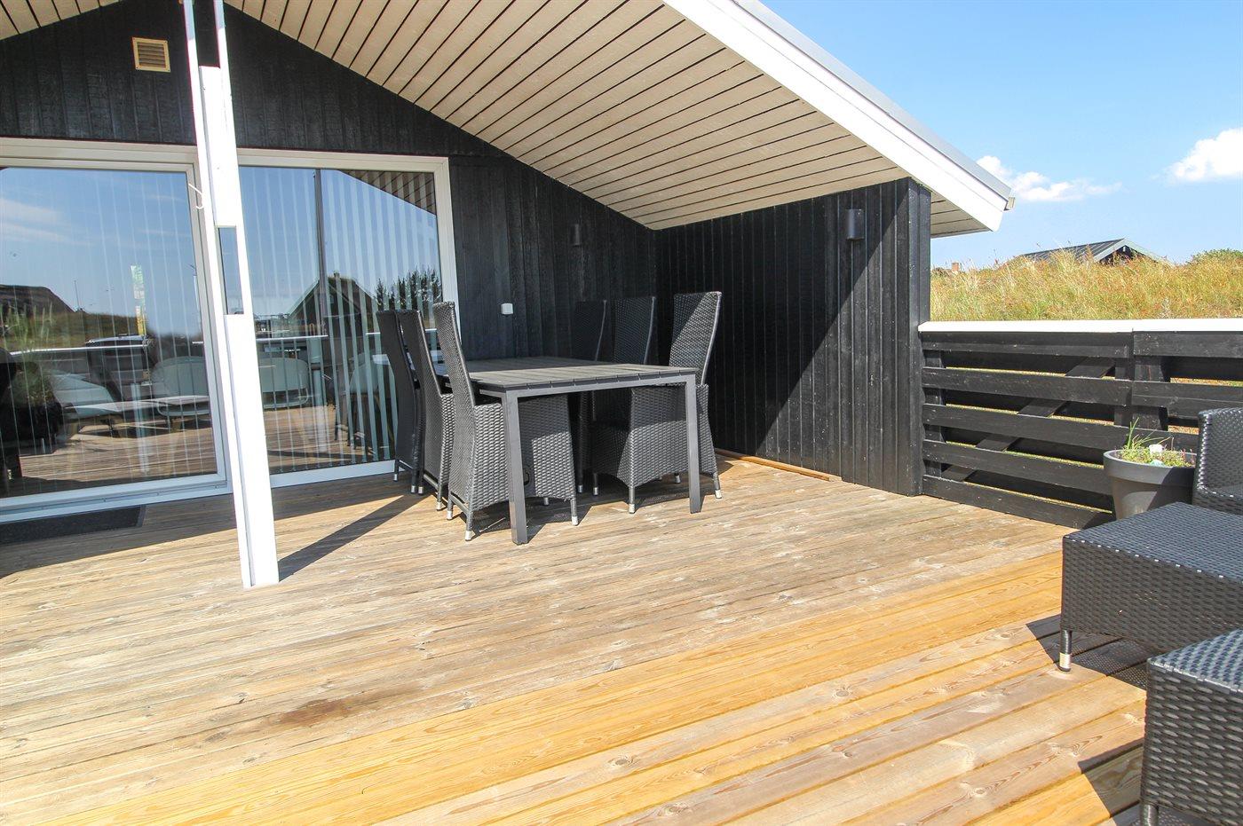 Ferieboligen er beliggende på en 868 m² stor klitgrund. Der er 400 m til havet. Nærmeste forretning er beliggende i en afstand af 900 m. Der er en golfbane i en afstand af 200 m. Til ferieboligen hører 40 m² terrasseareal. Desuden er der 12 m² overdækket terrasse. Gynge. Grill til rådighed. Parkering ved ferieboligen.