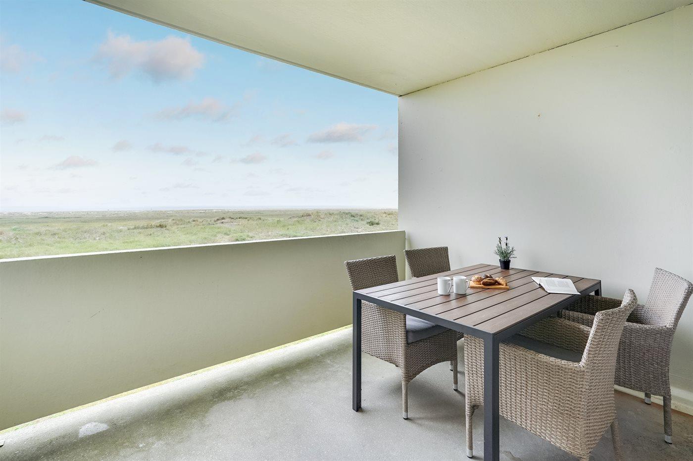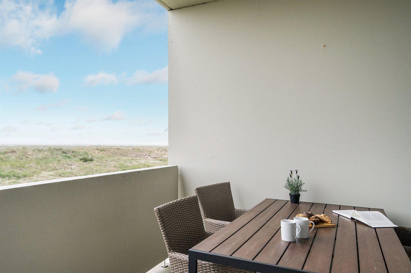Skøn vestvendt ferielejlighed med havudsigt og adgang til opvarmet pool ved Fanø Bad.