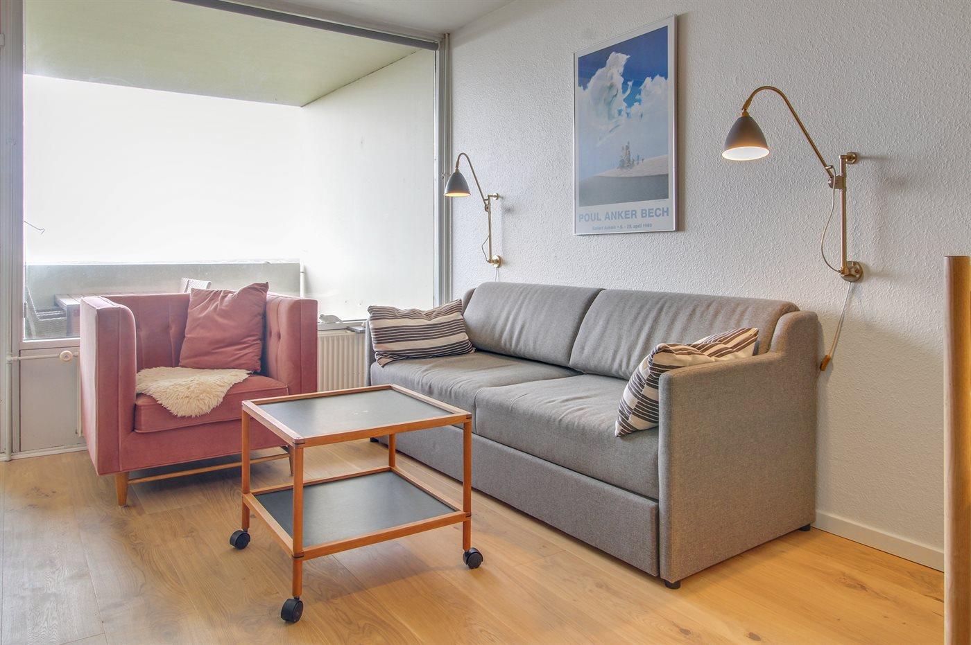 Der er i alt 1 soveværelse. Sovepladserne fordeler sig på: 2 sovepladser i enkeltsenge. 2 sovepladser i sovesofa (dobbelt).
