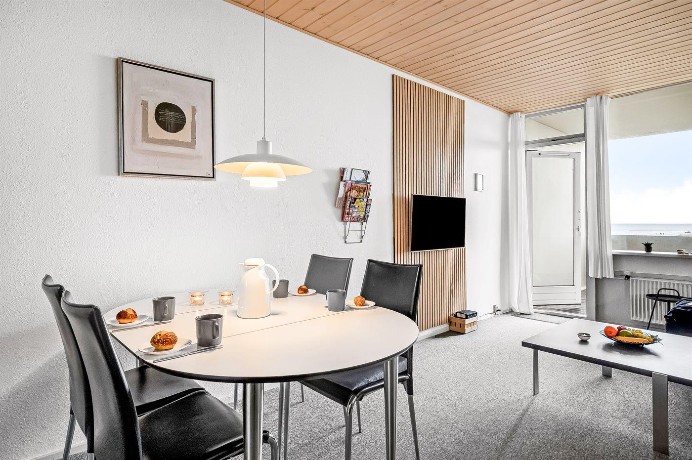 Attraktiv ferielejlighed beliggende på 1. sal med en pragtfuld udsigt over hav og klitter. Lejligheden ligger ca. i midten af blokken med udgang til skøn træbelagt terrasse, hvor man kan sidde det meste af året. Fællesfaciliteter: Udendørs pool, som er opvarmet med solvarme, indendørs pool samt børnepool, sauna, vaskerum med tørretumbler og strygemulighed, gratis internetadgang, aktivitetsrum med bl.a. bordtennis, legerum, air-hockey. Dejlige udendørsarealer med grill, borde-bænke og petanquebane samt legeplads med sandkasse, rutschebane og legetårn.