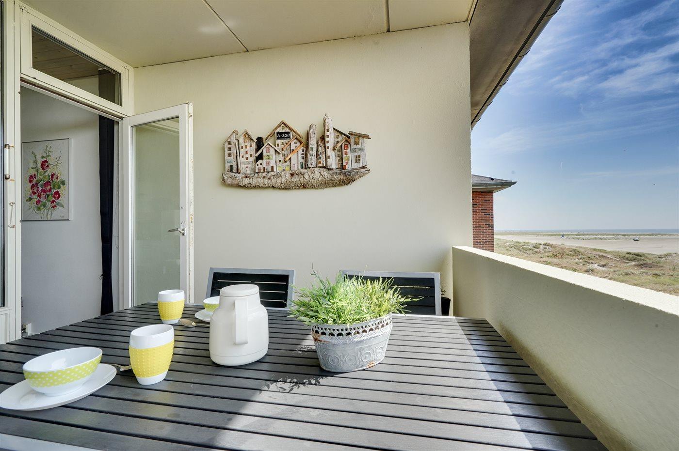 Hyggelig ferielejlighed på 2. sal med havudsigt, opvarmet pool og gratis internet i smukke Fanø Bad.