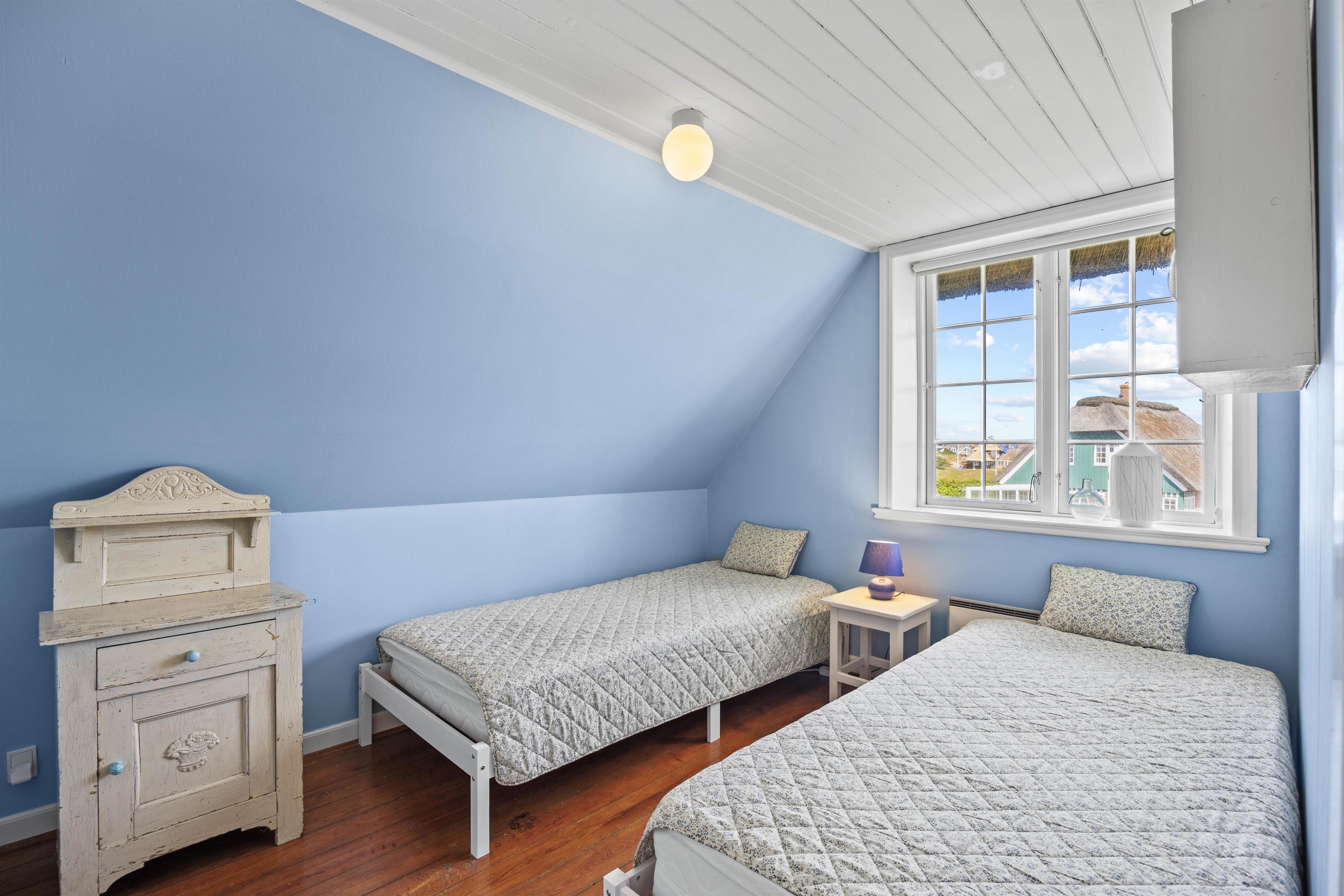 Det separate køkken er veludstyret med blandt andet opvaskemaskine og mikrobølgeovn og lægger op til fælles madlavning og hyggelige måltider. I alt findes der 2 badeværelser – det ene på første sal – og på øverste etage er der 3 soveværelser, 2 dobbeltsenge og 2 enkeltsenge.