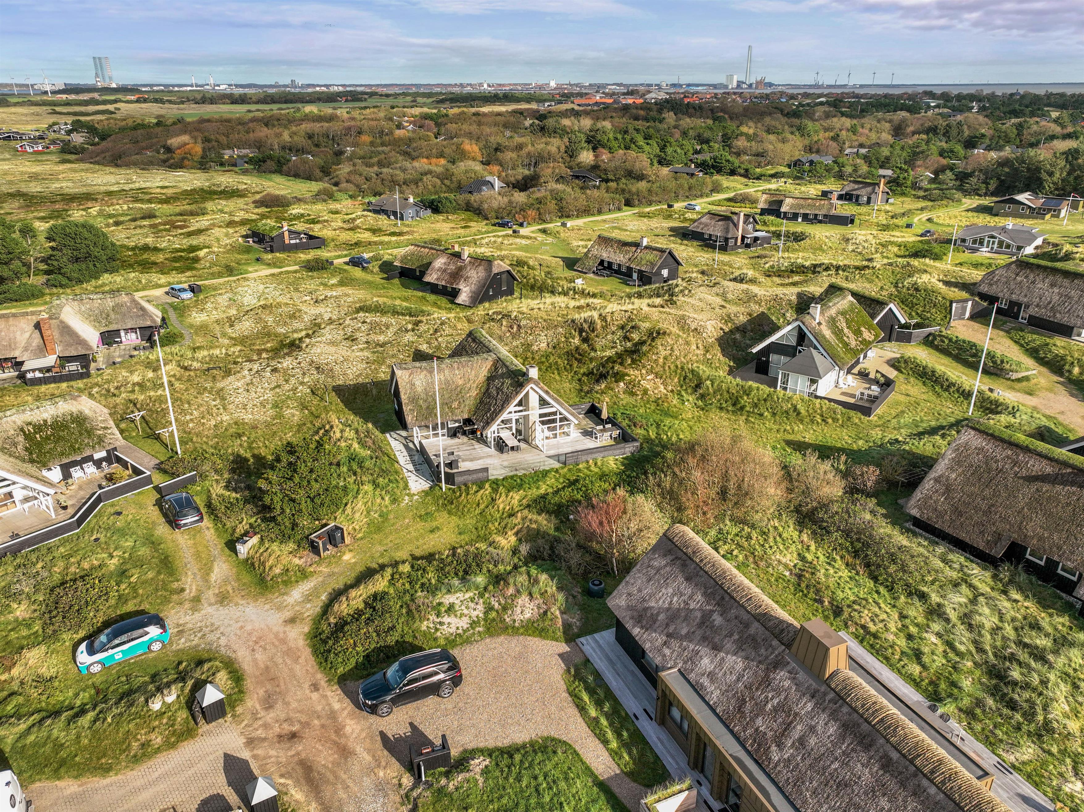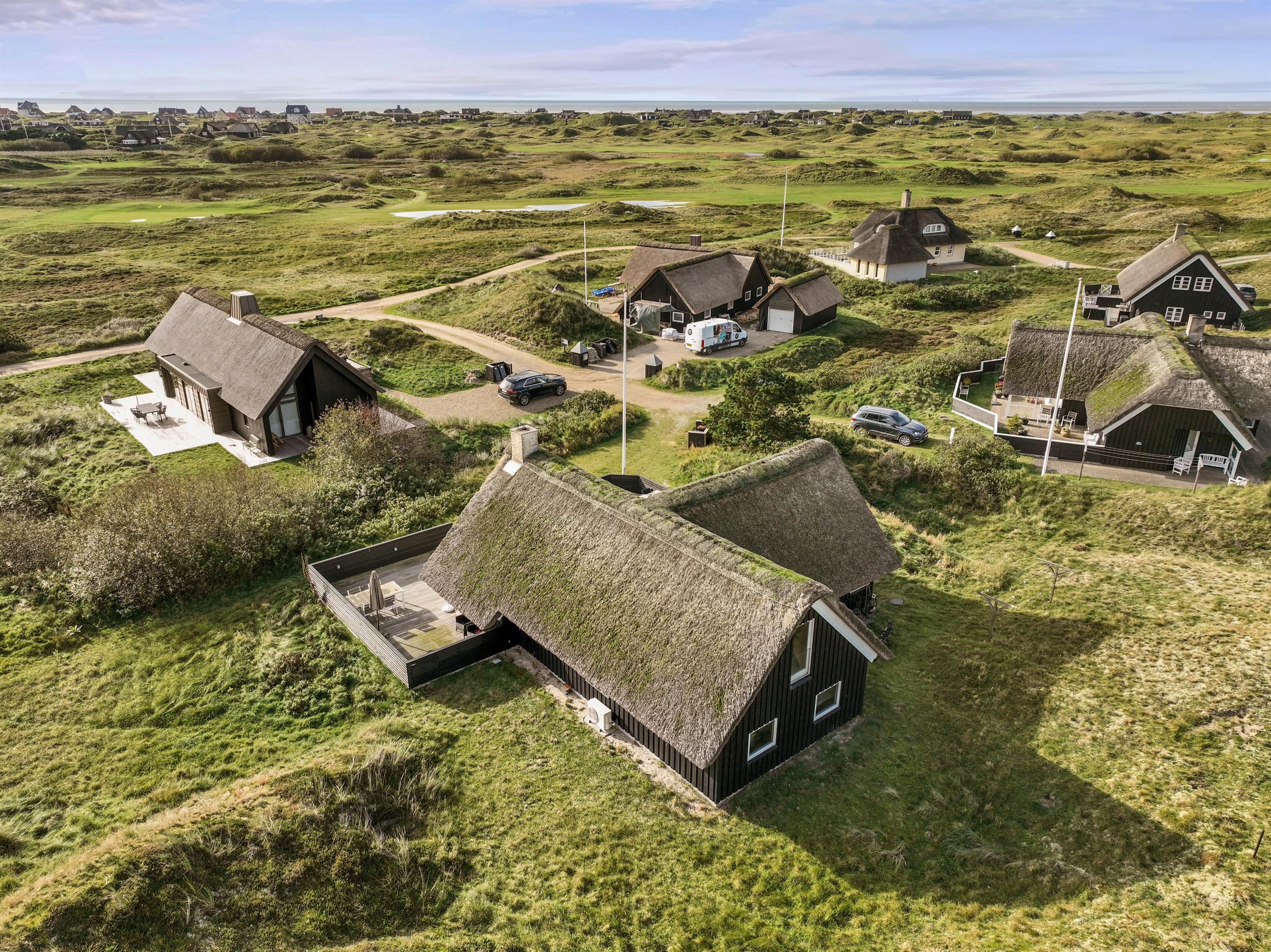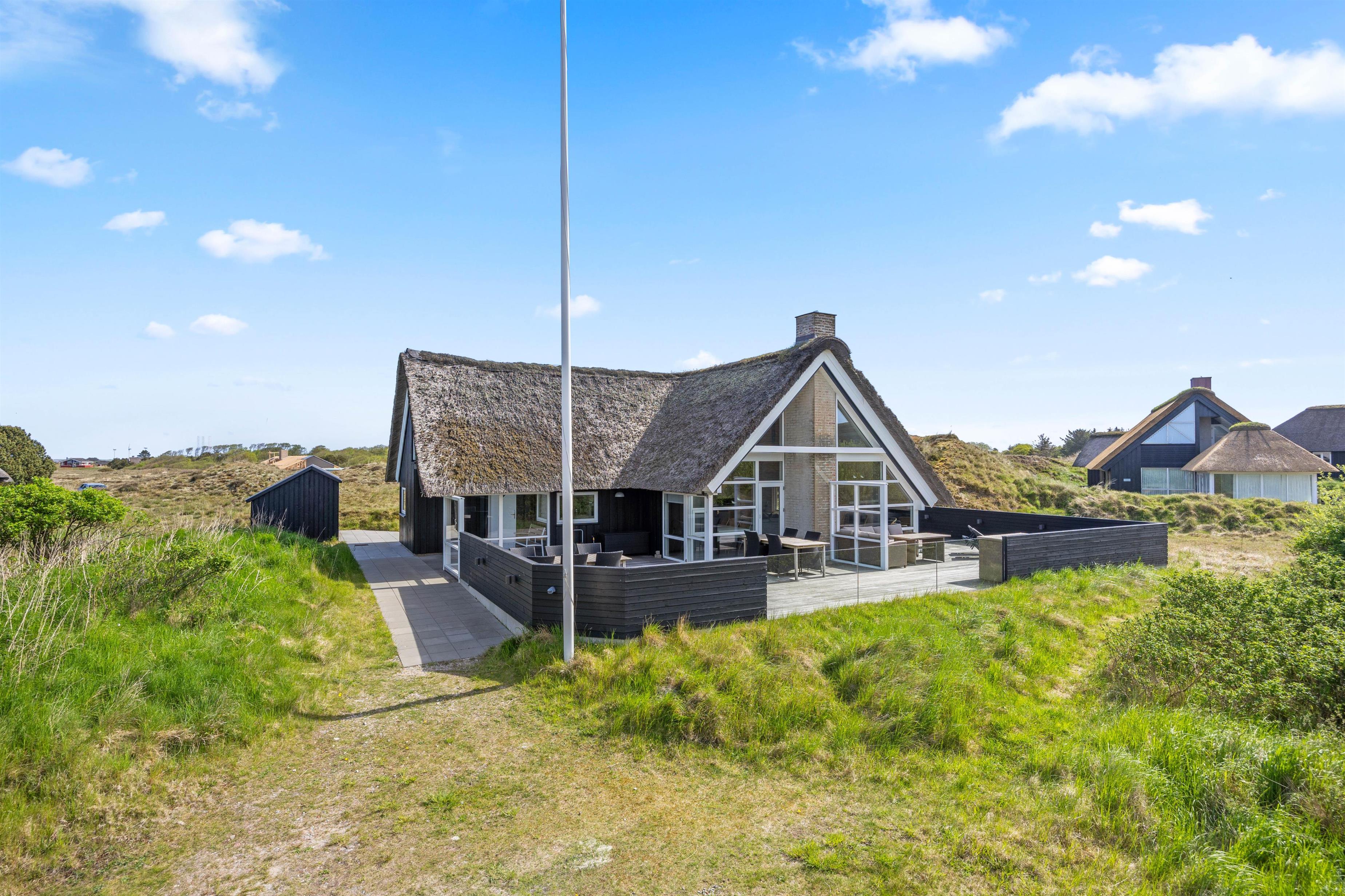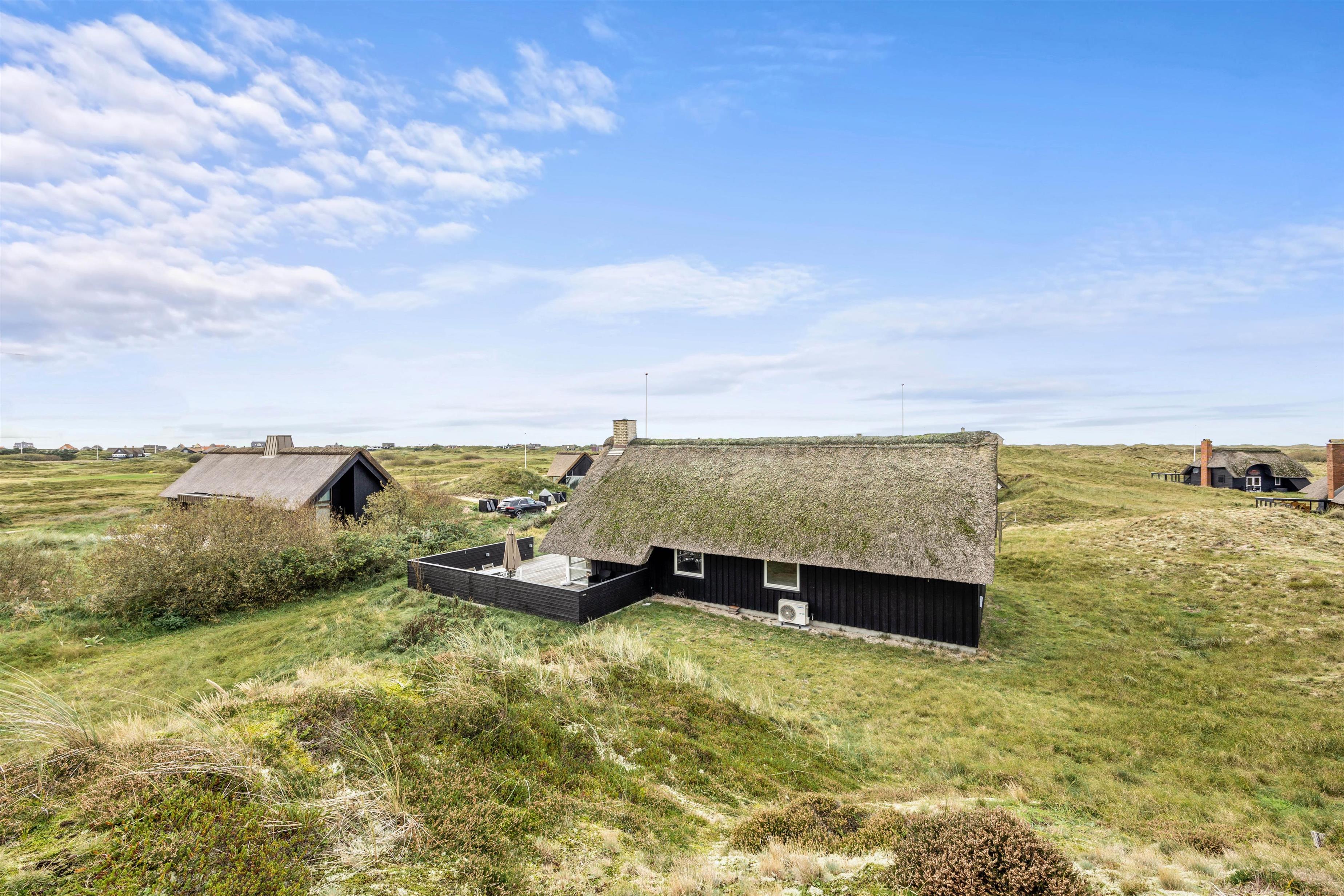 Start dagen med morgenmad på den store træterrasse, som omgiver sommerhuset. Nyd de smukke omgivelser og lyt til fuglesangen. Tag solbad i de komfortable liggestole, slap af i havemøblerne og flyt jer rundt efter solen, som det passer jer bedst. Der vil altid kunne findes en krog med læ eller skygge. Tænd op i grillen til aften, og slut dagen af med et lækkert grillmåltid sammen, imens skyggerne bliver lange. Bagefter kan I gå en tur til Vesterhavet, hvis I trænger til mere frisk luft og motion. En god kilometer hver vej giver jer mulighed for at opleve solnedgangen, som altid er en oplevelse, uanset vejret.