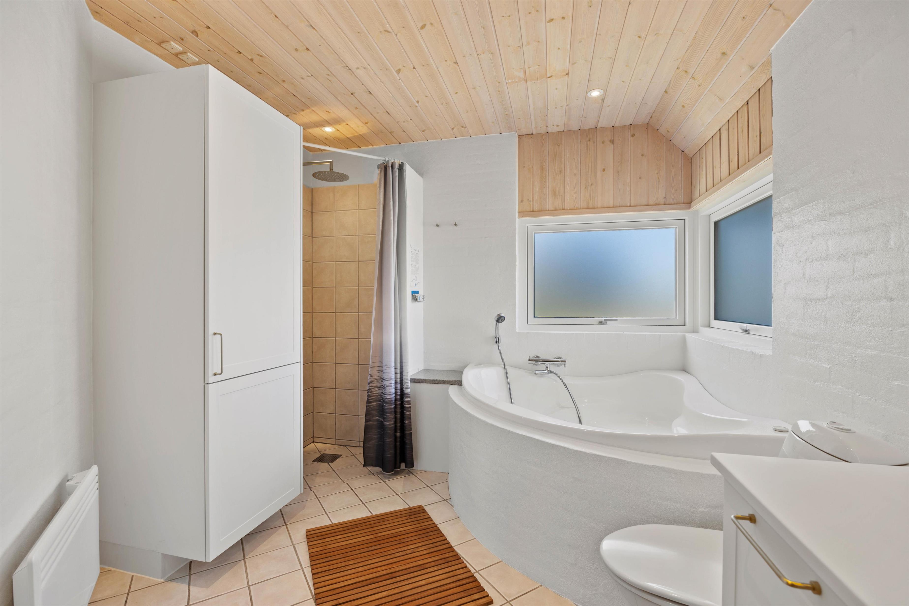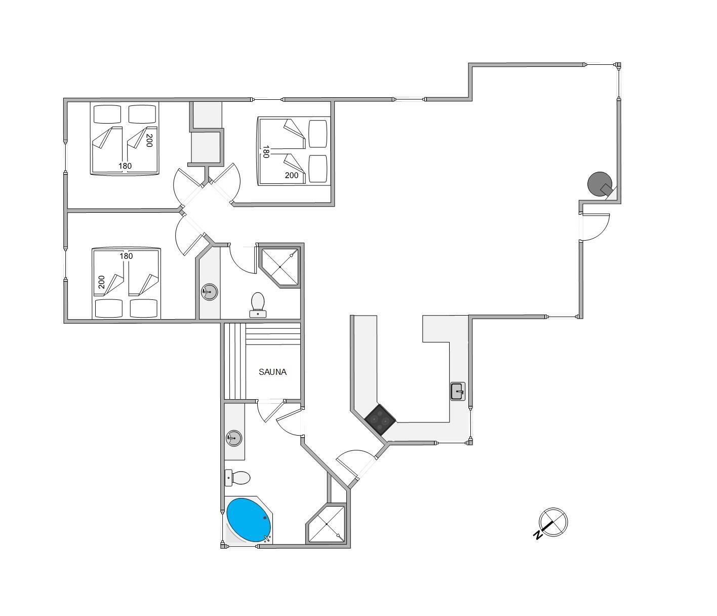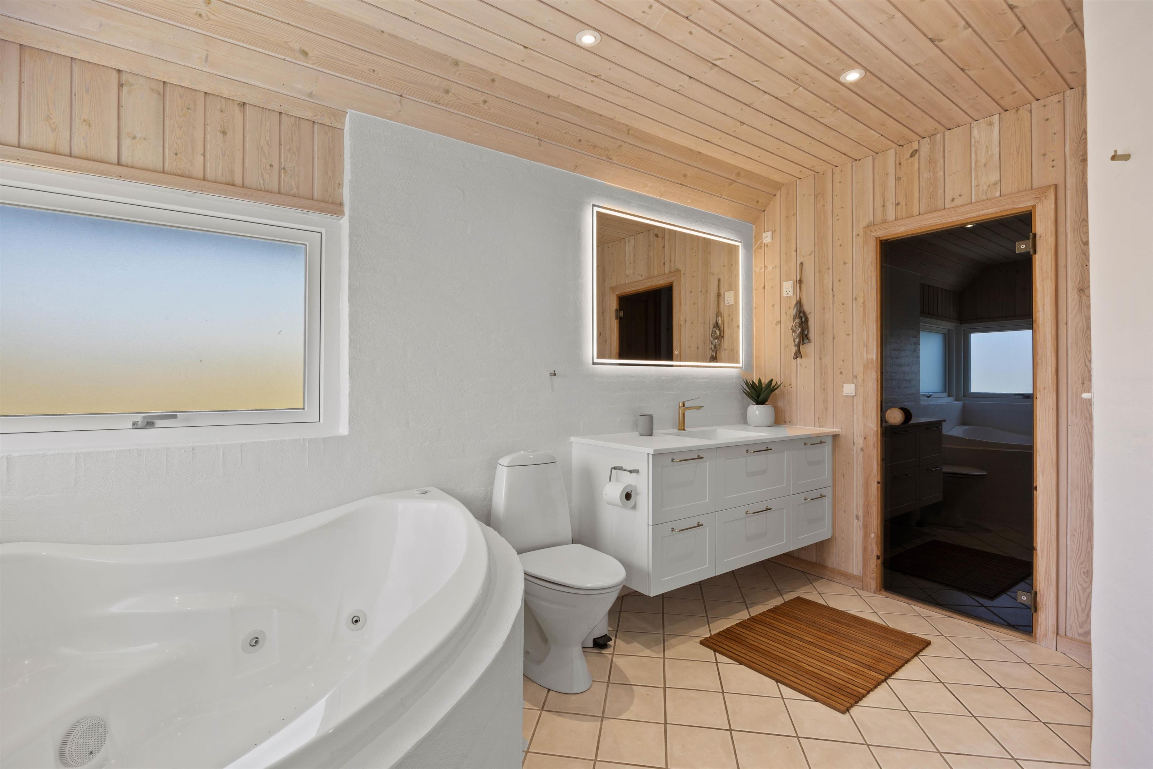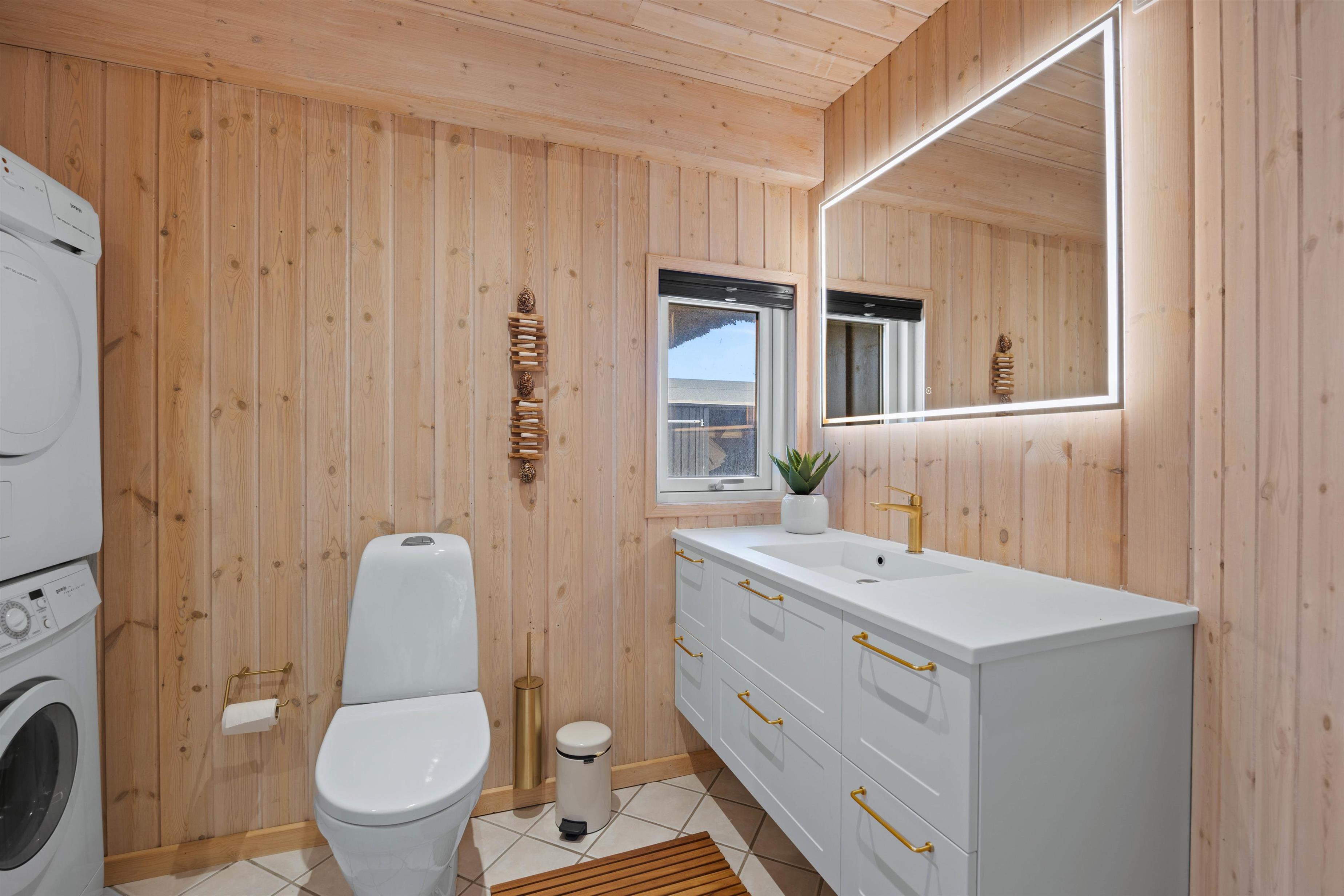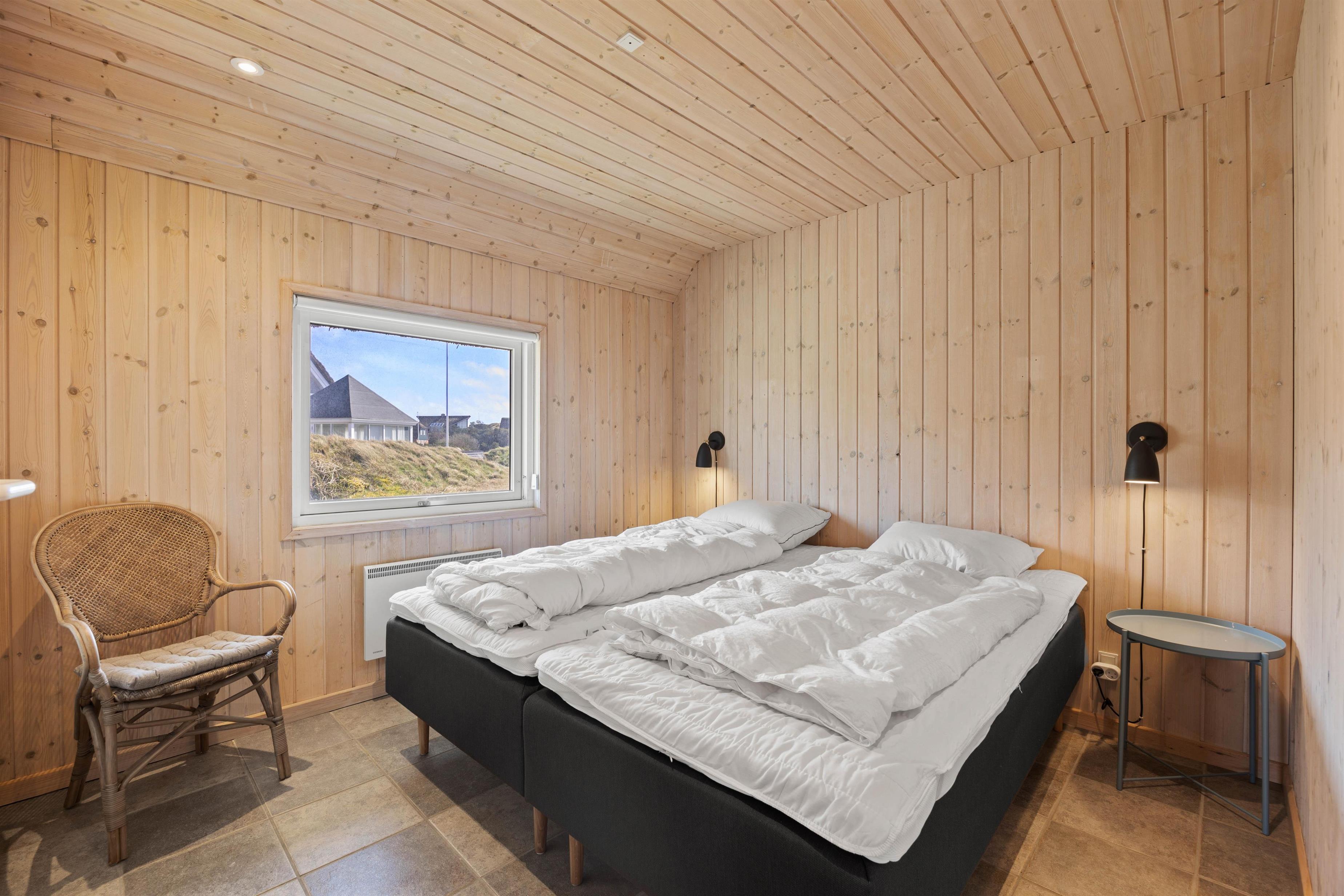 Feriehuset indeholder 3 rummelige soveværelser med komfortable dobbeltsenge. Der er vaskemaskine og tørretumbler til jeres rådighed for jer under opholdet, så I kan friske håndklæderne op undervejs. På gæstetoilettet er der brusekabine, og i forbindelse med det store badeværelse er også spa og sauna, så I har mulighed for at blive rigtig godt afslappede, før søvnen kalder i den friske vesterhavsluft.