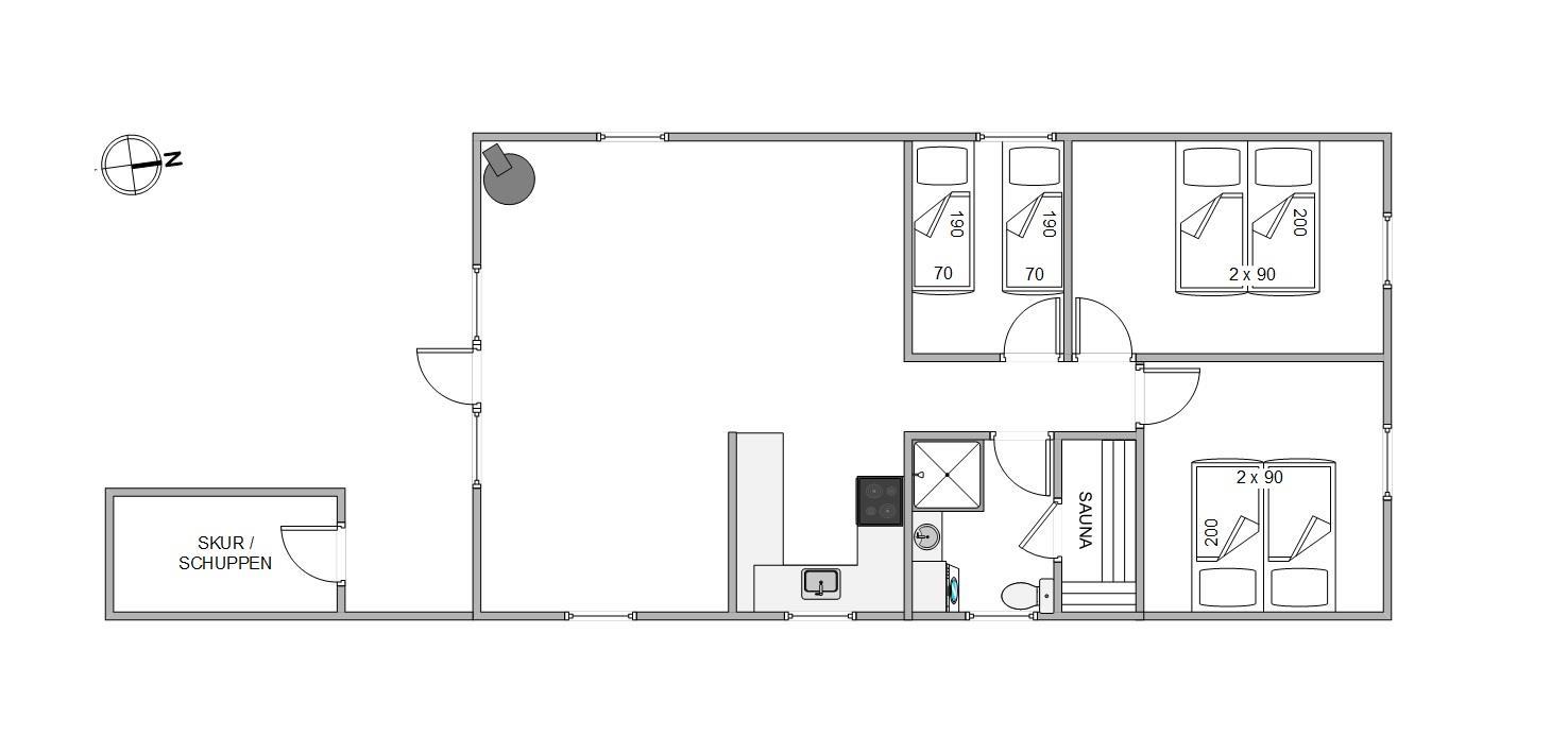 I stuen kan brændeovnen knitre, mens man løser kryds og tværs og slapper af, og så er der tv med både tyske og danske kanaler. Komforten er i top med mulighed for at tænde for saunaen, og her desuden vaskemaskine og varme i gulvet på badeværelset.