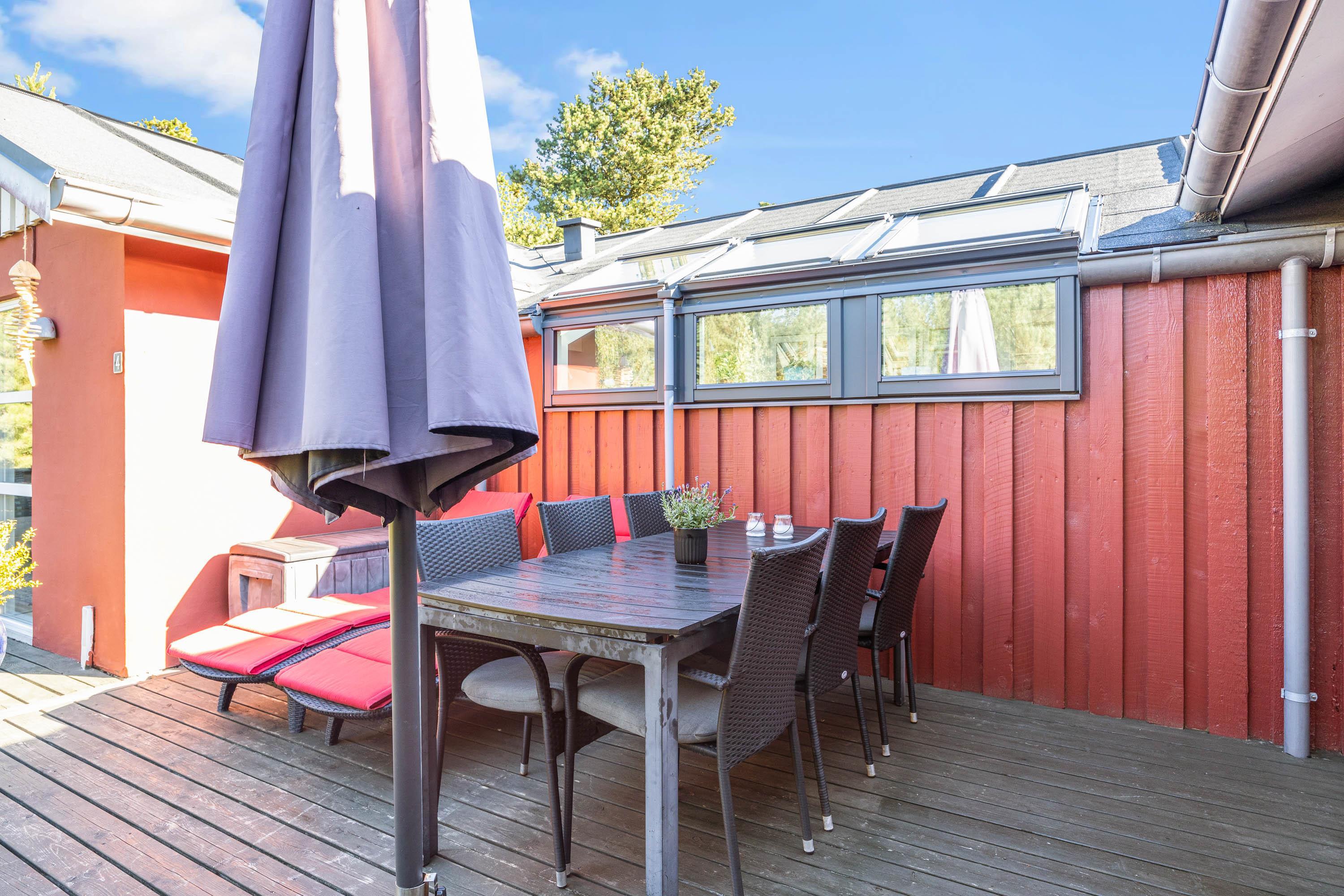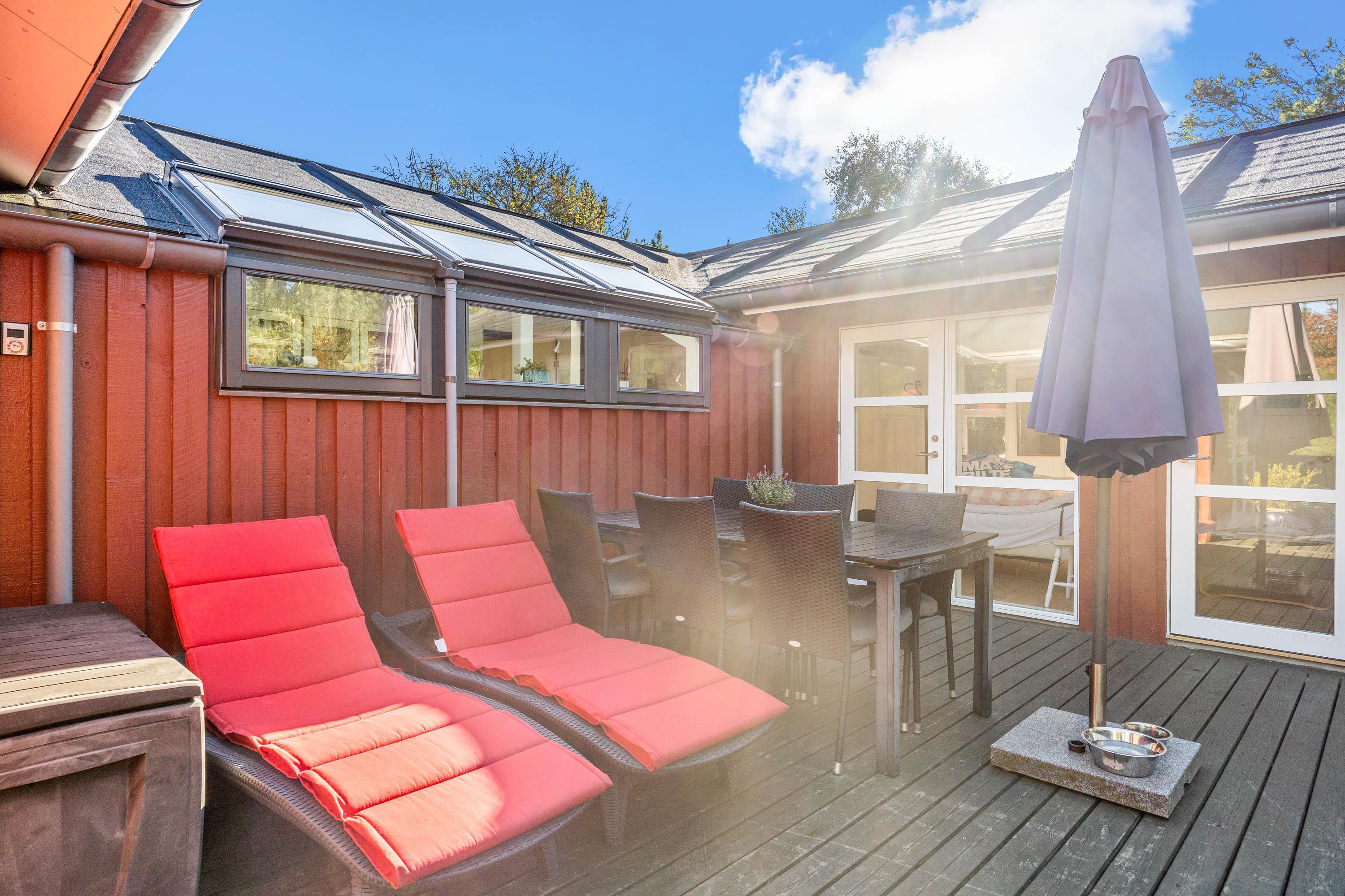 Udenfor kan man grille og hygge på både en åben og lukket terrasse og slænge sig i liggestole.