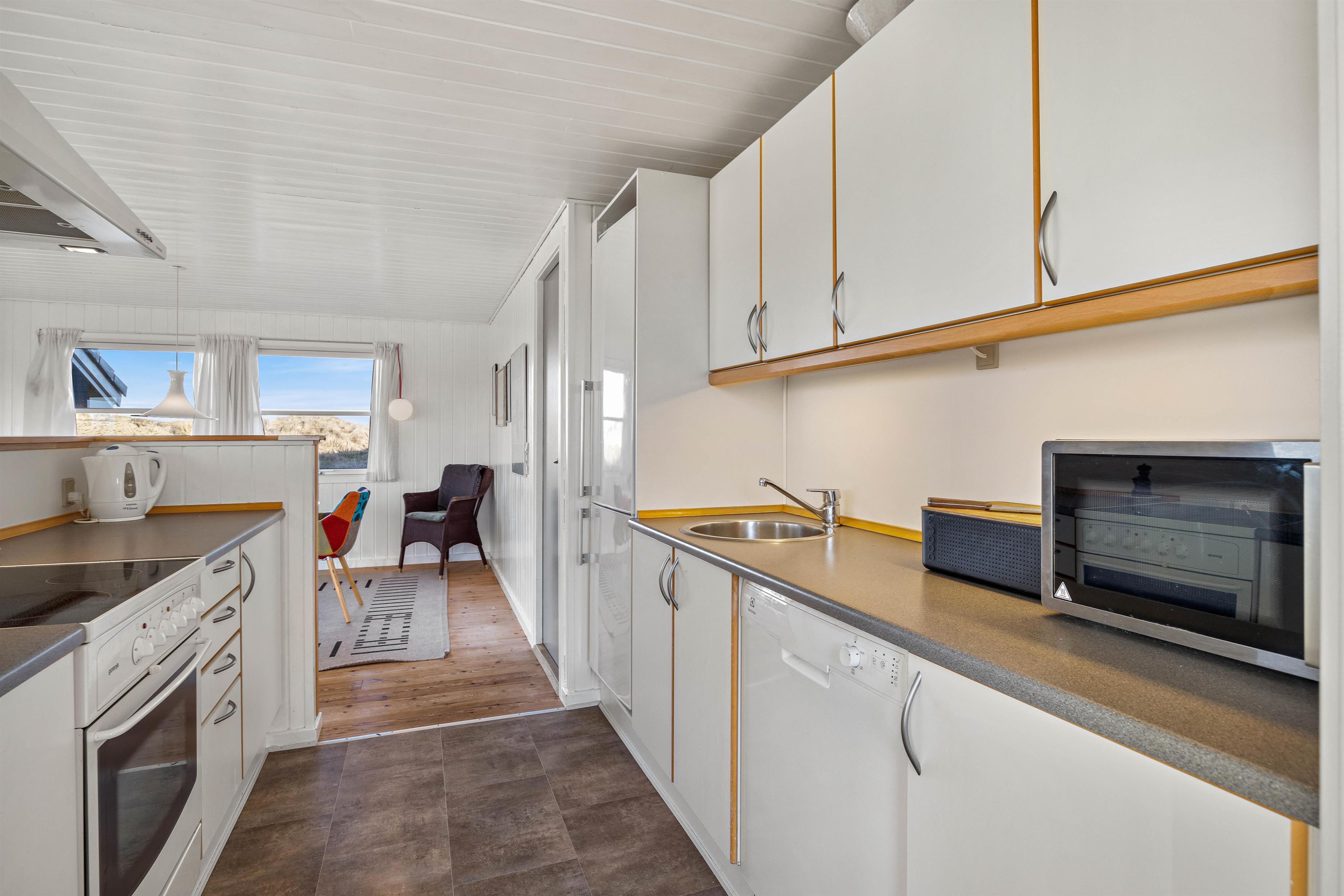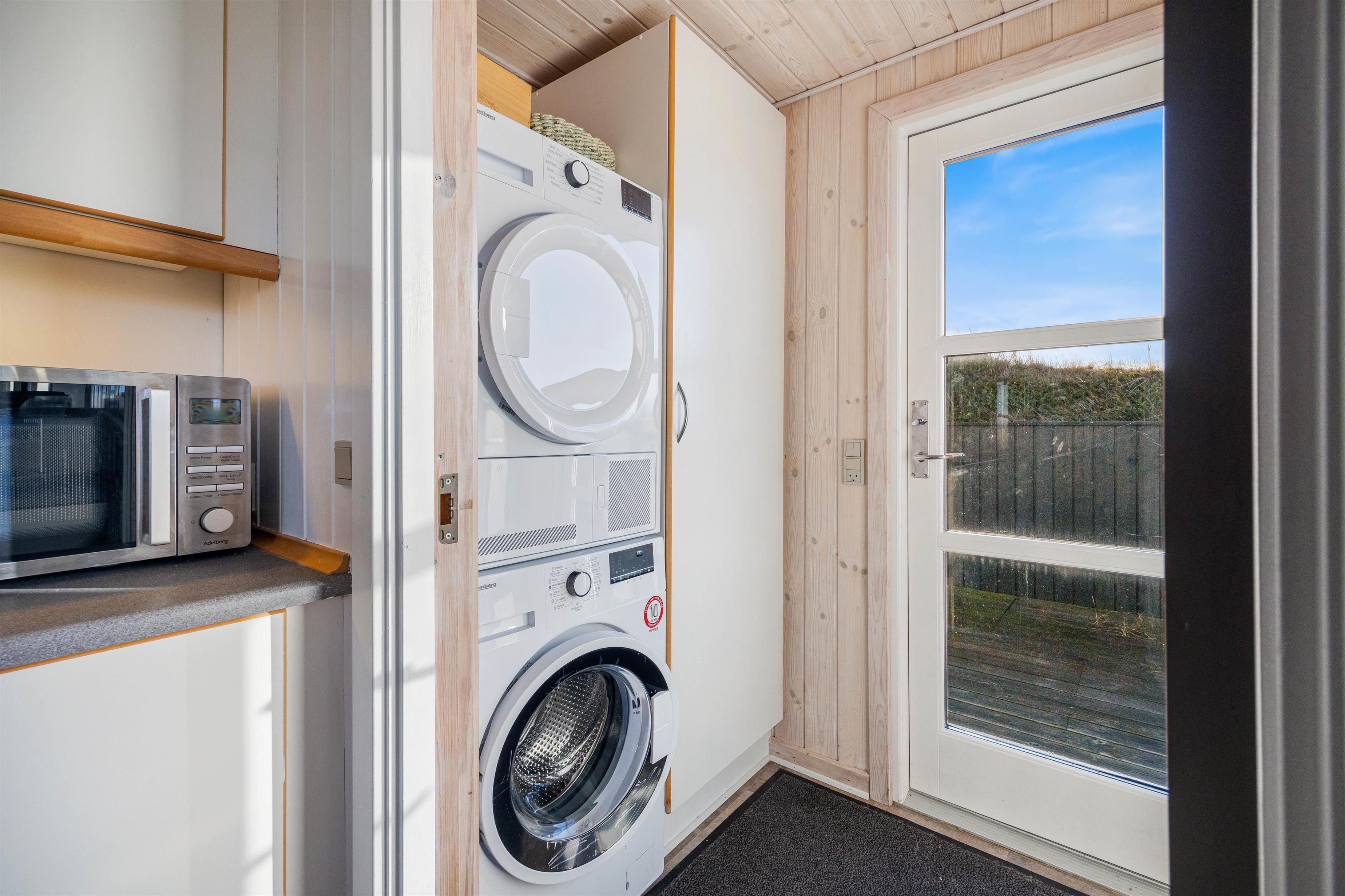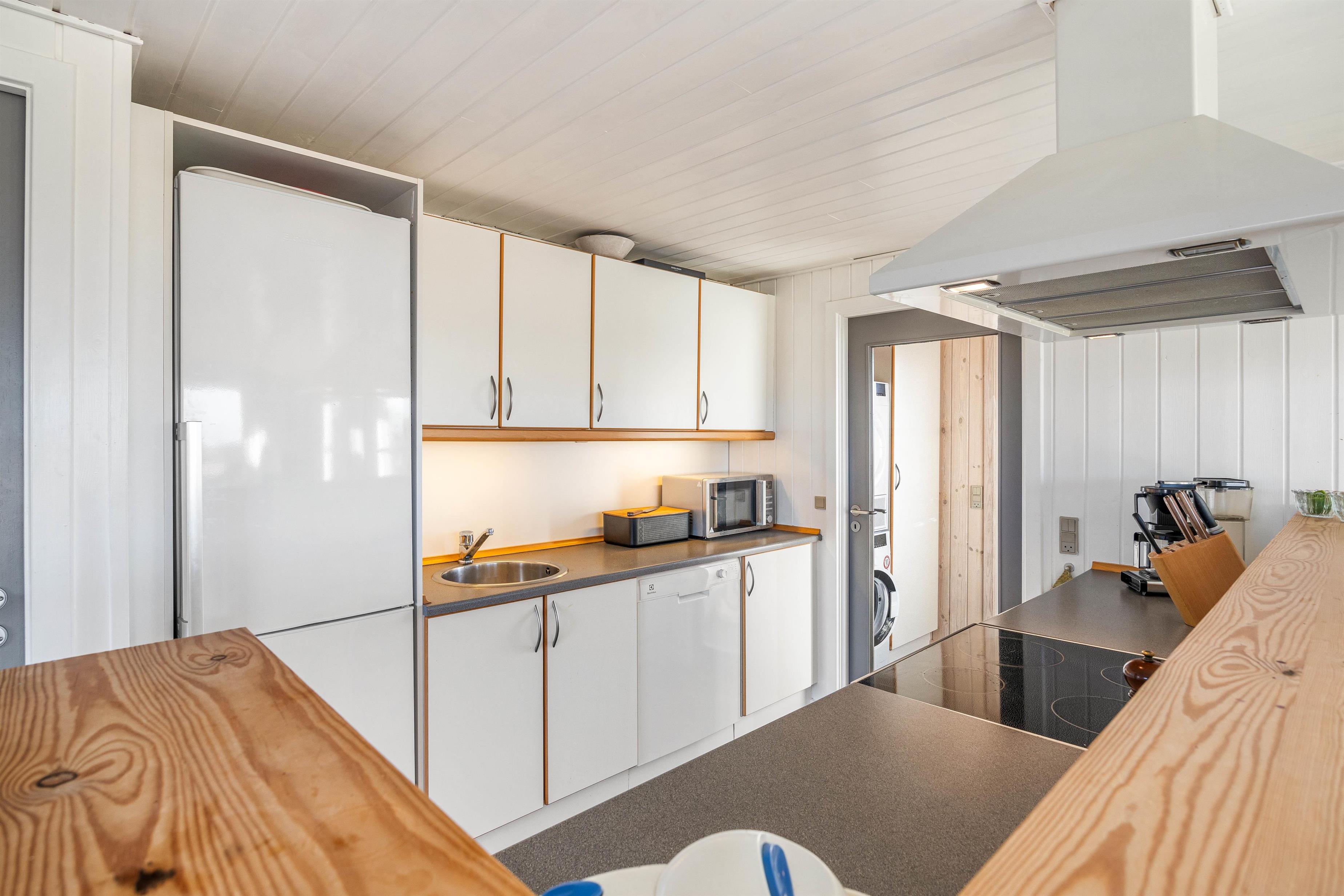 Sommerhuset er udstyret med gode praktiske faciliteter med både en 90 liters fryser, en mikrobølgeovn, samt en opvaskemaskine, og der er desuden både vaskemaskine og tørretumbler at benytte sig af, der gør jeres ophold funktionelt og nemt at overskue.