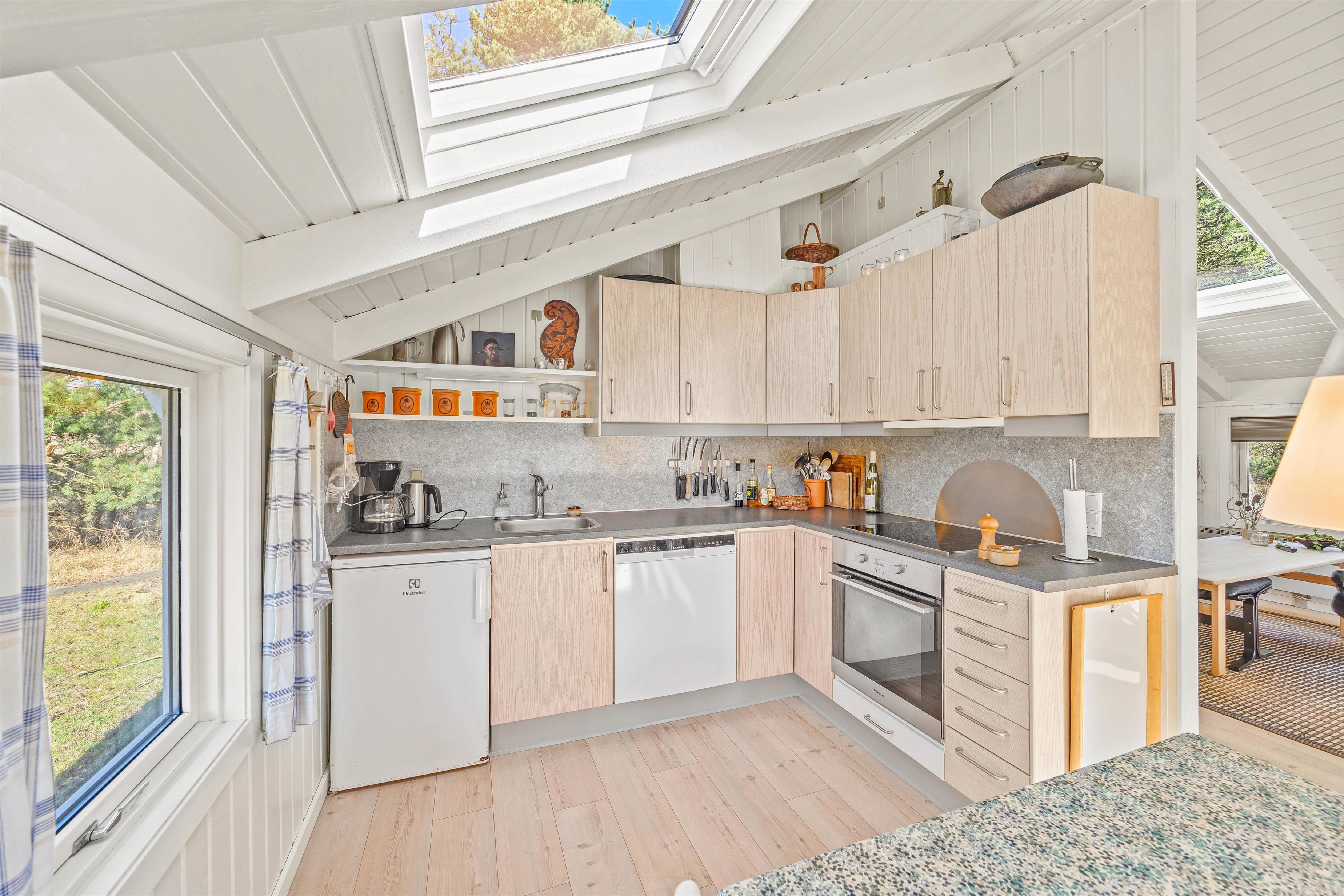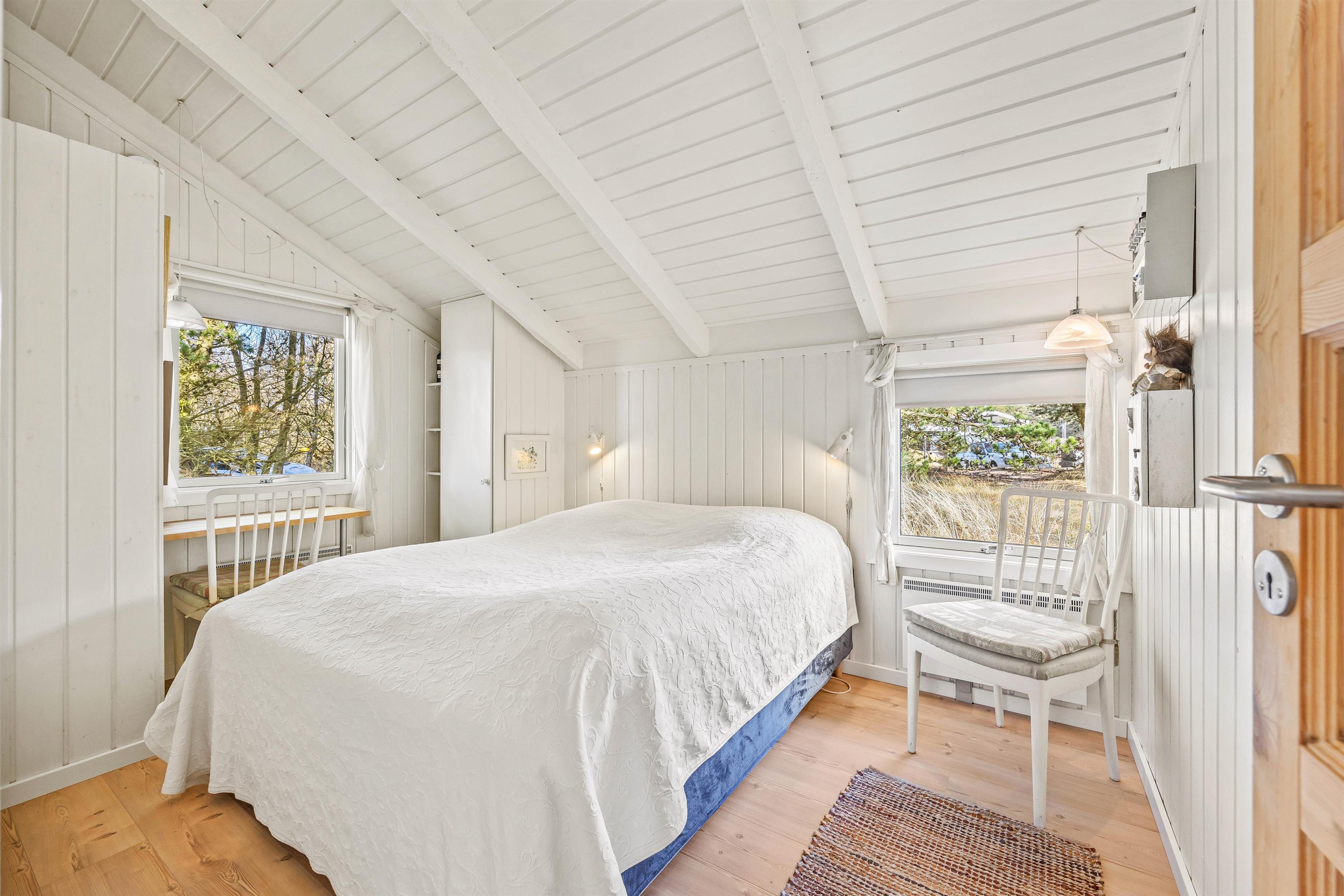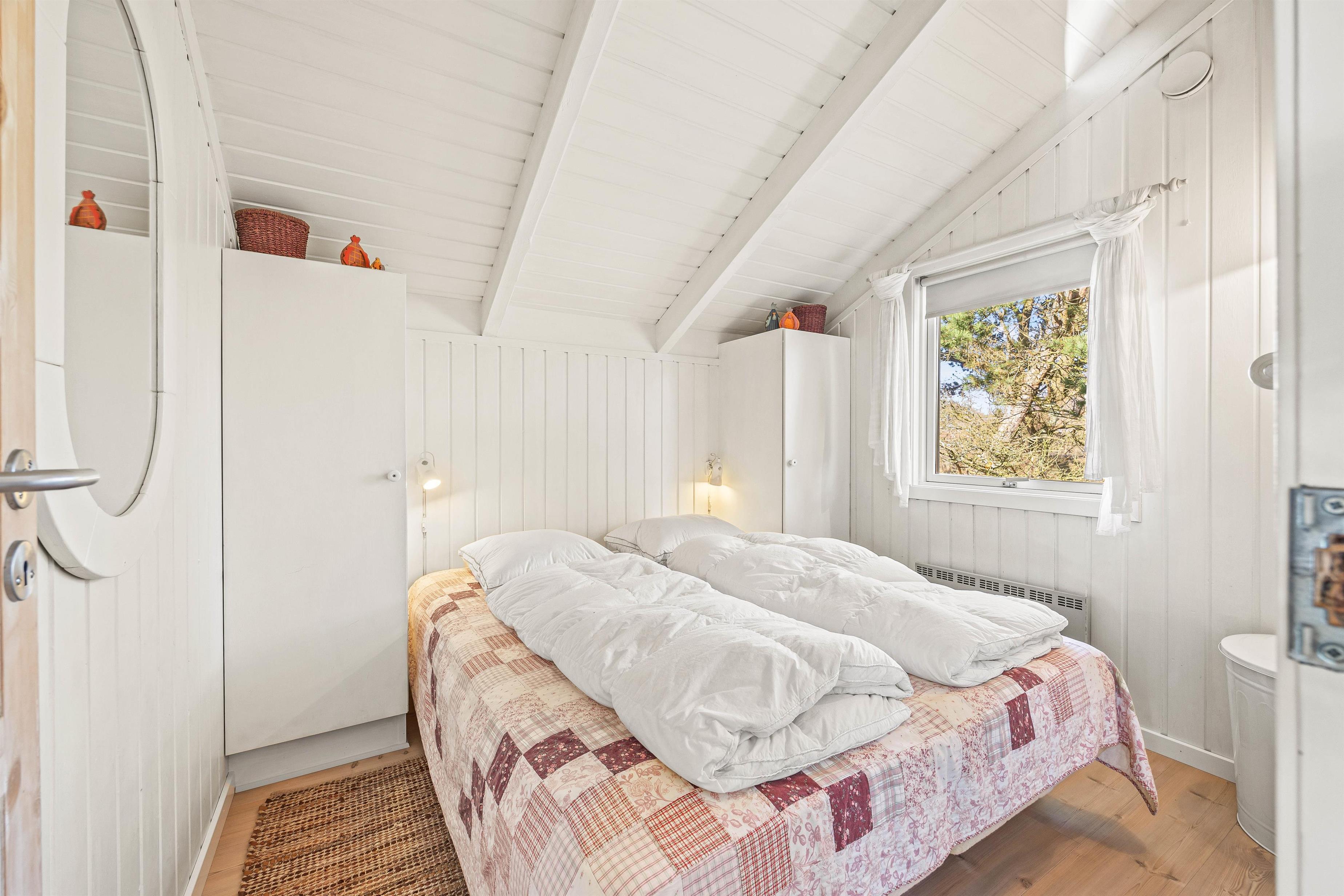 Sommerhusets badeværelse er med gulvvarme, og her er desuden en vaskemaskine til jeres rådighed. De 4 sovepladser fordeler sig på 2 gode soveværelser – begge indrettet med dobbeltseng.