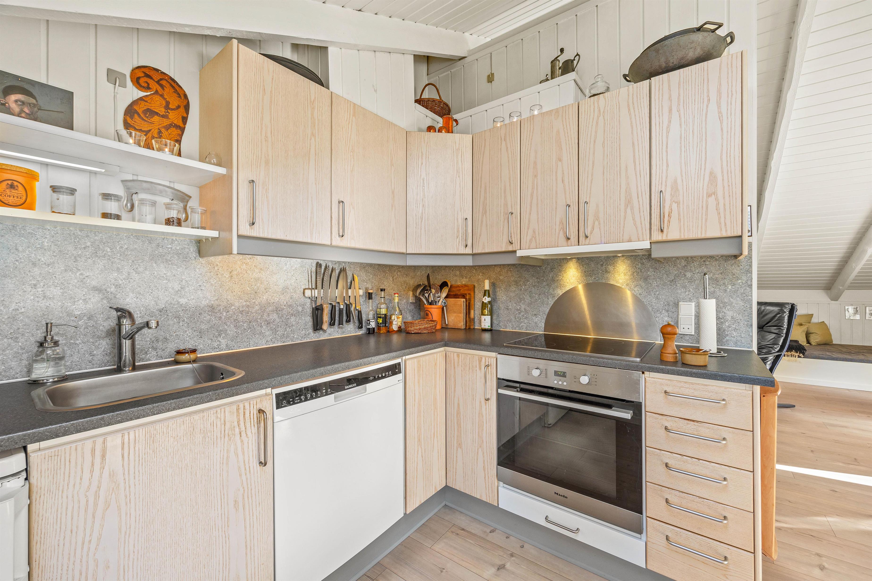 Spisepladsen og køkkenet ligger i åben forbindelse med stuen, så I kan lave forskellige ting, men på samme tid være samlet. Ved spisebordet vil I helt sikkert få nogle gode stunder, hvad enten det er til middagen eller et sjovt spil.