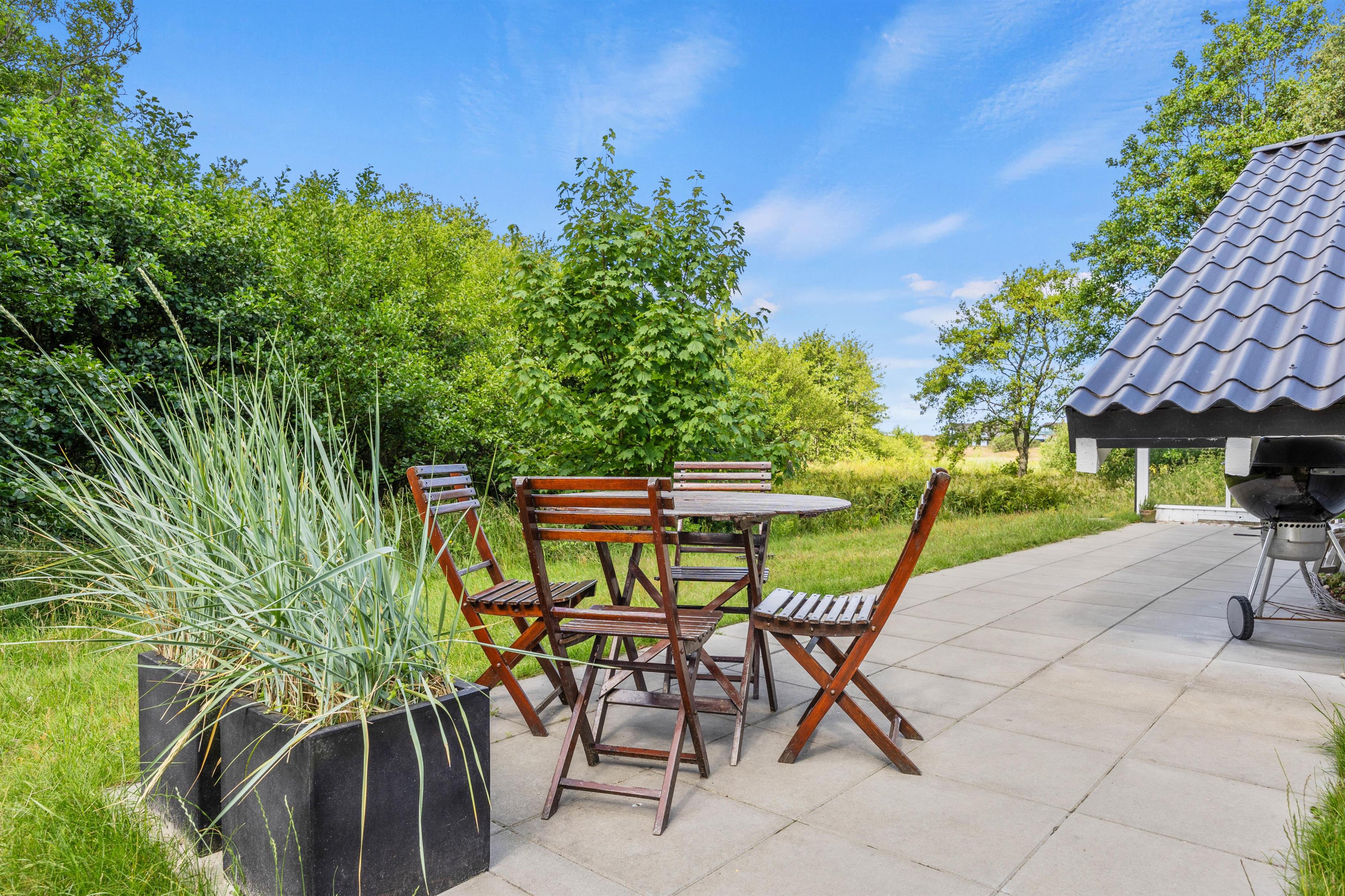 Læn jer tilbage i havemøblerne, nyd en kop kaffe og en god bog, mens fuglene kvidrer i baggrunden. Feriedagen afsluttes naturligvis med en god middag på terrassen, som I kan tilberede på feriehusets grill.