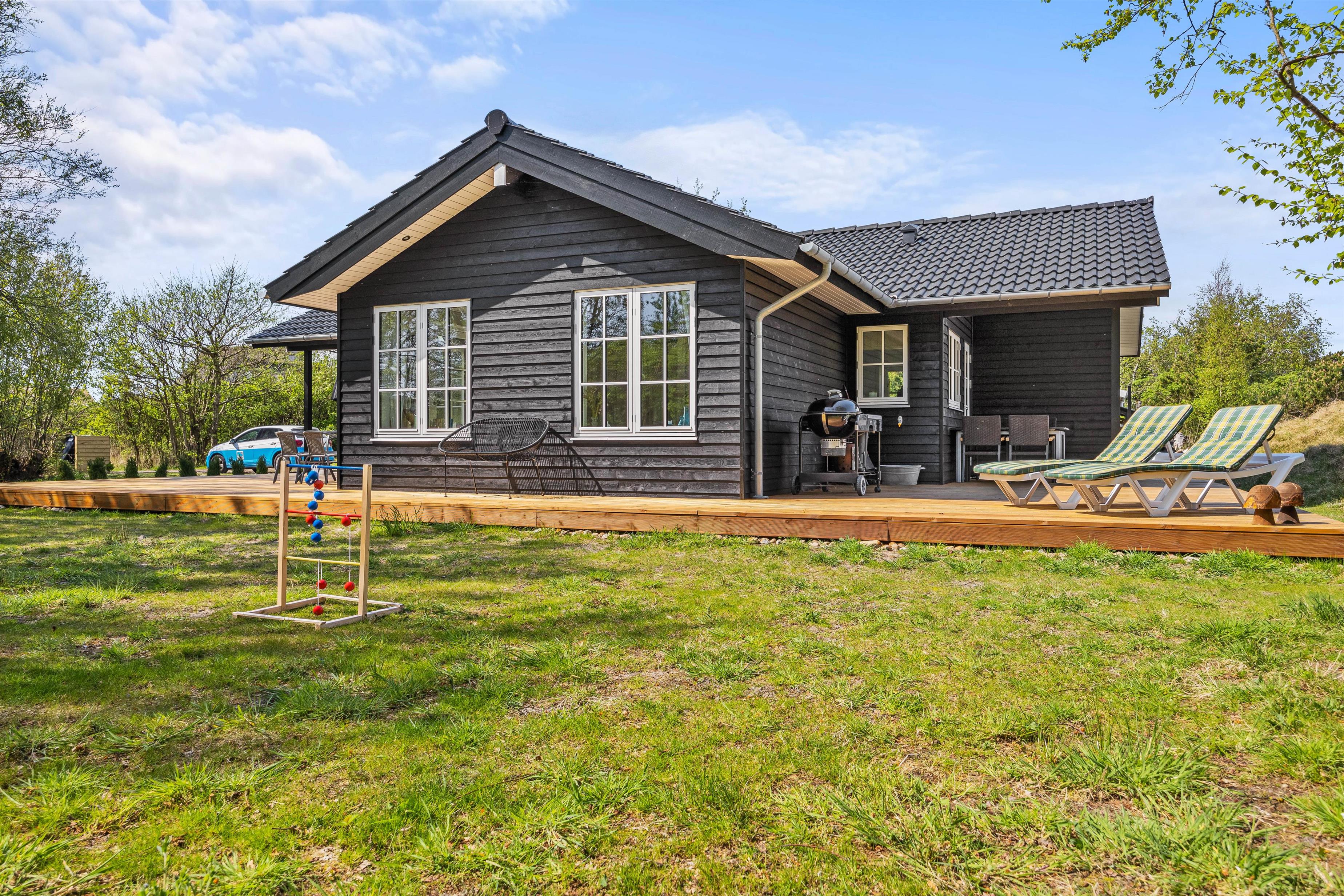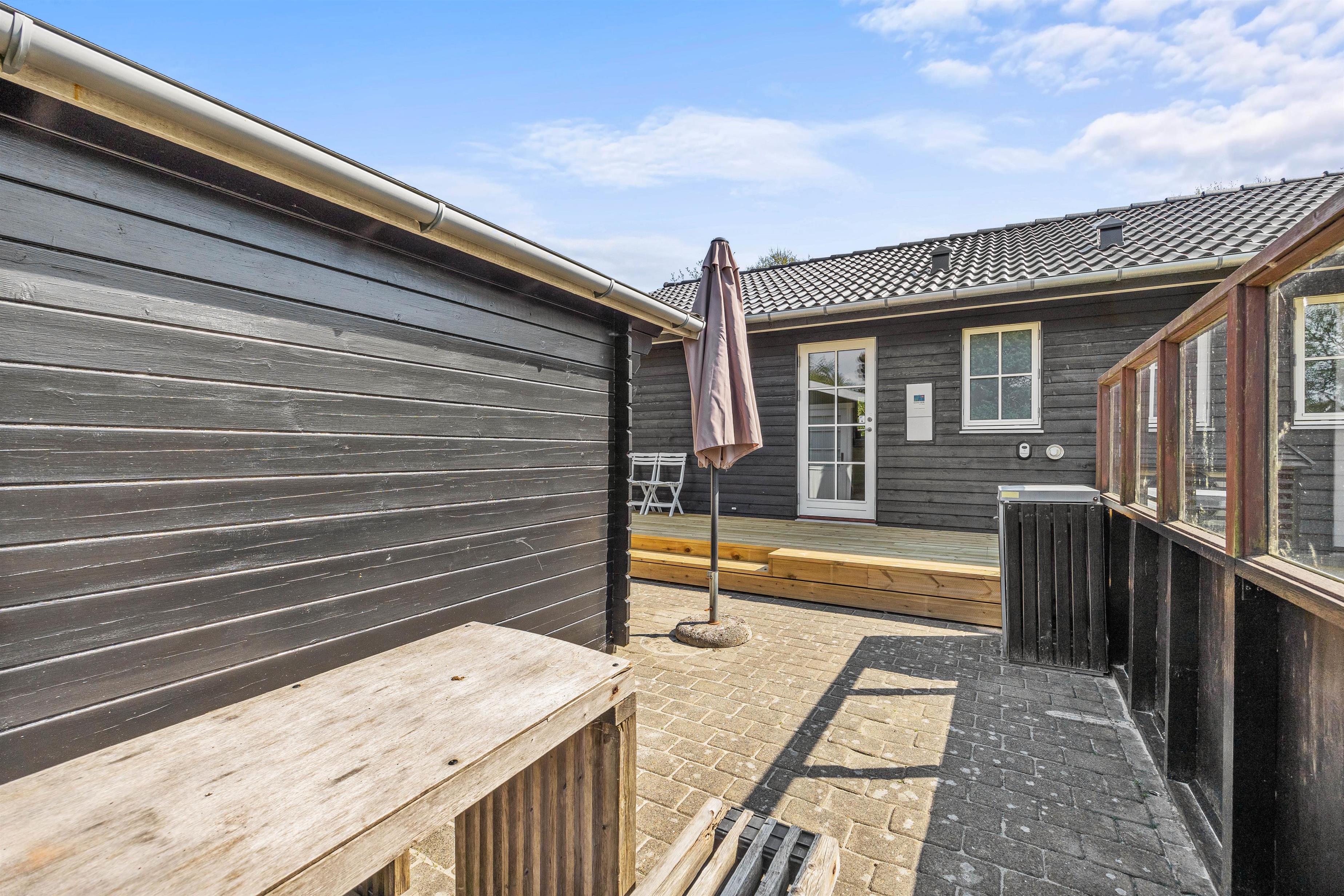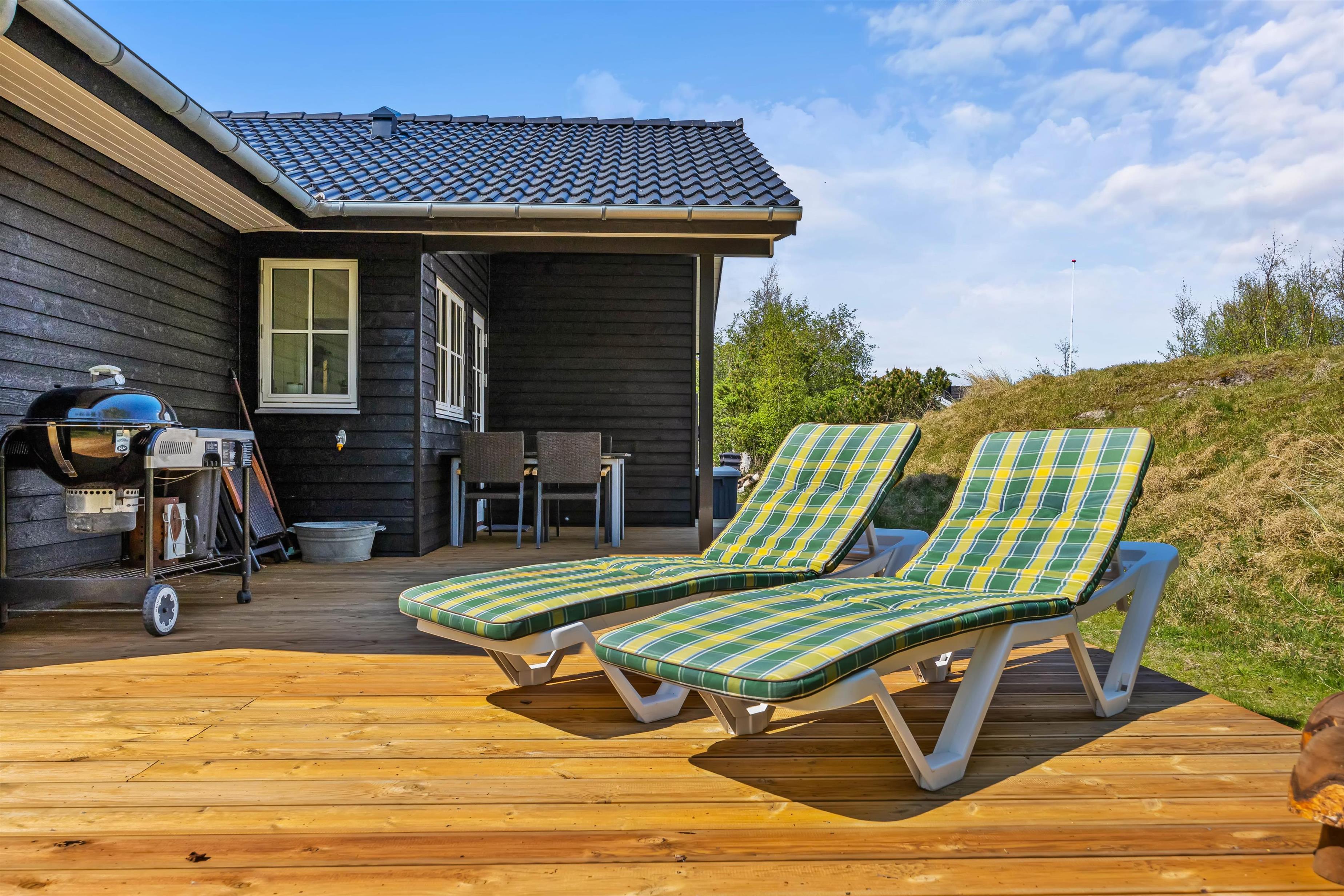 På den store terrasse er der igen flere læ fyldte hyggekroge, hvor der kan dases på havemøbler og senge. Her kan livet leves med mulighed for sol morgen, middag og aften, og herfra kan det varierende dyreliv iagttages på tæt hold. Lige fra vadehavsfugle til dådyr og kaniner. Der er lagt op til mange hyggelige grillaftener.