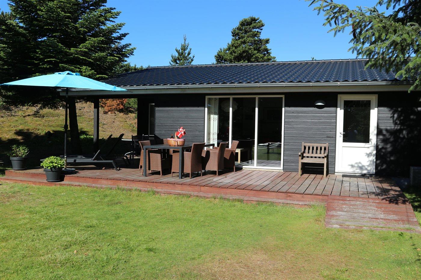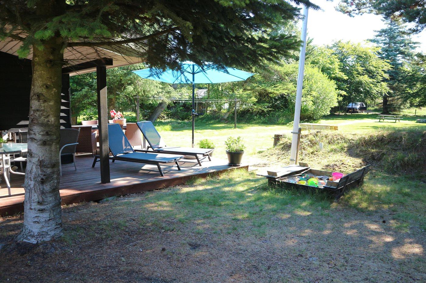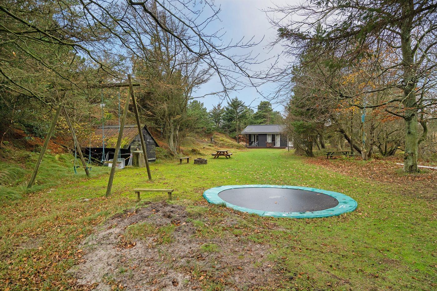 Ferieboligen er beliggende på en 2400 m² stor naturgrund. Der er 1100 m til havet. Nærmeste forretning er beliggende i en afstand af 500 m. Til ferieboligen hører 32 m² terrasseareal. Gynge. Sandkasse. Parkering ved ferieboligen.