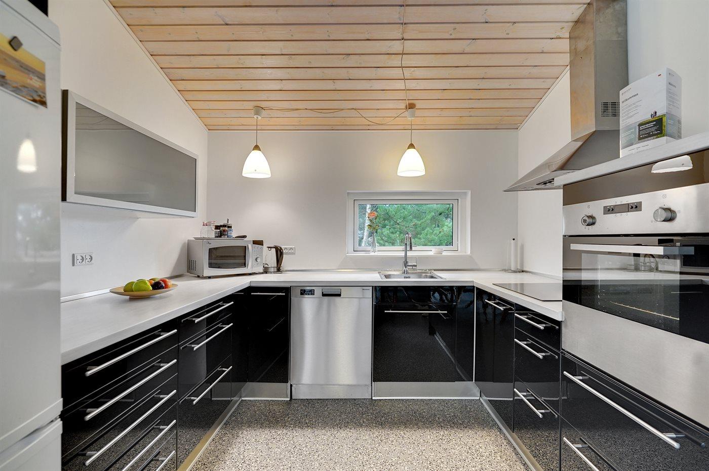 Køkkenet er udstyret med 1 køleskab. Der er 4 keramiske kogeplader, varmluftovn, mikrobølgeovn samt opvaskemaskine.