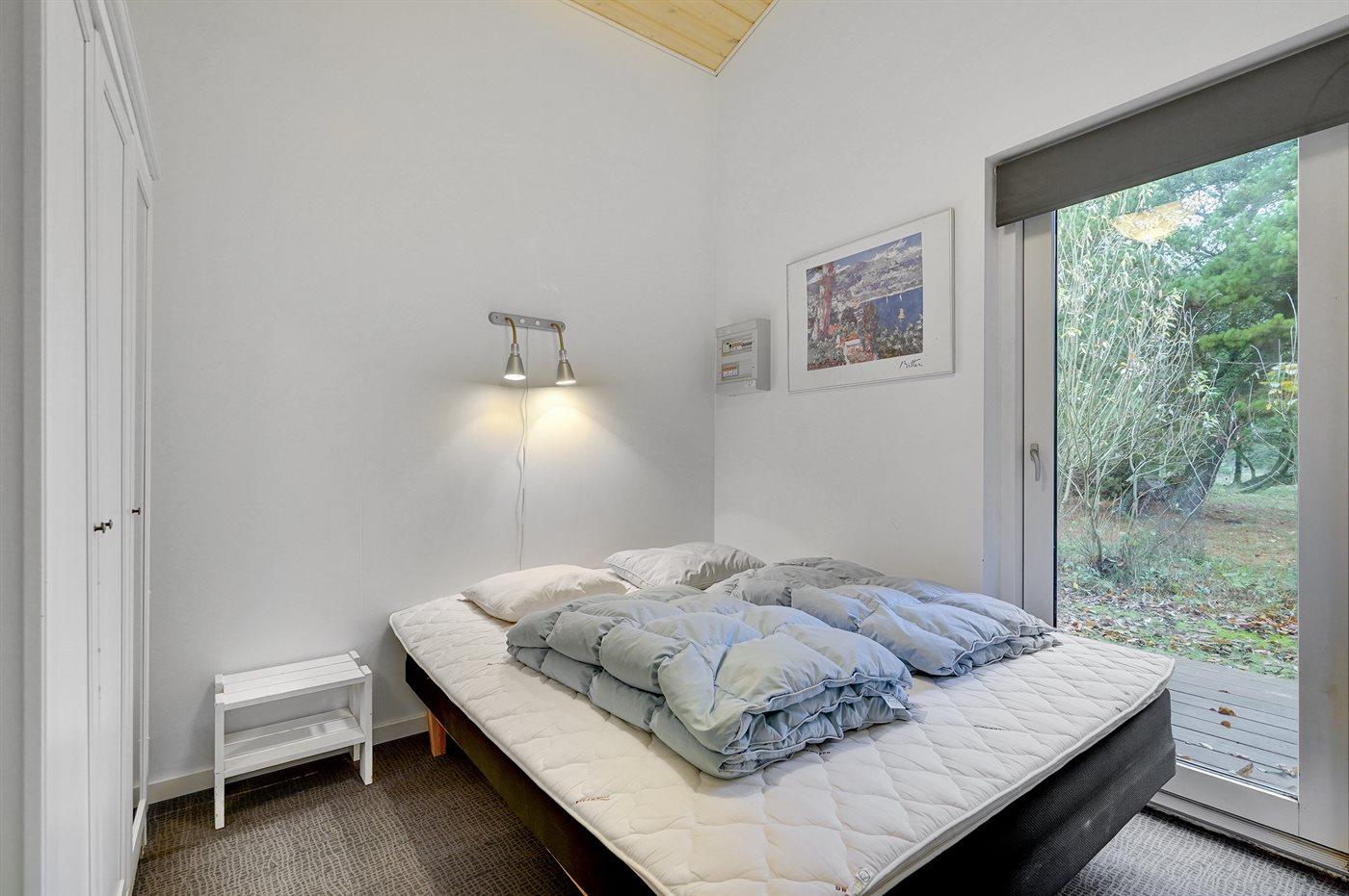 Der er i alt 3 soveværelser. Sovepladserne fordeler sig på: 4 sovepladser i dobbeltsenge. 2 sovepladser i enkeltsenge. Derudover er der 1 stk. barneseng.