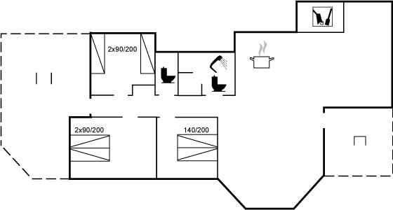 Der er i alt 3 soveværelser. Sovepladserne fordeler sig på: 4 sovepladser i dobbeltsenge. 2 sovepladser i enkeltsenge. Derudover er der 1 stk. barneseng.