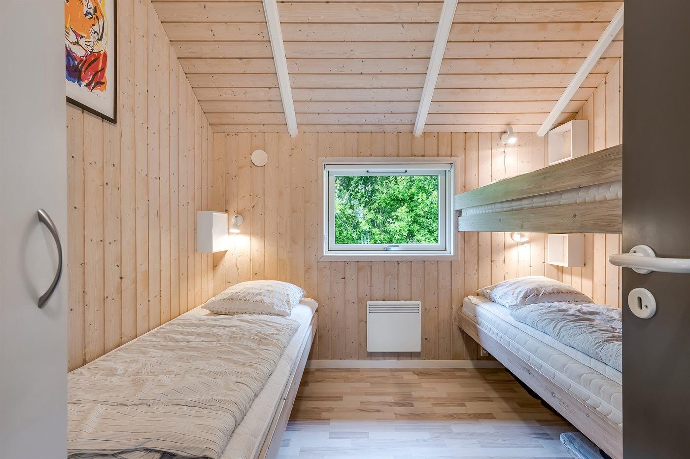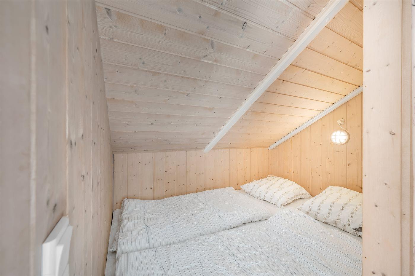 Der er 3 soveværelser. Sovepladserne fordeler sig på: 4 sovepladser i dobbeltsenge. 1 soveplads i enkeltseng. 2 sovepladser i køjeseng. Derudover er der 1 stk. børneseng.
