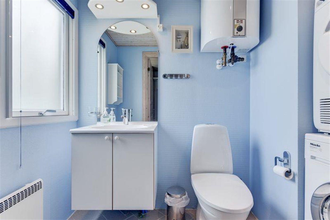 Der er 1 badeværelse med bruseniche og 2 toiletter, heraf 1 gæstetoilet. Der er gulvvarme på 1 badeværelse. I saunaen er der mulighed for afslapning.