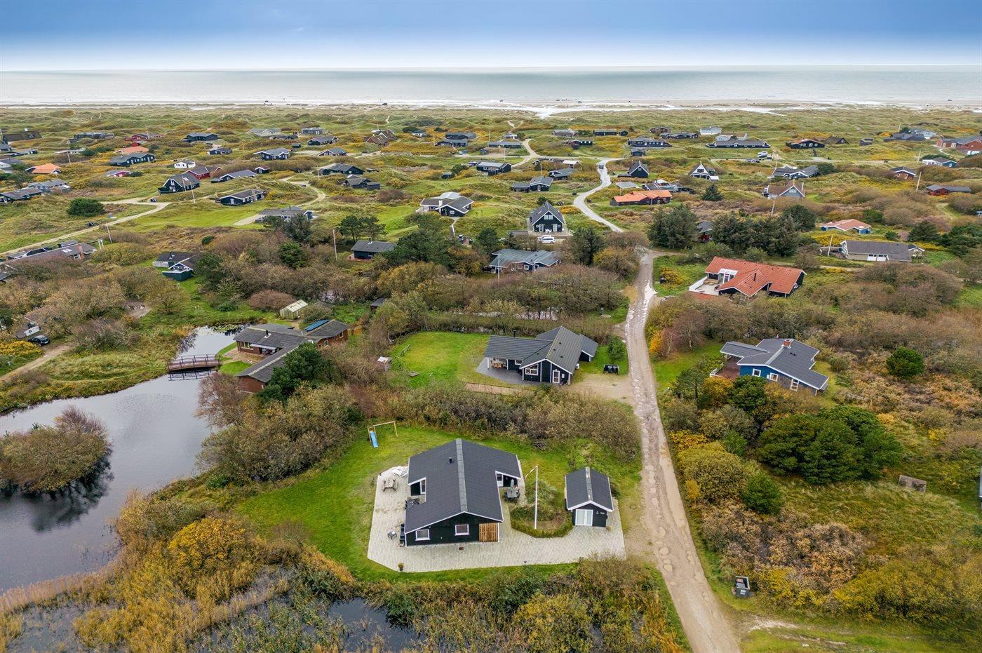 Charmerende sommerhus nær Vesterhavet med egen sø, stor terrasse og børnevenlig have i naturskønt område.