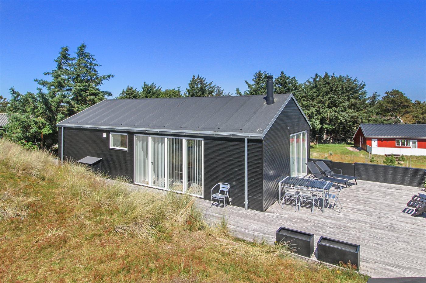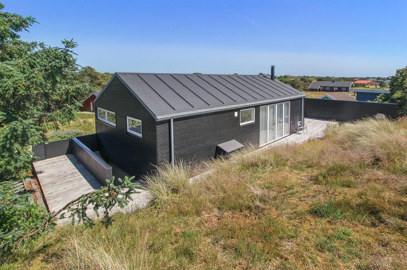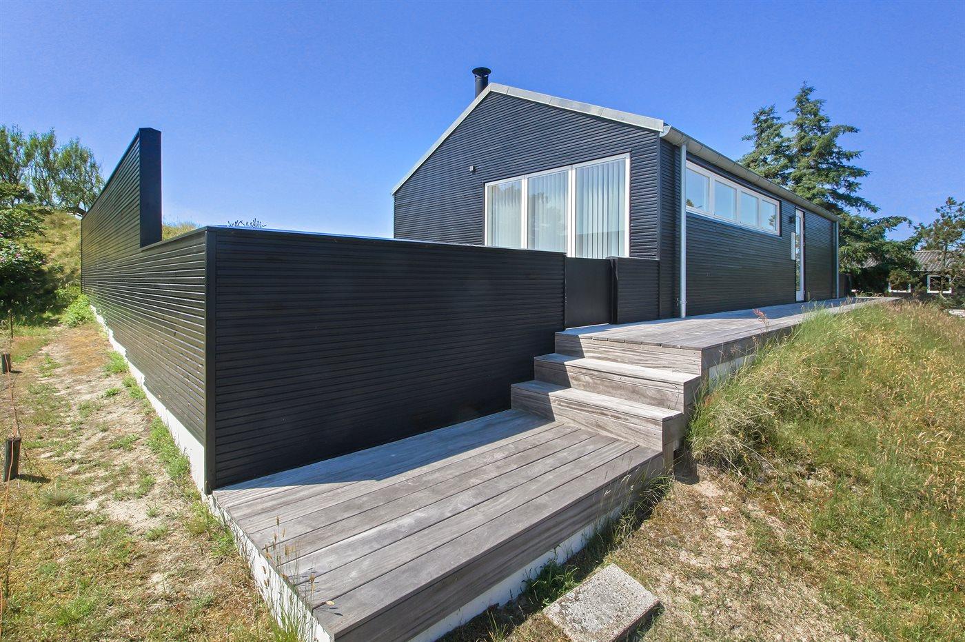 Her er sommerhuset alle drømmer om. Sommerhuset ligger for enden af en lukket vej, midt i klitterne og med skønne, afskærmede terrasser og en flot udsigt til Fanøs natur. Huset er bygget af de bedste materialer og giver rammerne for den perfekte ferie. Der forefindes en gasgrill til huset, som ønskes benyttet af hensyn træbelægningen på terrassen. Gasflasker byttes løbende til nye.
