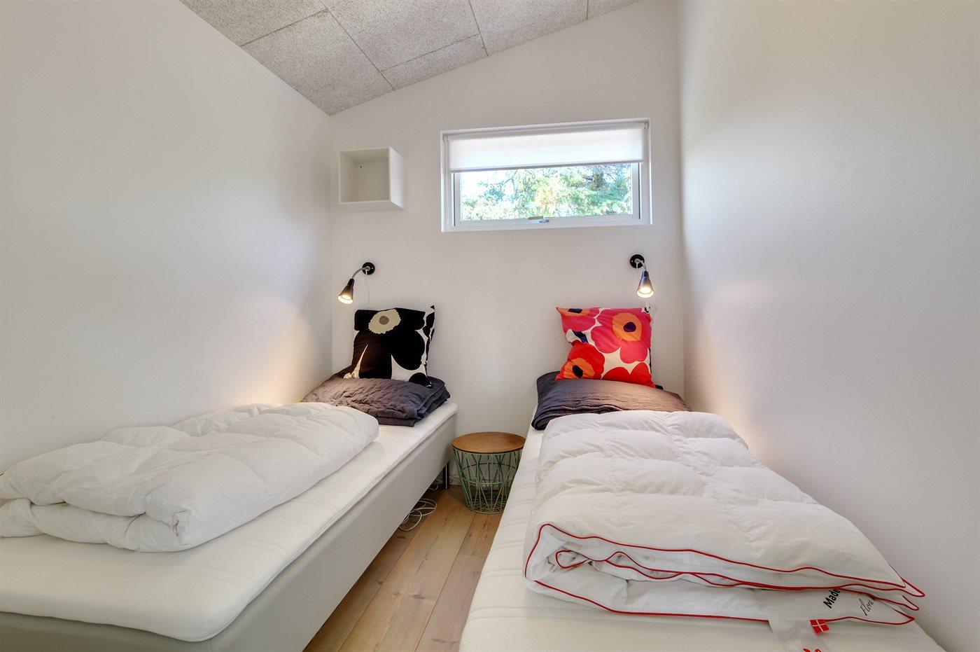 Der er i alt 2 soveværelser. Sovepladserne fordeler sig på: 2 sovepladser i dobbeltseng. 2 sovepladser i enkeltsenge.