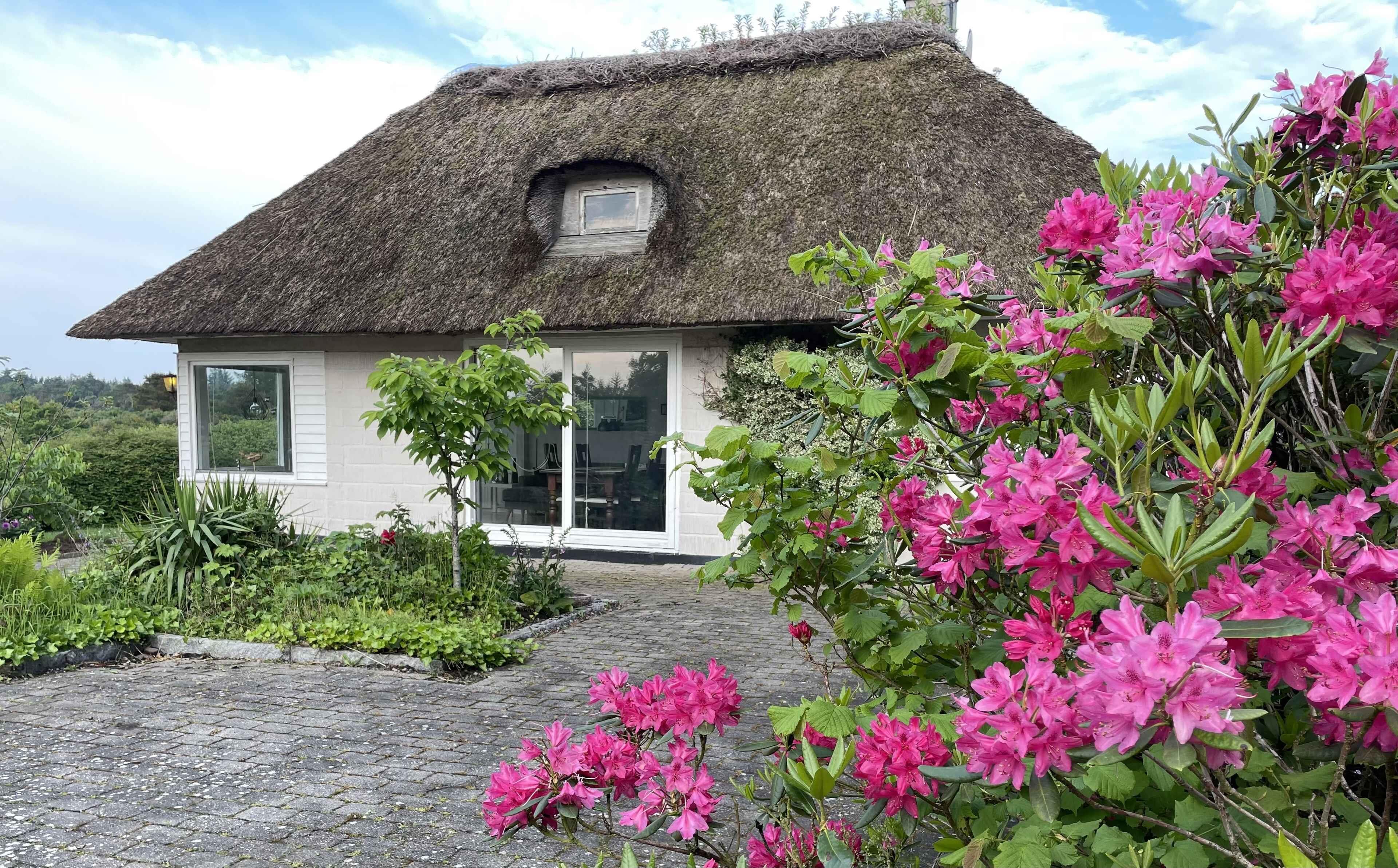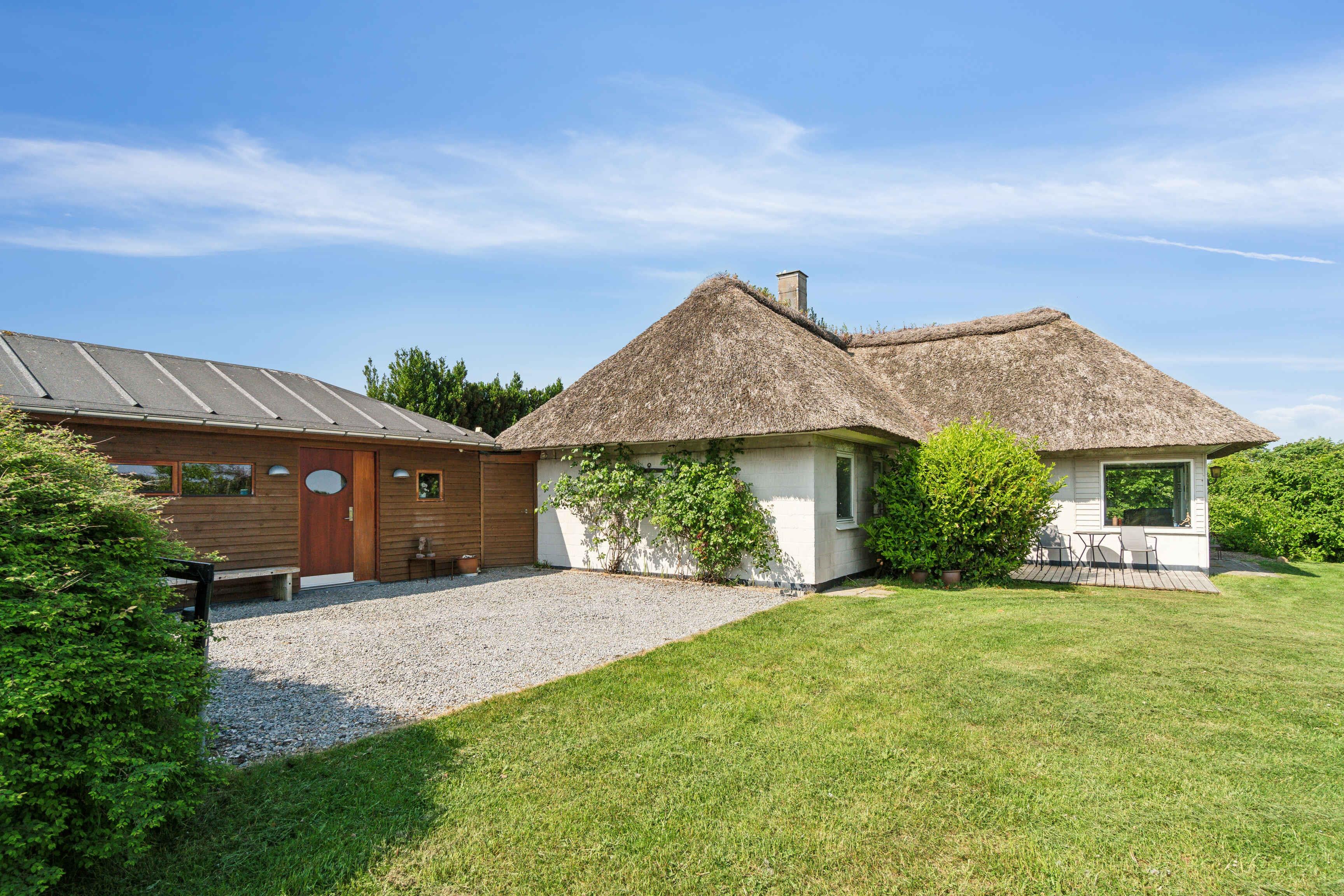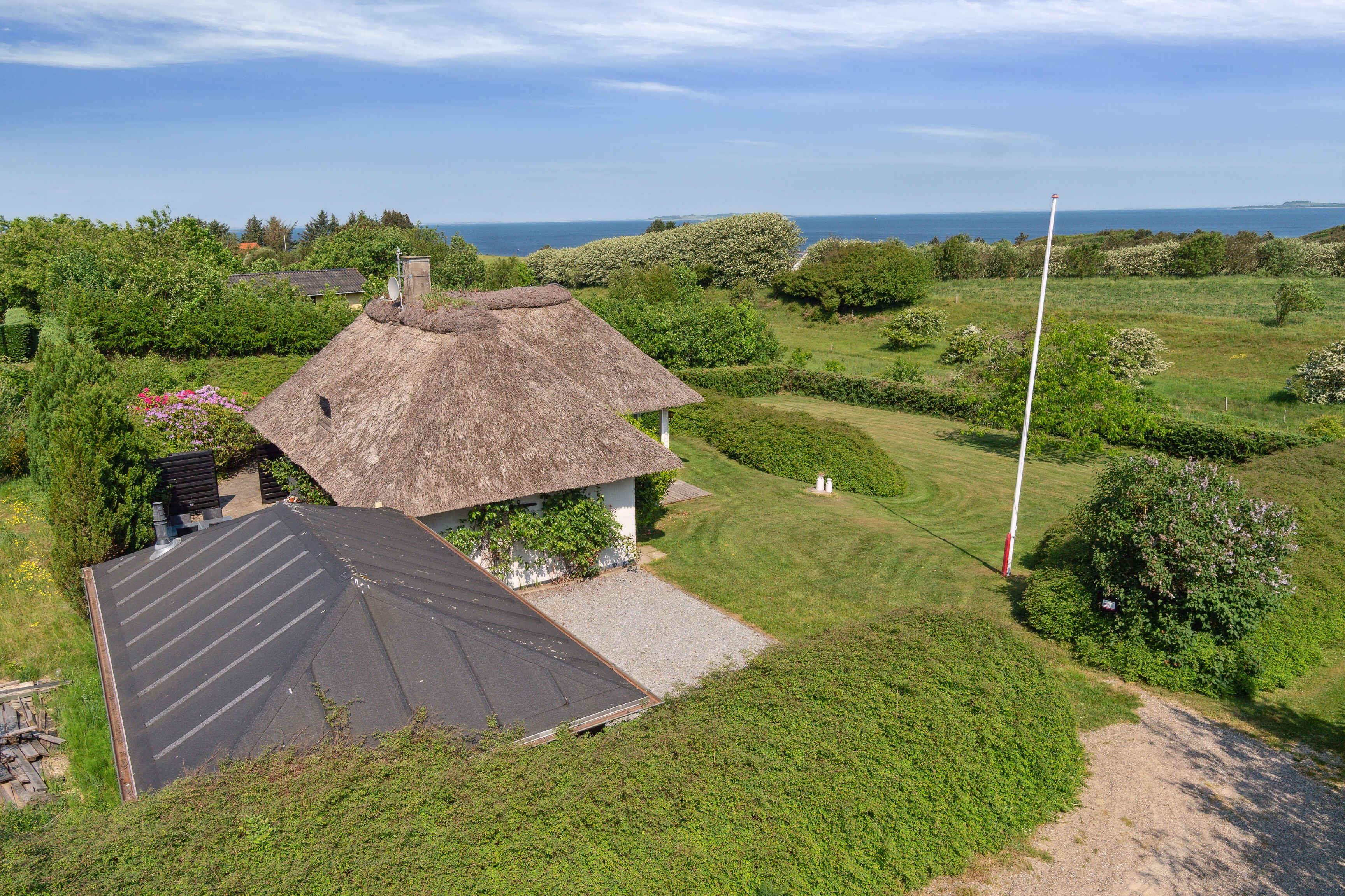 Charmerende stråtækt feriehus med panoramaudsigt og privat gårdhave i smukke Ertebølle-landskab.