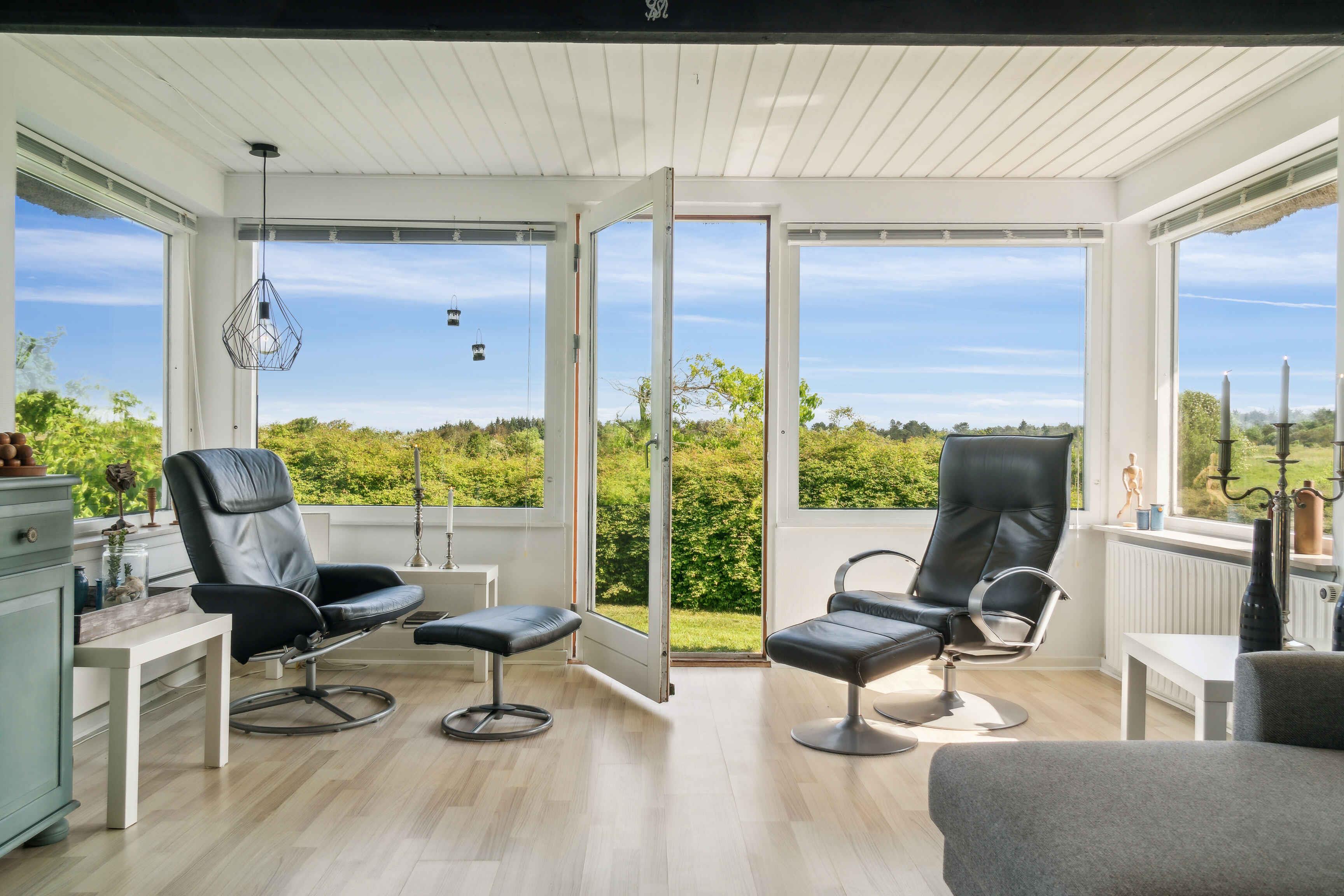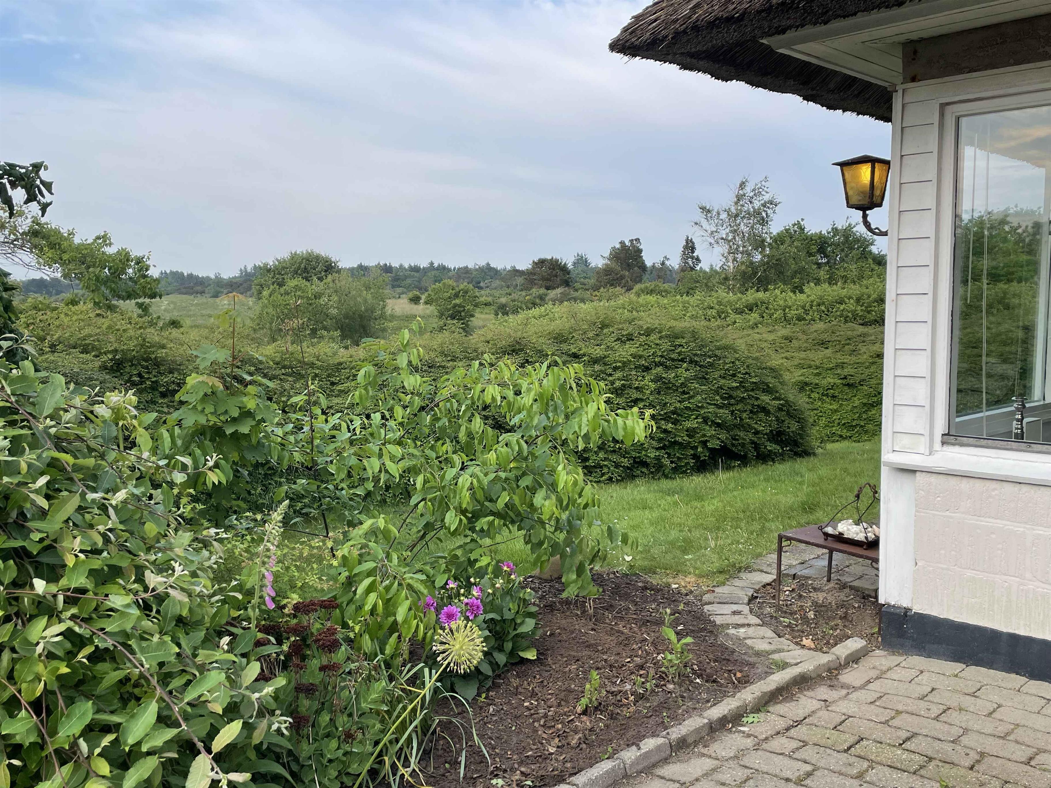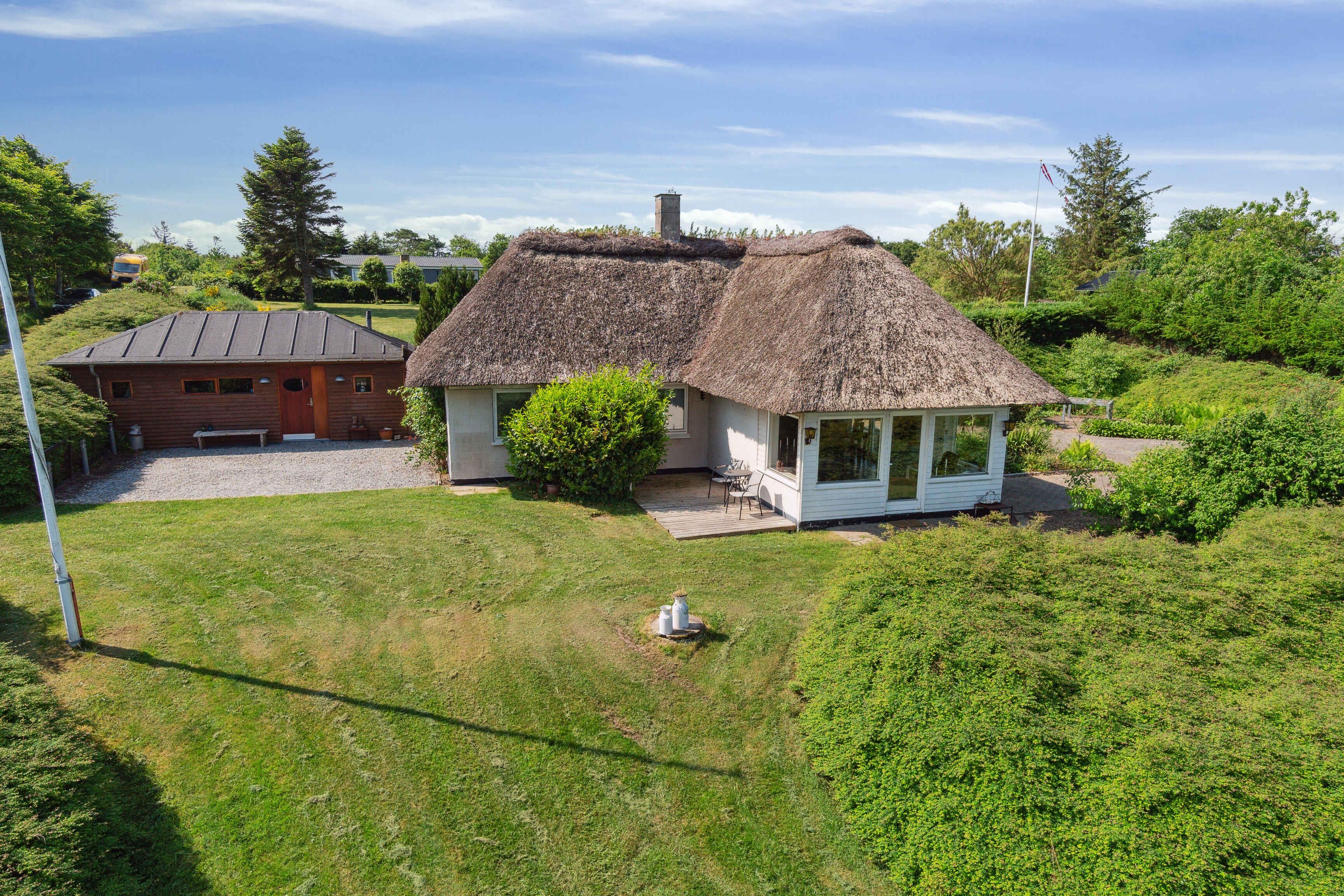 Charmerende stråtækt feriehus med panoramaudsigt og privat gårdhave i smukke Ertebølle-landskab.